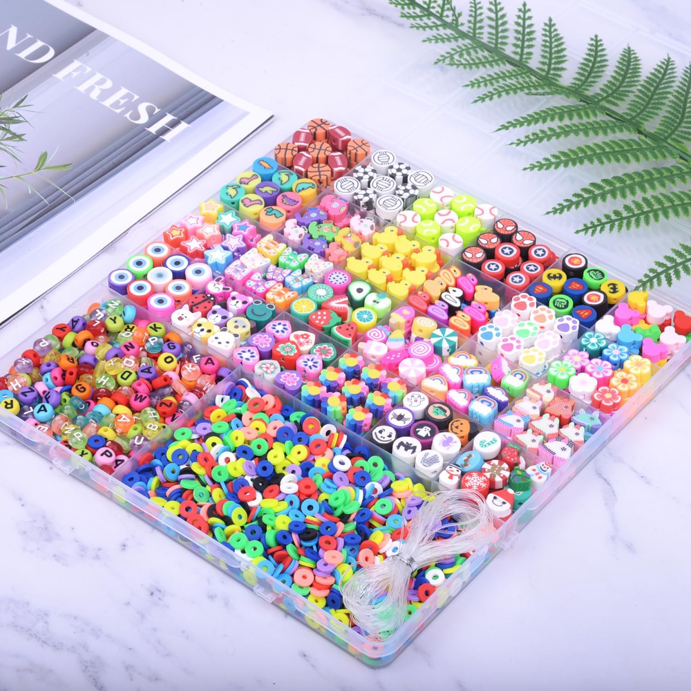 Store New Arrivals Add to Favorite View Feedback Contact Fast deliveries to the customer's home Quality customer service John Make the customers happy! 2480Pcs Polymer Clay Beads Charms for Bracelets Making Kit Cute Fun Charms Beads Friendship Bracelet Making DIY Arts Crafts Birthday Gifts Toys for Kids Girls Age 6-13 Description [ Large Quantity ]: Total about 2480pcs, include polymer clay beads in 24 different styles.Colorful flat clay beads,Colorful letter beads, Transparent colored letter beads,1roll 5m elastic string. [ Suitable Size ]: The polymer clay beads are about 10mm with 2mm hole. The flat clay beads are about 6mm with 2mm hole, and letter beads are about 4*7mm with 1mm hole. All beads are separately stored in a 26 grid plastic box, which is very convenient to store and carry. [Wide Application]: Perfect for Beading, Jewelry Making, keychain, earring, necklace making supplies, phone lanyard wrist, pendants, waist beads kit, hairpin or hair braids, fashionable shoes decor and party decoration. [ Premium Materials ]: Made of high quality clay materials, The color will not fade easily and can be bright for a long time. [ Great For Gift ]:These polymer clay beading kit can be used as a holiday gift, birthday gift, friend gift and so on. There is nothing better than making jewelry as a gift by yourself. Not for children under 3 yrs:Toy contains a small ball. Not for children under 3 yrs. To be used under the direct supervision of an adult Product Description Item model number KK001 Item dimensions L x W x H 7 x 7 x 0.5 inches Age Range (Description) Teen Color A1#Clay Beads Included Components Polymer Clay Beads,Colorful Flat Clay Beads,Colorful Letter Beads,Transparent Colored Letter Beads,Roll,Elastic String Material Clay Country of Origin China Style Modern Item Weight 9.9 ounces Size Small Model Name KK001 Seasons All Seasons Art Craft Kit Type Bracelets Making Kit Special Feature 24 different styles of polymer clay beads Product Dimensions 7 x 7 x 0.5 inches Number of Pieces 2480 ABOUT US We offer the best prices around on high quality products. Our E-store includes media such as books, movies, music and games while offering electronics, toys, sporting apparel, clothing, tools, general home, garden items and more. SHIPPING We are always working hard to ensure your package arrives as soon as possible. Please understand that some factors like weather, high postal traffic, and the performance of shipping companies are outside of our control. We offer free shipping to the lower 48 states and ship within 2 business days of payment, usually sooner. We do not accept P.O. Boxes. Please provide a physical address. For shipping outside of the continental USA, we only use eBay's Global Shipping Program. The item is shipped to KY and then sent to the rest of the world. International customers are responsible for all duties and taxes. Continue to 'check out' to calculate costs for shipping the item to your country. Messages regarding eBay's Global Shipping Program MUST be directed at eBay EXCLUSIVELY. RETURNS We offer a 30-Day Return Policy on items in which you are not completely satisfied with. You have the option of a full-refund or an exchange of the item. No returns are available on items shipped outside of the USA PAYMENT We accept PayPal. CONTACT US This page content is yet to come Please ad us to your favorite seller and visit again later Thank You CUSTOMER SATISFACTION We try our very best to make sure every customer is completely satisfied. If there's a problem, message us! We're happy to help. WE ACCEPT
