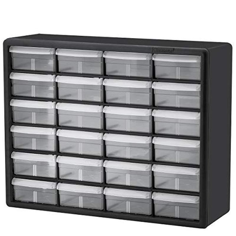 You may also like 3-Layer 5-Tray Metal Tool Box Cantilever Folding Red Storage Box Tool Organizer 61.65 USD 64.89 USD Free shipping 5% off Heavy Duty Steel Campfire Ring Portable Collapsible Fire Pit W/ Storage Bag New 46.92 USD 49.39 USD Free shipping 5% off Heavy Duty Toolbox Liner Non Slip Rubber Mat Drawers Cabinets & Workbench Black 44.45 USD 46.79 USD Free shipping 5% off Garage Tool Organizer Garage Yard Tool Organizer Garage w/ 6 Hooks Heavy duty 61.74 USD 64.99 USD Free shipping 5% off About this item HEAVY DUTY CABINET WITH 24 DRAWERS: The 24-drawer small storage cabinet is made from rugged, high-impact polystyrene plastic and measures 20" W x 6-3/8" D x 15-3/16" H; The plastic drawers have dimensions of 6" x 4-1/2" x 2-3/16" for ample storage space GARAGE ORGANIZATION: The small cabinet is great for garages and workshops for both homeowners and businesses; The plastic storage drawers can be used as tool box, screw organizer or for battery storage; Keep nails and other small parts accessible CLASSROOM ESSENTIALS: Teachers can use the stackable storage drawers for classroom organization; Use it as a teacher toolbox, art supply storage organizer, craft storage cabinet for scrapbook supplies, and more HOME STORAGE AND ORGANIZATION: This plastic storage cabinet offers many uses around the home; It can be a lego storage organizer, craft organizer, or sticker organizer; Use it for makeup storage and organization or for medicine and first aid supplies CABINET AND DRAWER FEATURES: Stack cabinets securely or wall-mount them using keyhole slots; Finger-grip drawer pulls provide easy access; Rear stop tabs prevent contents from spilling; Drawer dividers are included and molded into the back of the cabinet › product details Color:Black 2 Material:Polystyrene Frame Material:Plastic Brand:Akro-Mils Product Dimensions:6"D x 20"W x 16"H You may also like 1/4" Compact Air Die Grinder Right Angle 21000 RPM Lightweight Power Tool Metal 82.65 USD 87.0 USD Free shipping 5% off 3-Story Fire Escape Ladder 25ft Anti-Slip Steel Alloy Compact Foldable Sturdy US 104.97 USD 110.49 USD Free shipping 5% off Natural Clumping Cat Litter 50lbs Absorbent Sealant Feed Binder Multiple Uses 124.79 USD Free shipping Bamboo Laundry Hamper W/ Canvas Liner Portable Storage Rectangular Design New 98.7 USD 103.89 USD Free shipping 5% off 1500W Portable Electric Stove Single Burner 7.5" Cooktop Stay Cool Handles New 54.59 USD Free shipping Incubator Humidity Display Egg Antibacterial Automatic Turner Repel Insects NEW 74.0 USD 77.89 USD Free shipping 5% off Freestanding Portable Puppy Playpen Vinyl Fencing Indoor Outdoor Dog Kit New 104.87 USD 110.39 USD Free shipping 5% off 3 in 1 Rolling Makeup Case Large Capacity Organizer Portable Travel Trolley New 117.32 USD 123.49 USD Free shipping 5% off Lawn Mower Tires Tractor Turf Garden Yard Outdoor Tubeless Reduce Noise Durable 142.99 USD Free shipping Topwind Bolt-On Tongue Jack 2000lb Load Capacity Metal Trailer Accessory New 51.69 USD 54.41 USD Free shipping 5% off 6ft Pre-Lit Artificial Christmas Tree Hinged W/ 250 Lights Pinecones Berries New 129.05 USD 135.84 USD Free shipping 5% off Extra Large Rubber Doormat Absorbent Non Slip Backing Stain Resistant Heavy Duty 74.04 USD 77.94 USD Free shipping 5% off