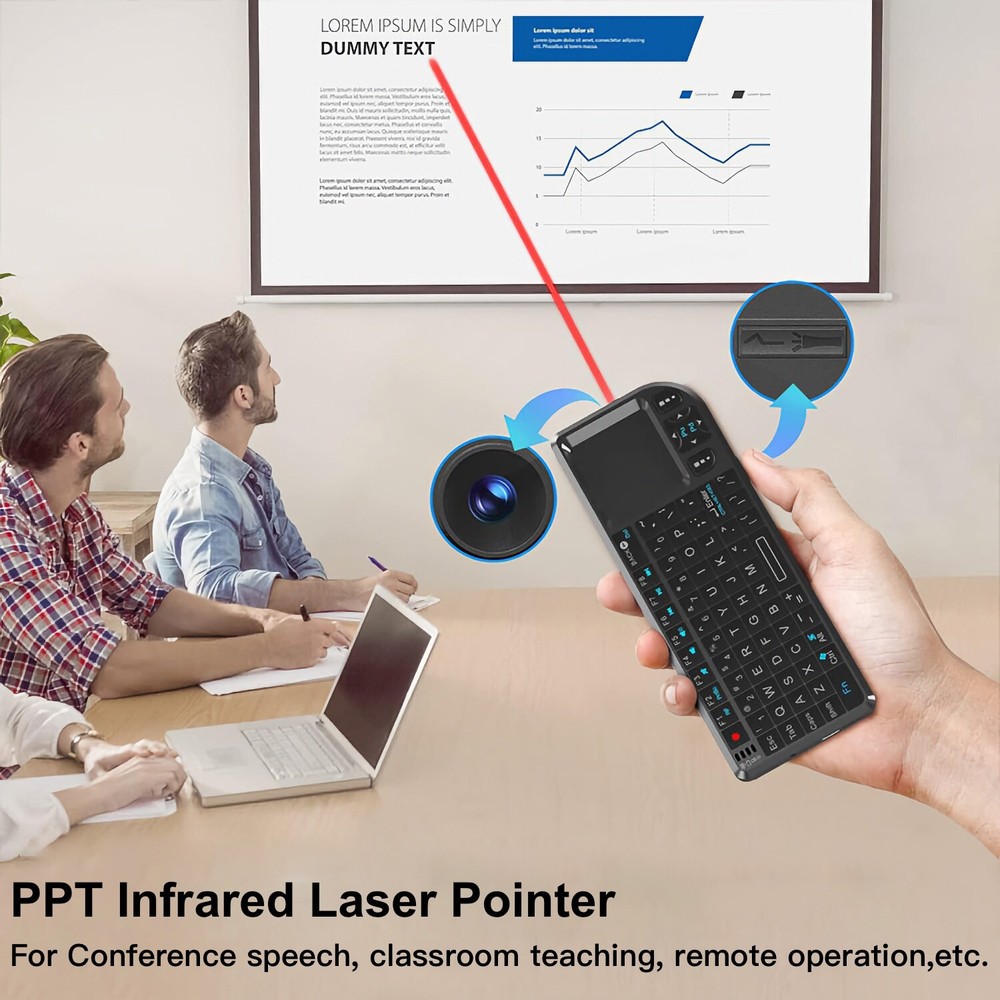 2.4G Wireless Bluetooth Laser Pointer with Mini Keyboard Touchpad for Presentations