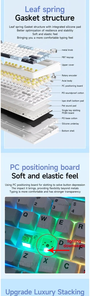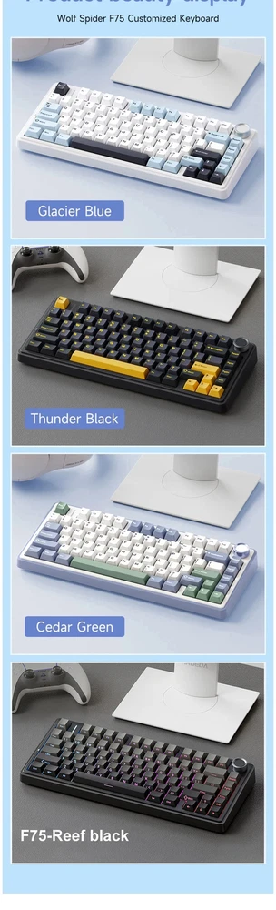 Wired USB RGB LED Light PC Computer Custom 2.4G Wireless Gaming Mechanical Switch 75% Keyboard Bluetooth Specification item value Full Size keyboard No Features Wireless, Plug and Play, Multimedia Keys Operation Style Mechanical Drive Interface USB 3.0 Private Mold Yes Style Mini, Standard, Gaming, Multimedia, Fashion Type 2.4Ghz Wireless Interface Type usb, Wireless Keyboard Standard 81 KEYS Wrist Support NO Products Status New Application Desktop Brand Name AULA Model Number F75 Axis Body Brand Kailh Keyboard backlit RGB Anti-ghosting FULL KEYS Mechanical Yes Programmable Yes Product Description
