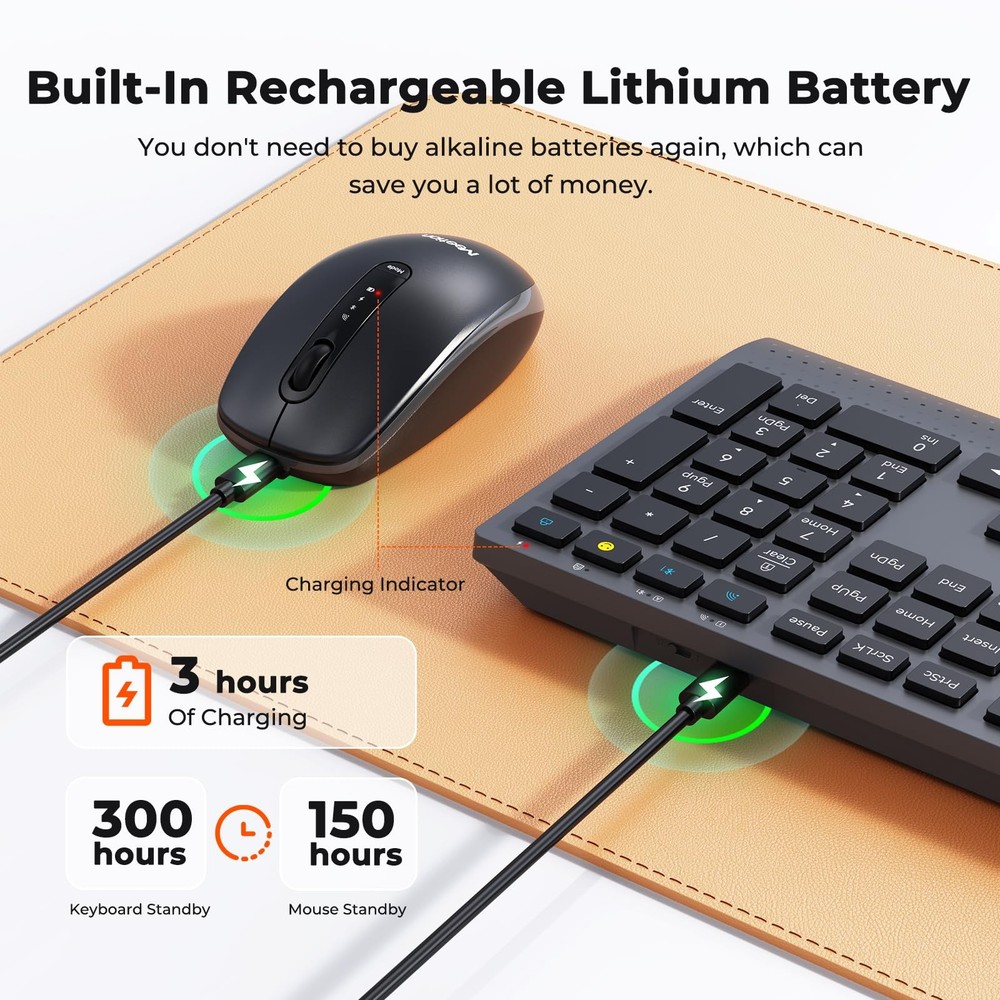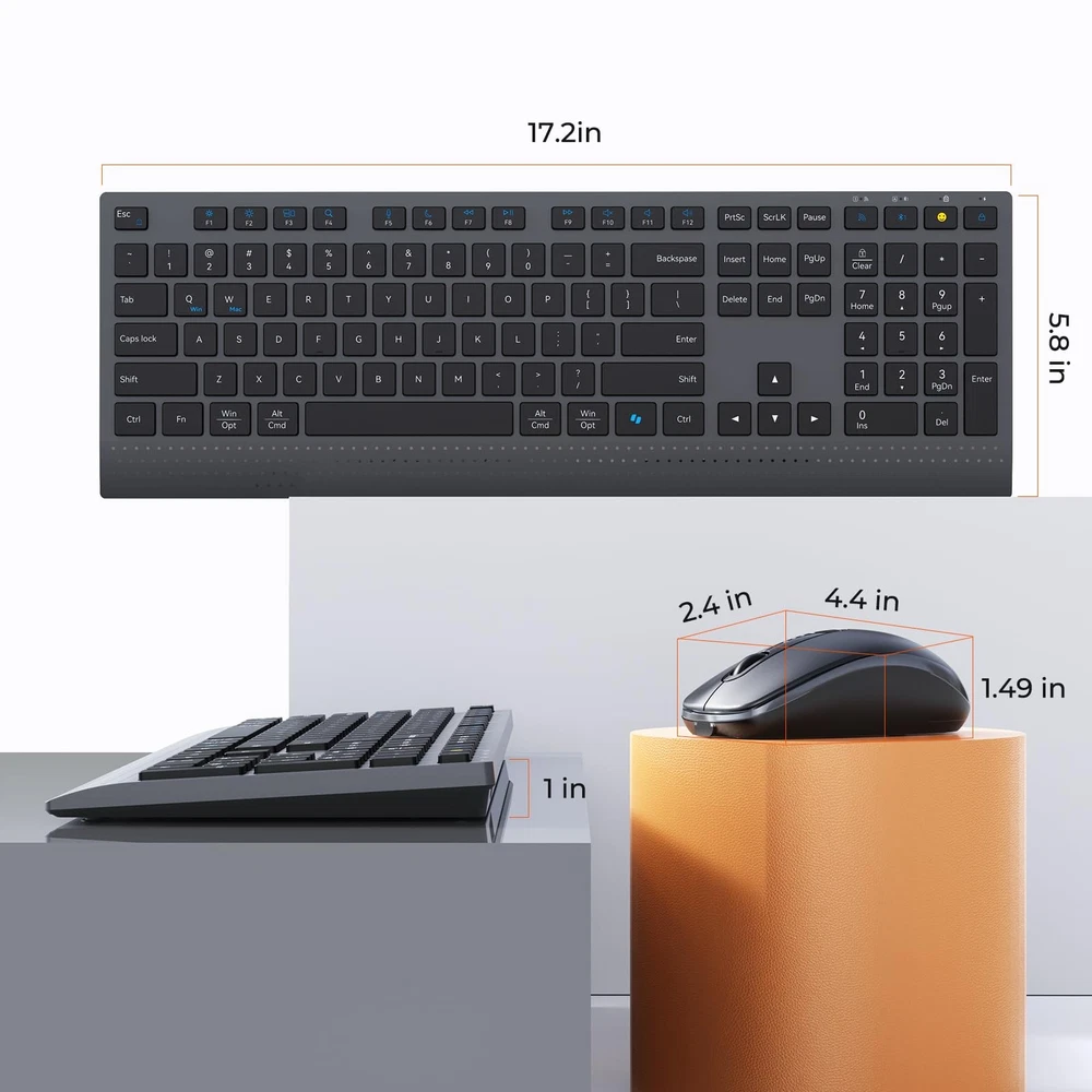 Multi-Device Bluetooth Wireless Keyboard and Mouse Combo Rechargeable
