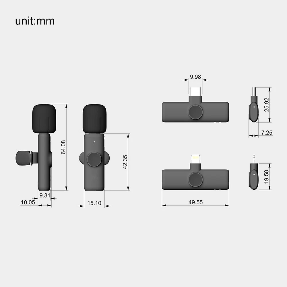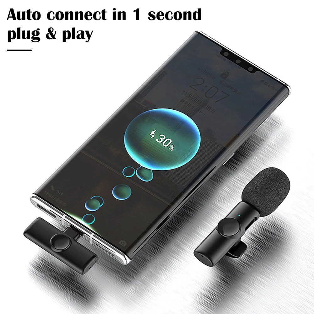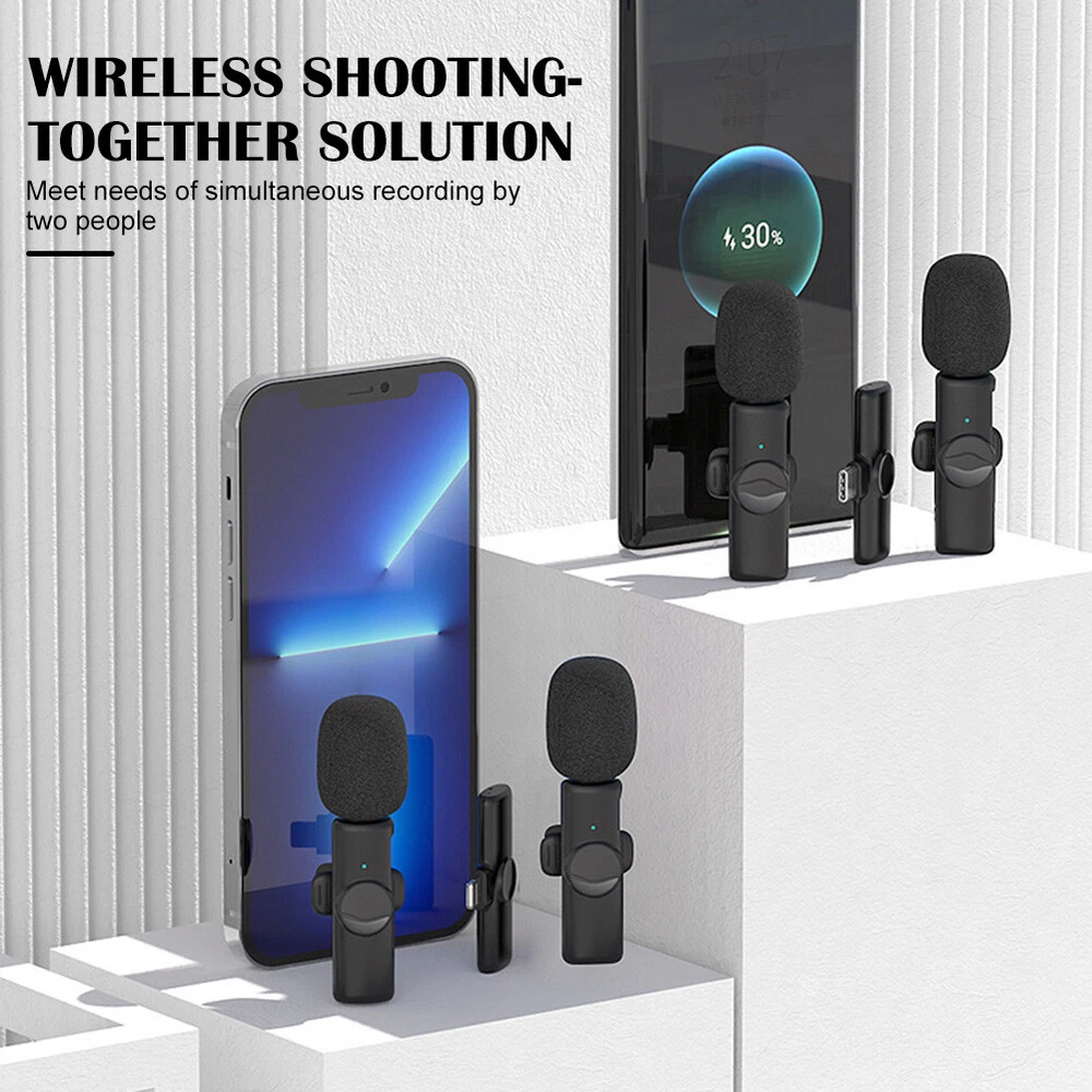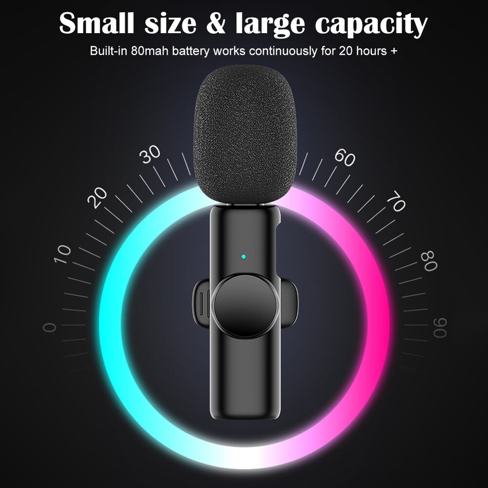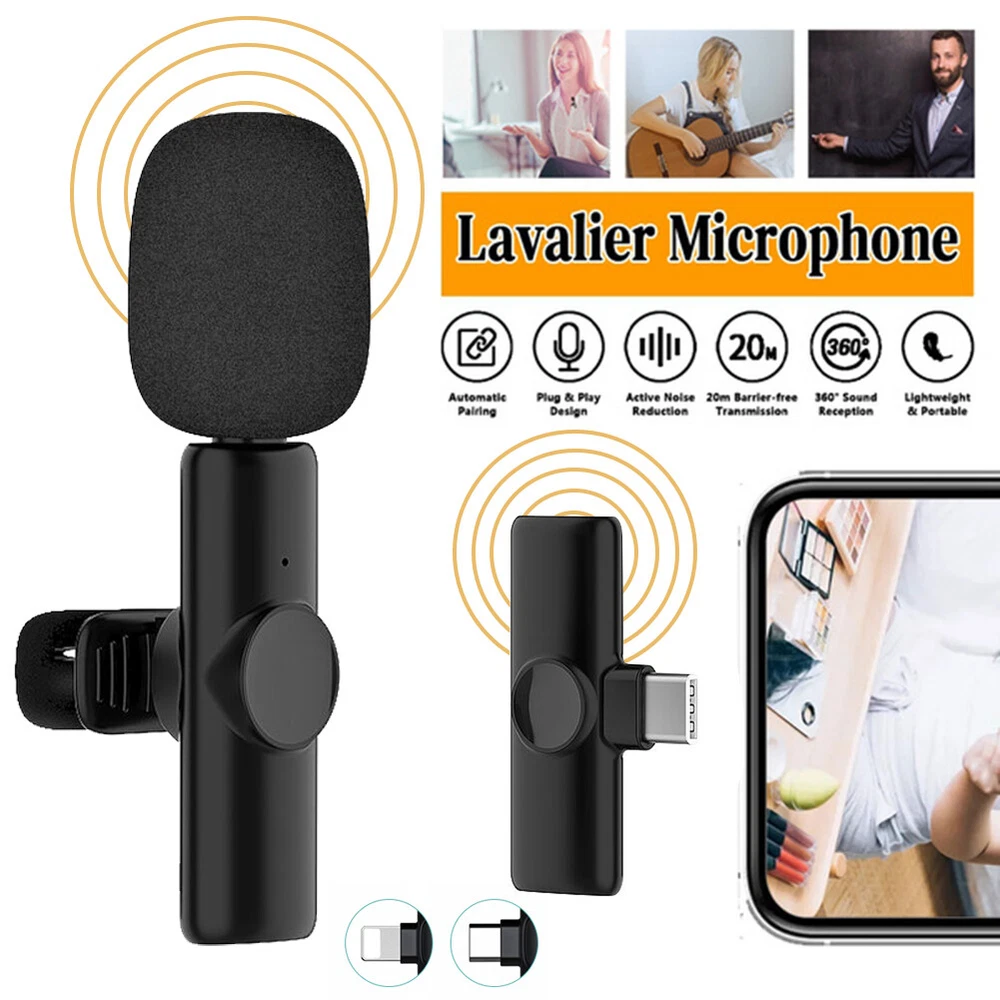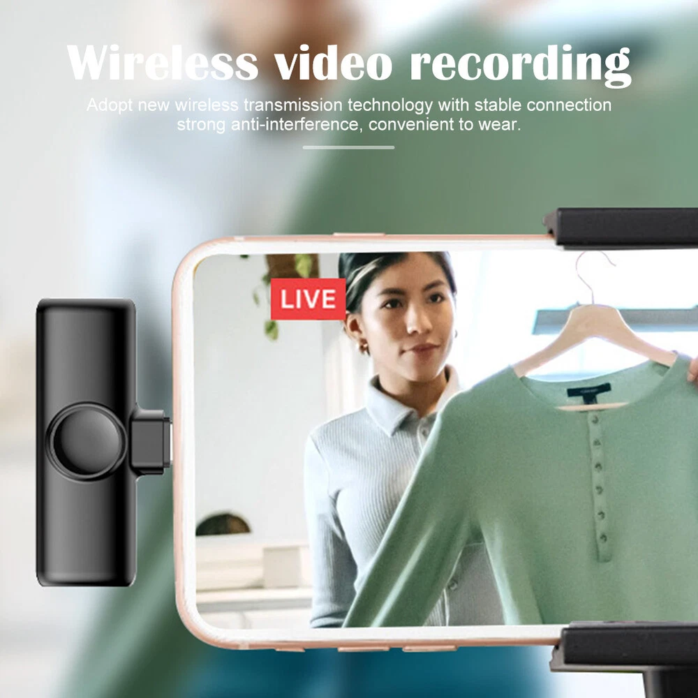 2.4GHz Wireless Lavalier Lapel Microphone Low Noise Mic Recording for IPhone US Features: *1. Wide Compatibility: This lavalier is compatible with iPhone7, 7 Plus,8, 8 Plus, X, XR, XS, XS Max, 11, 11 Pro,11 Pro Max, 12, 12 Pro and iPad 2/3/4, iPad Air series,iPad Pro Series (Note: Not compatible with latest versions of 12.9-inch and 11-inch iPad Pros with type-C ports.). *2. Wireless Design & Automatic Pairing: This wireless microphone will automatically connect without the need to download APP or via Bluetooth-compatible. This product is equipped with a receiver with the maximum working range of 65ft, therefore, you just need to plug the receiver into the iOS device and turn on the microphone. Super simple and convenient in operation, freeing you from messy cables, ensuring a more relaxed and enjoyable live streaming. *3. Portable and Durable: This lavalier can work for up to 10 hours thanks to its built-in 80MA battery. It also comes with a TYPE-C port for convenient charging. The compact size with simple shape makes it more convenient to wear. *4 .Smart Noise Reduction 48KHz: Adopt noise reduction chips, this wireless mic features super strong anti-interference ability with effective recognition of the original sound even in noisy environment, offering you professional full frequency audio 48KHz stereo CD quality. *5. Record without Delay: The wireless microphone is characterized by its stable signal and quick response, which is especially designed for You Tube, Facebook, Live, TikTok creators, Vlogger, Blogger, Podcasters, interviewers and other video recording enthusiasts. Description: *1. Frequency range: 2.4GHz *2. Charging voltage: DC4.8~5.4v *3. Transmission distance: barrier-free 20 m *4. Human obstacle distance: about 7 m *5. Microphone: digital microphone *6. Working time: 10h *7. Signal to noise ratio: 64 dBm *8. Start-up current: 1.5~6mA *10. Transmission delay: 9MS *11. Standby current 4.3~5.5mA *12. Sensitivity (microphone): -26dB *13. Battery capacity: button battery 75mAH *14. Antenna type: ceramic antenna *15. Charging current: 65mA *16. Frequency response range: 20-20KHZ Package includes: Lavalier x 1/2 Receiver x 1 Charging Cable x 1 User Manual x 1 Look , You may also like