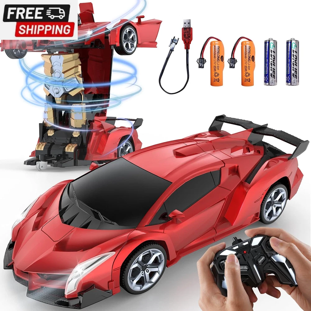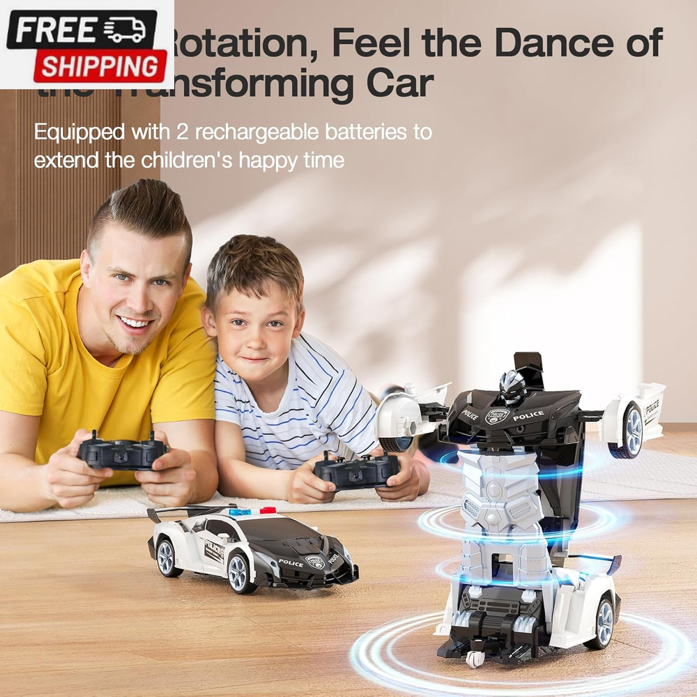 Remote Control Car Toy, 2.4Ghz Transform Robot RC Cars with Flashing Light, 1:18 Scale One Button Deformation Toy Gift Car & 360° Rotating Drifting RC Toy Car for Age 6-12 Years Boy Kids-Black 【Cool 2-in-1 Transformer Toy Car】This 2-in-1 toy RC car combines the features of cars and robots. Just press the button on the remote control, and children can easily control the transformation process of the transforming car. There is no obstacle up, down, left, and right. It can also transform while driving. The 360° rotating smart remote control car suitable for boys allows children to enjoy the fun of manipulating the transforming car! 【Double battery, double game time】Super long battery life. While pursuing a better game experience, we specially prepared 2 AA batteries (for remote control) and 2 rechargeable batteries (each set of batteries provides up to 60 minutes of use time), so that your children can enjoy this creative toy car that combines the features of cars and robots! 【Cool LED police lights & 2.4GHz remote control】Our children's remote control car is equipped with LED police lights, bringing the most realistic police car experience. It can provide lightning-fast response time and a powerful control range of up to 30 meters, achieving more precise control, and multiple cars will not interfere with each other. You can play different cars with family, children and friends at the same time, and enjoy endless fun without interfering with each other 【One-click transformation】This stock transforming car includes an automatic demonstration function, which will surprise children! ! The unique universal wheel design allows children to enjoy the 360° rotation drift of the transforming car. If you encounter any problems, please contact us and we will try our best to solve them for you 【Great and safe gift for kids】High-quality raw materials are safe and durable. Made of high-quality and durable ABS plastic material, it is non-toxic, durable and safe for children. The body is very strong and impact-resistant, ensuring that it will not be easily damaged when used by children. It is durable and is a great toy for 6 7 8 9 10 11 12-year-old boys. It is also an ideal gift for children's birthdays, Christmas,other festival Product Description The video showcases the product in use. The video guides you through product setup. The video compares multiple products. The video shows the product being unpacked. LED Lights Equipped with LED lights, bringing the most realistic police car experience ABS Plastic Made of high-quality and durable ABS plastic material, it is non-toxic, durable and safe for children Rubber Wheels Rechargeable Batteries Please use a normal charging head for charging (you can use a computer USB /Power Bank) Do Not use a fast charging head to avoid damaging the battery Shipping Fast shipping is very important for us. Our standard US shipping service is FREE. Your order will be shipped within 2-3 business days upon full payment received. Your order will be delivered within 2-3 business days after the handling time. We only ship to the confirmed PayPal address. We reserve the right to cancel any order for any reason at any time. We are not responsible for undeliverable addresses. Returns and payment We offer a 30 days return policy from checkout winning date. We allow only PayPal as payment method FeedBack Your feedback very important to us, after you get your package and you are satisfied with our service please leave us positive feedback If you have any problem with your order / any questions please before leave any type of feedback For any questions, using eBay contact system Please visit our eBay store to check out other items for sale! Thank you for shopping at our store.
