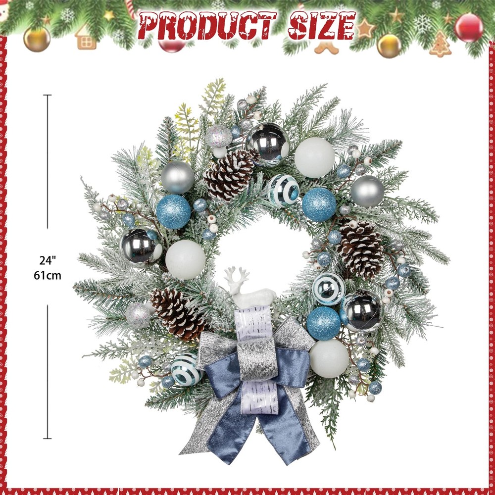 Bring the magic of the holiday season into your home with our stunning collection of Christmas wreaths, garlands, and teardrop swags. Crafted with lifelike frosted pine twigs, each piece is beautifully adorned with vibrant berry clusters, natural pine cones, shimmering ball ornaments, and elegant ribbons. Our 24" wreaths, 6-foot garlands, and 30" teardrop swags are the perfect combination of timeless design and modern convenience, offering a versatile and sophisticated way to decorate your home. Designed for indoor use and covered outdoor areas, these festive decorations add warmth and charm to any space, from mantels and staircases to entryways and porches. The high-quality construction ensures that each piece will retain its beauty year after year, providing a sustainable and affordable solution to holiday decorating. Transform your home into a winter wonderland with our Christmas wreaths, garlands, and teardrop swags, and create memories that will last a lifetime. FESTIVE ELEGANCE FOR YOUR HOME: Our 24" Christmas wreaths, 6-foot garlands, and 30" teardrop swags are designed to bring a touch of holiday charm. Each piece features a lush base of frosted pine twigs, embellished with realistic berry clusters, natural pine cones, shimmering ball ornaments, and beautifully crafted ribbons, offering a stunning blend of traditional Christmas decor PERFECT FOR INDOOR AND COVERED OUTDOOR DECOR: Ideal for creating a warm and inviting atmosphere, these Christmas wreaths, garlands, and teardrop swags are best suited for indoor use. Whether hung on your front door, draped over your mantle, or wrapped around your staircase, these pieces add a festive touch to any room. Keep them indoors to preserve their beautiful frosted pine finish and vibrant decorative details PREMIUM QUALITY CRAFTSMANSHIP: Made from high-quality, artificial greenery, our wreaths, garlands, and swags are designed to mimic the beauty of real pine branches while remaining maintenance-free. Each decorative element, from the berries to the pine cones and ornaments, is securely attached for lasting beauty SIMPLE TO HANG & ARRANGE: With convenient loops and lightweight construction, these Christmas garlands, wreaths, and swags are easy to hang, move, and reposition. They’re perfect for entryways, windows, staircases, or fireplace mantels, making holiday decorating a breeze. DURABLE AND REUSABLE HOLIDAY DECOR: Made to last, our Christmas collection is built with premium quality materials, ensuring you can enjoy these festive accents year after year. Reuse these artificial wreaths, garlands, and swags without worrying about shedding needles or fading colors, making them a sustainable and cost-effective choice