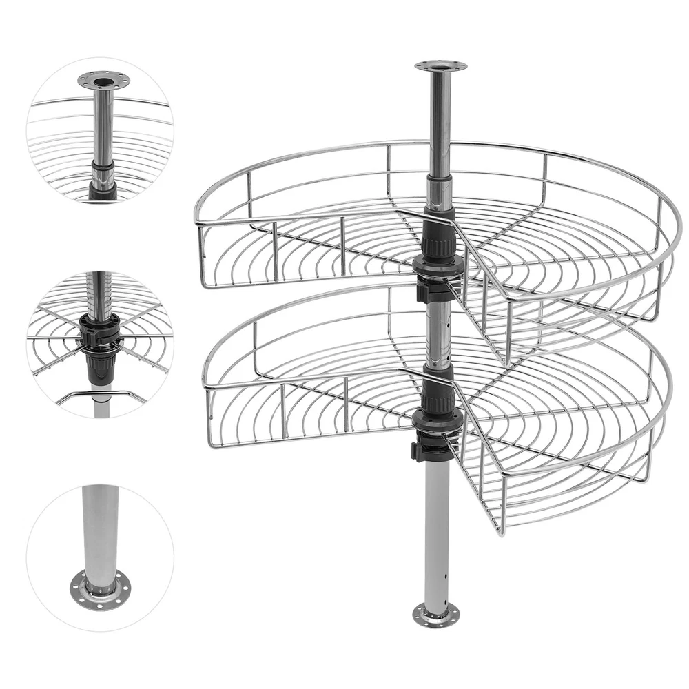 Improve Space Utilization: It makes full use of the wasted space in the corner of the cabinet so that you can easily access all the units in the kitchen, making every corner that we easily ignore become our storage space. Large Capacity: This kidney-shaped lazy corner cabinet organizer has two storage shelves with a diameter of 24 inches for sorting high bottles, cups, pans, storage cans, utensils and food. Such a large capacity can meet your daily storage needs. High Load-bearing Capacity: Each rack is woven by multiple iron rods, so it is more solid and stable, so that the product can bear 30 pounds of weight, and can easily bear kitchen appliances. Easy to Access: It uses two rotating frames. You can easily rotate it to 270° without much noise 24" Kidney Chrome 2-Shelf Lazy Susan Kitchen Base Cabinet Corner Organizer Rack Description Specification Material: Iron Color: Silver Finish Type: Chrome Plated Max Load-bearing Capacity: 13.6kg/30lbs Package Size: 62*52*18cm/24.41*20.47*7.09in Each Rack Diameter: 60cm/23.6in Height of Each Layer: 7.5cm/3in Total Height: 56-79cm/22-31in Gross Weight: 5kg/11.02lbs Net Weight: 4.5kg/9.92lbs Package Included 2* Racks 1* Upper Tube 1* Lower Tube 1*English Manual All Accessories for Assembly Key Features Improve Space Utilization : It makes full use of the wasted space in the corner of the cabinet so that you can easily access all the units in the kitchen, making every corner that we easily ignore become our storage space. Large Capacity : This kidney-shaped lazy corner cabinet organizer has two storage shelves with a diameter of 23.6 inches for sorting high bottles, cups, pans, storage cans, utensils and food. Such a large capacity can meet your daily storage needs. High Load-bearing Capacity: Each rack is woven by multiple iron rods, so it is more solid and stable, so that the product can bear 30 pounds of weight, and can easily bear kitchen appliances. Easy to Access : It uses two rotating frames. You can easily rotate it to 270° without much noise, then take or place items without stretching your arms. Great Durability : It is made of iron material to enhance durability and robustness. The two racks have a classic chrome finish, which contributes to their beautiful and stylish appearance, corrosion protection and rust prevention. Adjust the Height Freely : The height of the tube can be adjusted at will between 22-31inch to adapt to the cabinet space of different heights. The height of two independent racks can also be moved up and down to fix to different hole positions to adapt to different item sizes so that you can make the most of it. Easy to Install : By providing mounting holes and a set of mounting screws, it can be easily installed on the left blind or right blind cabinet. For your convenience, we also provide the installation instruction to help you install independently in a short time. Easy to Clean : The chrome-plated surface is very smooth, so simply wipe it with a soft cloth to maintain its clean appearance. Details Heightened Guardrail : Both racks are designed with 3inch heightened guardrail to effectively prevent your items from slipping. Round Edges : The edges of the two shelves are polished into round edges, which is not only fashionable but also effective to prevent scratching. Application You can install it in various cabinet corners to place pots and pans, containers, spice jars, etc. Notes Please allow the slight color difference caused by the shooting light and 1-3 cm error due to manual measurement, and make sure you do not mind before ordering. Payment Delivery details Terms of sales About us Contact us Payment We accept ebay payment 。 Fees such as import duties, taxes are not included in the item price or shipping costs. These charges are the buyer's responsibility. Delivery details Shipping: 2-9 working days to: USA Terms of sales We maintain high standards of excellence and strive for hundred percent customer satisfaction. Feedback is very important to us. We hope that you contact us immediately before you give neutral or negative feedback, so that we can address your concerns. It is impossible to address issues if we do not know about them! About us Your satis faction is our ultimate goal. We work hard to earn your trust and future business. Our certified technicians have tested each item before shipping. The unit comes with 1 year limited warranty on all manufacturing defects. a) If you receive a defective item, you may return it or ask for a discount. Please contact us within 14 days after you receive the package. b) What you returned must be intact and in its original packaging as re? u. Customer is responsible for shipping costs of the returned item. c) We will cover the cost of shipping back t with the shipping rate indicated in the registration page. We will send you a new unit or refund the full payment you paid. Thank you. Contact us Business Hour Business Hour: Monday To Friday: 8:30 AM to 5:00 PM (Beijing China time) Due to time zones, our reply to your questions may not be immediately. But within above working time, we will reply your email within 24 hours. If it's non-workdays, please kindly be patient and wait till Monday. Please contact us with ebay message. Please feel free to contact us if you have any questions. Monday To Friday: 8:30 AM to 5:00 PM (Beijing China time) Due to time zones, our reply to your questions may not be immediately. But within above working time, we will reply your email within 24 hours. If it's non-workdays, please kindly be patient and wait till Monday. Please contact us with ebay message. Please feel free to contact us if you have any questions. Number of Compartments 1 Size Large Bundle Description Does not apply Color Silver Custom Bundle No Material Iron MPN Does not apply Item Length 61cm/24in Brand Unbranded Mounting Cabinet Mounted Number of Shelves 2 Number of Tiers 2 Item Height 56-79cm/22-31in Features Adjustable, Easy Clean Item Width 7.5cm/3in