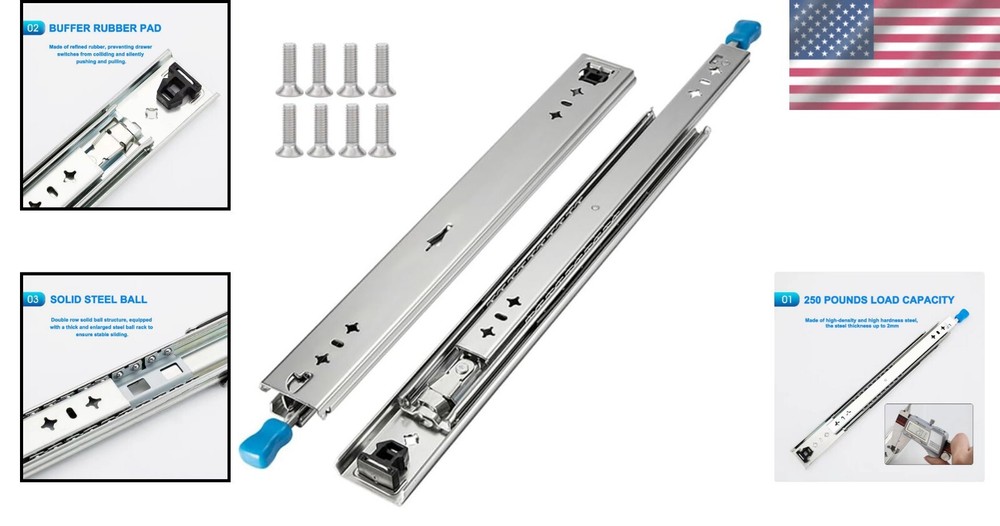 Full Extension 24-Inch Side Mount Drawer Slides - Smooth & Quiet Operation ‹ › ‹ › ‹ › ‹ › ‹ › ‹ › ‹ › ‹ › ‹ › Full Extension 24-Inch Side Mount Drawer Slides - Experience Smooth & Quiet Operation that Elevates Your Storage Experience Specifications: Width: 53mm Length: 24 inches Feature: Includes a safe locking device (not locked when partially open) Key Features: Effortless Installation: Designed with a clearance of 19.3mm, these slides come with M5 screws for easy and quick installation and removal. Robust Load Capacity: With a remarkable load capacity of 250lbs, these slides are crafted from high-grade cold rolled steel with a zinc plated finish, preventing rust and ensuring longevity. Quiet and Smooth Operation: Featuring a rubber mat design and solid steel balls, expect a silent movement that creates a peaceful environment when opening and closing your drawers. Why Choose Our Drawer Slides? Transform your storage solutions with our Full Extension 24-Inch Side Mount Drawer Slides. Designed for heavy-duty use, they seamlessly combine robust materials with advanced engineering to offer smooth, quiet operation and dependable longevity. Whether for your kitchen, office, or workshop, each opening and closing will be a pleasurable experience. We pride ourselves on providing premium service. Should you encounter any issues with your order, our dedicated support team is always ready to provide the best solution. Take your storage to the next level with our expertly designed drawer slides – order yours today! Shipping Free & Fast Shipping - We offer free shipping to most of the USA with a normal delivery time of 3-7 days. However, due to the current situation, additional delivery time (up to 3 weeks) may be required for some items. Alternative Carriers - We may use alternative carriers (e.g. USPS, FedEx, UPS, etc.) to ensure your package arrives safely and on time. Due to the use of multiple carriers, we are unable to provide a tracking number automatically. Handling Time - Orders are processed and shipped within 1-2 business days of receiving cleared payment. Shipping Restrictions - Shipping to Alaska, Hawaii, Puerto Rico, Guam, and other US territories may incur shipping charges or delivery restrictions. Please contact us before ordering, or your order can be refunded/cancelled. State Restrictions - There may be restrictions based on your state of purchase. For example, certain items may not be shipped to California due to state regulations. Contact for Tracking Updates - If you require tracking updates or have any concerns about the delivery of your order, please feel free to contact us, and we will be happy to assist you. Return 30-Day Hassle-Free Returns - We want you to be completely satisfied with your purchase. If you are not, you can return the item within 30 days of receiving it for a full refund or exchange. Easy Return Process - To start a return, simply contact us and we will provide you with a prepaid return shipping label and detailed instructions. Restocking Fee - There are no restocking fees for returns. However, the buyer is responsible for return shipping costs if the return is not due to a seller's error. Refund Processing Time - Refunds will be processed within 5 business days of receiving the returned item in its original condition. Payment We accept all major credit cards, PayPal, and Apple Pay for your convenience. Your payment information is secure and encrypted to ensure a safe and seamless transaction. Please complete your payment within 3 days of purchase to avoid any delays in shipping. Feedback Your feedback is extremely important to us. We strive to provide the best products and customer service possible. If you are satisfied with your purchase, please take a moment to leave us a positive review. If you have any concerns or issues with your order, please contact us before leaving negative feedback. We are committed to resolving any problems and ensuring your satisfaction. Contact Us If you have any questions or concerns, please feel free to reach out to our customer support team. You can contact us through the eBay messaging system. We are available Monday to Friday, 9:00 am to 5:00 pm EST, and we will do our best to respond to your inquiry within 24 hours. Buy it now and enjoy a pleasant shopping experience! UPC: Not Set Unit Quantity: 7.68 Material: Cold Rolled Steel,High-Grade Cold Rolled Steel,Zinc Plated Finish Brand: Unbranded Closing Type: Self Closing Type: Full Extension Item Width: Not Set Color: Silver Item Height: Not Set Item Length: Not Set MPN: Not Set Number in Pack: 1 Extension Length: Not Set Country/Region of Manufacture: Not Set Style: Contemporary Manufacturer Warranty: Not Set Unit Type: lb