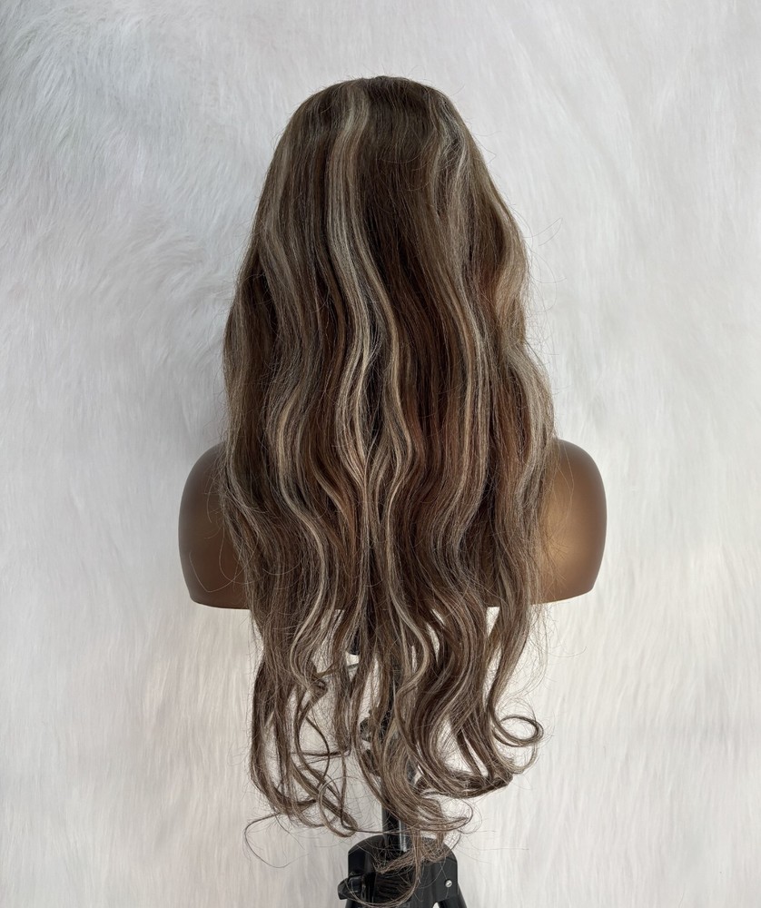 This wig is absolutely stunning! The 100% human hair feels so soft and natural, and the 13x4 lace front blends seamlessly for a realistic hairline. The body waves add volume and movement, while the highlights give dimension. Love that it’s glueless—easy to wear and comfortable all day. The transparent lace is undetectable, and the 24-inch length is perfect for versatile styling. Super easy to install, and the quality is worth every penny. Highly recommend for a flawless, natural look!