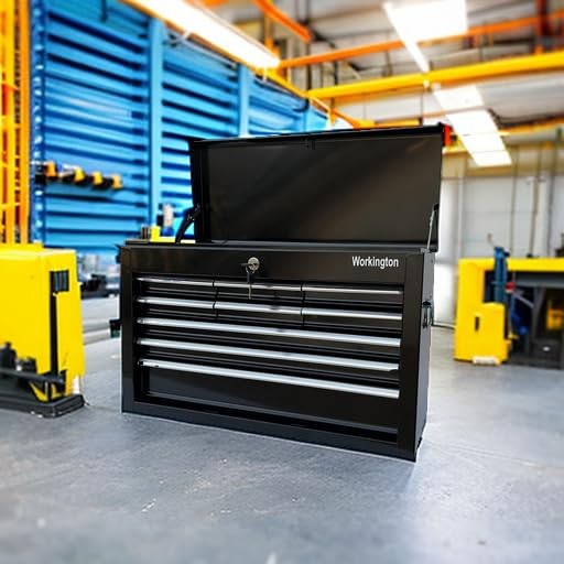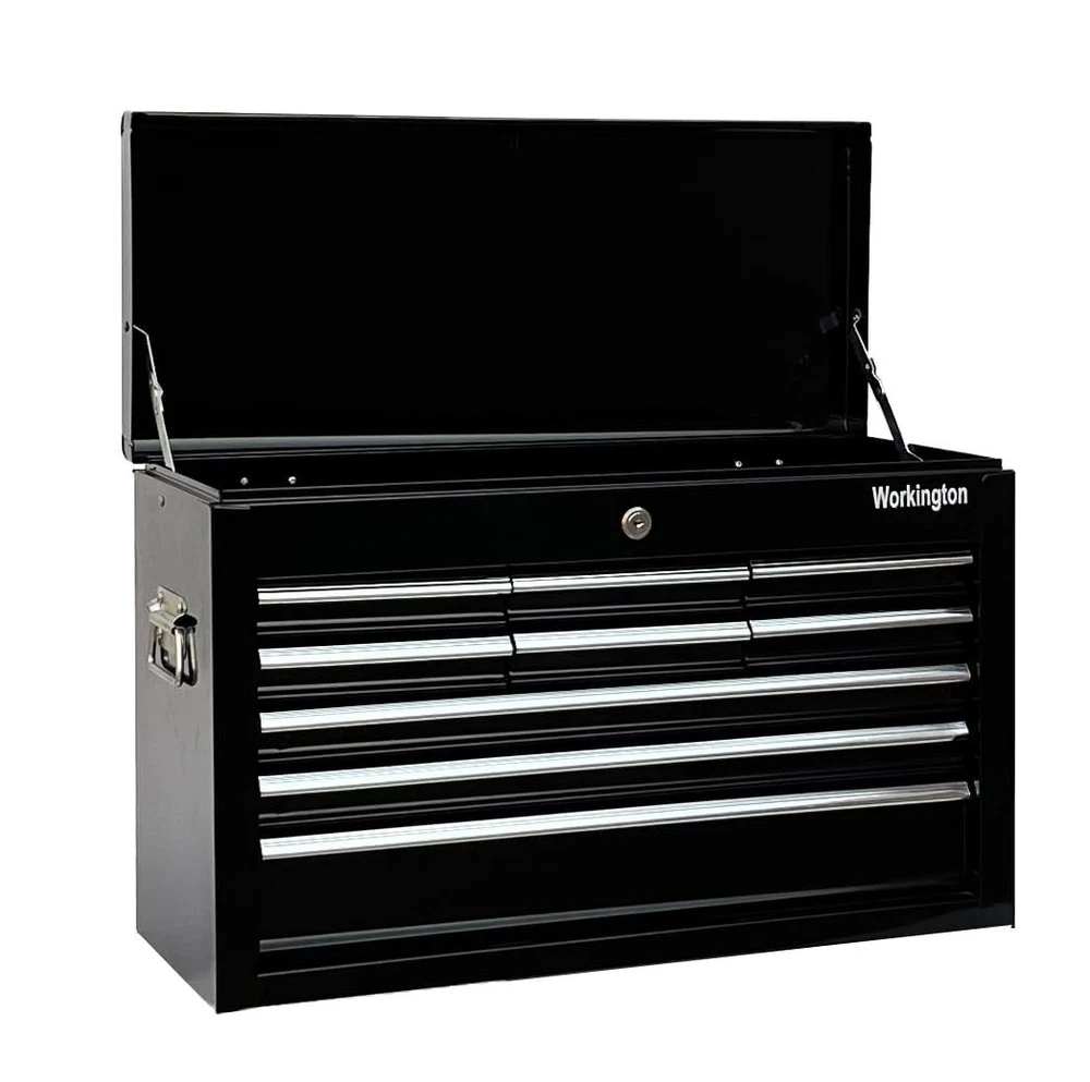 Portable Metal Tool Chest with 9 Drawers, 24" 9-Drawer Tool Chest Cabinet with Ball Bearing Drawer Slides, Steel Tool Storage Box Organizer portable metal tool chest is designed idealy for all purpose tool storage use. Stable and Sturdy The tool box is made of 22 guage steel metal for being durable and sturdy Comfortable Grip Side Handle Comfortable grip side handle for being portable Central Cam Lock Mechanism System Central cam lock mechanism system for extra security Non-slip Drawer Liners Non-slip drawer liners to prevent the tools from rolling when opening the drawer Meet Your Tool Storage Need Plenty of storage space for the 6 drawers and top compartment Specifications Top 6 drawer dimension: 6(W) x 8-7/8(D) x 1-5/8(H) inch Middle 2 drawer dimension: 20-1/8(W) x 8-7/8(D) x 1-5/8(H) inch Bottom 1 drawer dimension: 20-1/8(W) x 8-7/8(D) x 3-3/8(H) inch Product dimension: 23-5/8(W) x 10-1/4(D) x 15-1/8(H) inch 9 drawers portable storage tool chest with two comfortable side handles and full-length piano hinge Central cam lock mechanism system for extra security All ball bearing drawer slides for smooth and efforless open-to-close of the drawers Non-slip drawer liners to prevent the tools from rolling when opening the drawer Product Dimension: 23-5/8"(Width) x 10-1/4"(Depth) x 15-1/8"(Height)