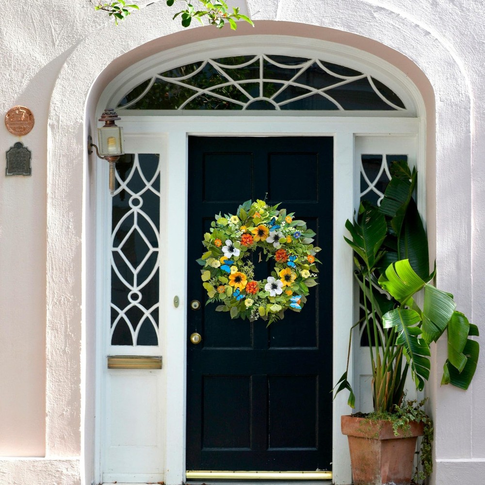 This beautiful wreath instantly brightens up any space! The mix of wildflowers and greenery looks so natural and fresh, perfect for spring and summer. I love how full and realistic it looks—great quality for the price. It holds up well outdoors but also looks lovely inside. The 24-inch size is just right for my front door. Highly recommend for anyone wanting a cheerful, farmhouse-style touch!