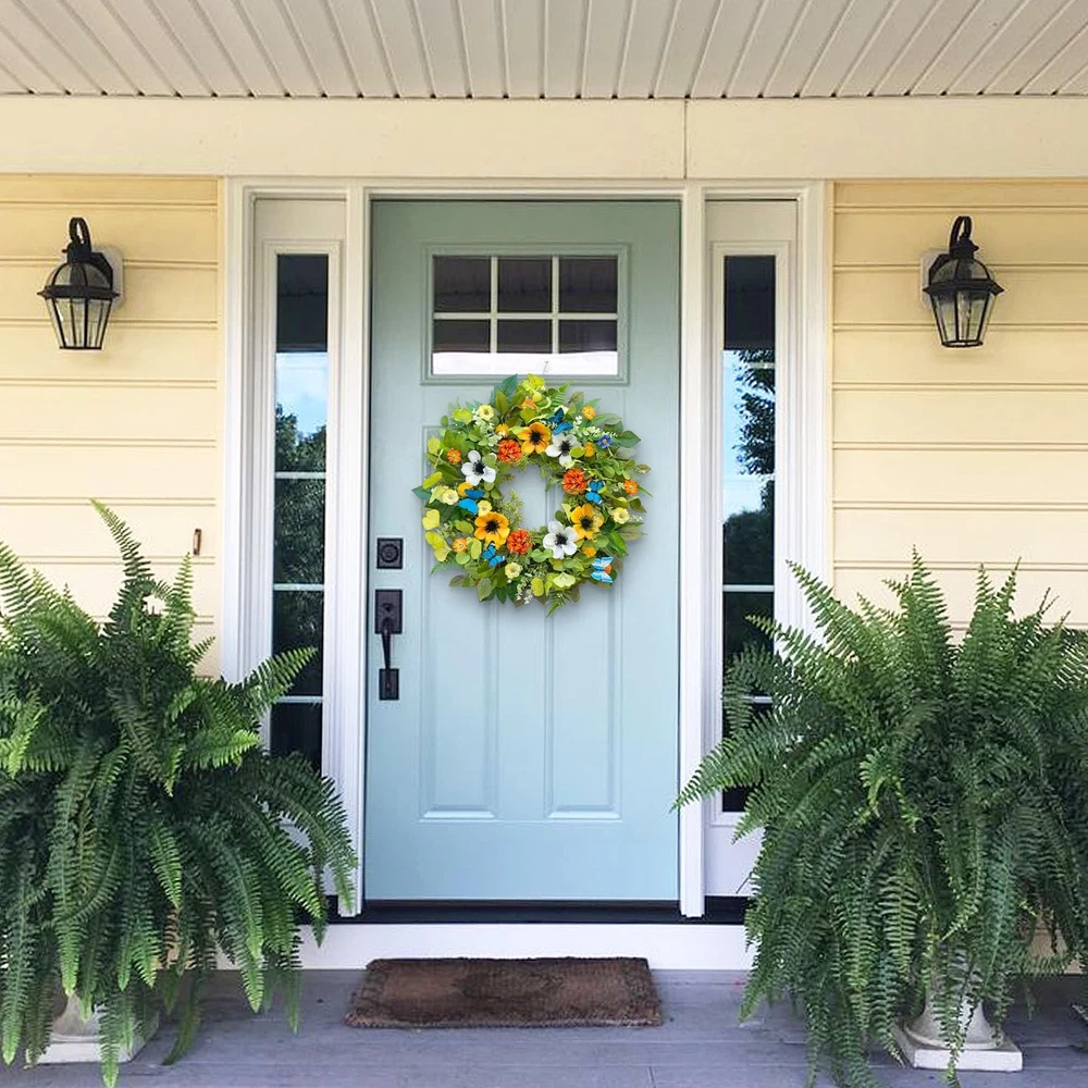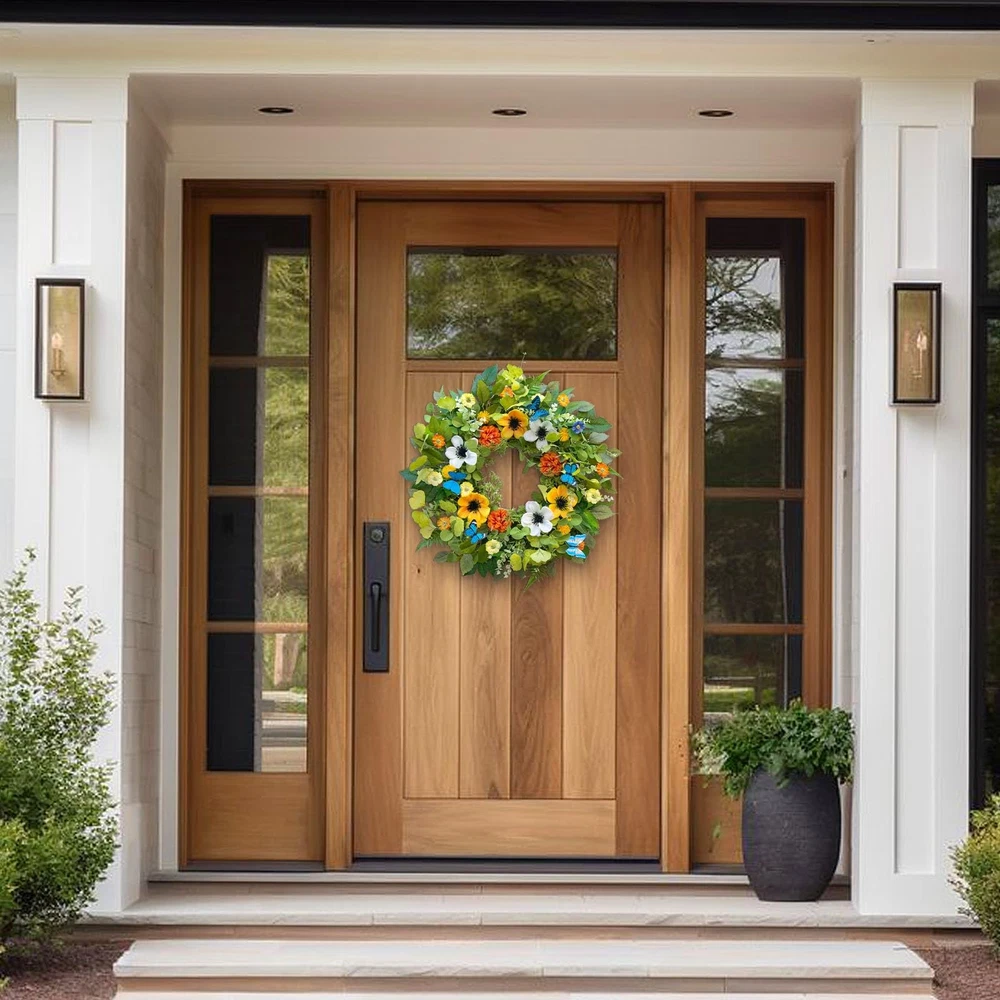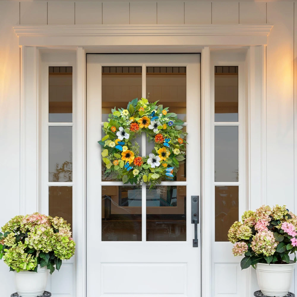 Transform your home with this stunning spring and summer wreath for front door, a perfect blend of wildflowers, eucalyptus, and lush greenery. Designed for both indoor wreaths and outdoor wreaths, it adds a touch of elegance to any setting. Whether you're looking for spring wreaths for front door clearance or a durable weatherproof outdoor wreath, this front door reef is a must-have. Crafted with attention to detail, this floral wreath is perfect as a green wreath farmhouse accent or as part of your spring and summer wreaths collection. Use it as a door wreath for front door, a large decorative wreath for your living room, or a year-round wreath for any occasion. With its weatherproof design, this outdoor wreath for front door stands up to the elements, making it an excellent choice for everyday wreaths for front door or seasonal displays like a spring door wreath or summer wreath for front door. Whether you're shopping for a greenery wreath or a flower wreath to suit any style, this all-purpose wreath for spring and summer will elevate your decor. 1. Vibrant Floral Design for All Seasons This front door wreath features a blend of bright wildflowers, eucalyptus, and greenery. Perfect as a spring wreath, summer wreath, or year-round wreath for front door to keep your entryway fresh and inviting. 2. Durable & Weatherproof for Outdoor Use Made with premium materials, this outdoor wreath is designed to be weatherproof, maintaining its charm even in varying climates. Ideal as an outdoor spring wreath or summer wreath for front door. 3. Versatile for Indoor and Outdoor Decor Whether displayed as an indoor wreath or a green wreath for decorating your porch, this eucalyptus wreath brings elegance to any space. A great option for farmhouse wreaths indoors or wreaths for all seasons. 4. Perfect for Any Occasion Suitable for spring wreaths for front door, summer door wreaths, or all-season wreaths for front door. Use it as a door reef for events, a decorative wreath for your walls, or a wreath for indoors. 5. Ready to Hang & Low Maintenance This lightweight door wreath is easy to hang on your front door or wall. Its weatherproof outdoor wreaths construction ensures it remains vibrant with minimal care.