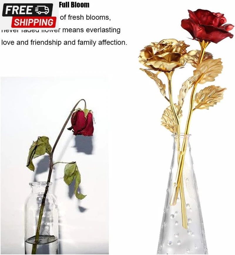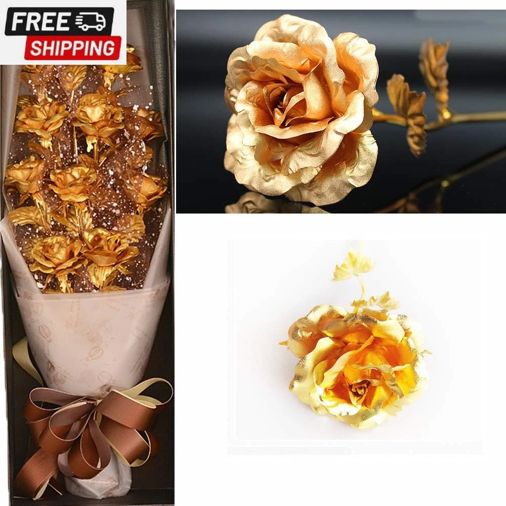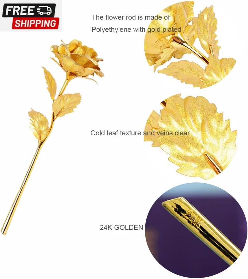 24K Forever Rose Golden Rose, Gold Dipped Rose 24K Rose Flower with Gift Box and Bag for Lover Mother Friends, Christmas Thanksgiving Wedding Anniversary Mother'S Day Valentine'S Day 🌹24K Gold Dipped Rose Flower🌹-- Petal and leaf are made of plastic with thin 24K gold foil plated, the flower rod is made of Polyethylene with gold plated. Come with a gift box and packaging, ideal present for any festival and someone you care about. 🌹Gold Dipped Rose In Full Bloom🌹-- Outlast a bouquet of fresh blooms, never faded flower means everlasting love and friendship and family affection. 🌹Rose Whisper🌹-- Roses are the universal language of love. The rose is a combination of love and beauty, the embodiment of the god of beauty and the blood of the god of love. 🌹Dimension🌹-- Flower: Approx. 8*8*24cm/3.14*3.14*9.44in; Packaging: Approx. 8.5*7*27cm/3.34*2.75*10.62in. 🌹Perfect Gift🌹-- Come with a gift box, best gift for Valentine's Day, Mother's Day, Thanksgiving' Day, Birthday, Christmas, for lover and friends. We providing life-time after-sales service. Please contact us via email firstly if you have any problems. Thanks! 🌹Red Rose Whisper🌹 -- Love, Passion, Beautiful love. 🌹Golden Rose Whisper🌹-- Noble, Beautiful, Apologetic. 🌹Red and Golden Rose Whisper🌹-- Happiness. 🌹Blue Rose Whisper🌹-- Miracles, Pure, impossible. 🌹Purple Rose Whisper🌹-- Deep Love, Mysterious and Noble. Item Specs Type: 24K Gold Plated Rose Flower Material: Plastic, Polyethylene, Metal Quantity: 1pcs Rose Color: Golden/Red/Blue/Purple Rose Dimension: Approx. 8*8*24cm/3.14*3.14*9.44in Packaging Dimension: Approx. 8.5*7*27cm/3.34*2.75*10.62in Net Weight: Approx. 192g/ 6.77oz Package Included 1 * 24K Gold Plated Rose Flower 1 * Gift Box and Bag Shipping Fast shipping is very important for us. Our standard US shipping service is FREE. Your order will be shipped within 2-3 business days upon full payment received. Your order will be delivered within 2-3 business days after the handling time. We only ship to the confirmed PayPal address. We reserve the right to cancel any order for any reason at any time. We are not responsible for undeliverable addresses. Returns and payment We offer a 30 days return policy from checkout winning date. We allow only PayPal as payment method FeedBack Your feedback very important to us, after you get your package and you are satisfied with our service please leave us positive feedback If you have any problem with your order / any questions please before leave any type of feedback For any questions, using eBay contact system Please visit our eBay store to check out other items for sale! Thank you for shopping at our store.