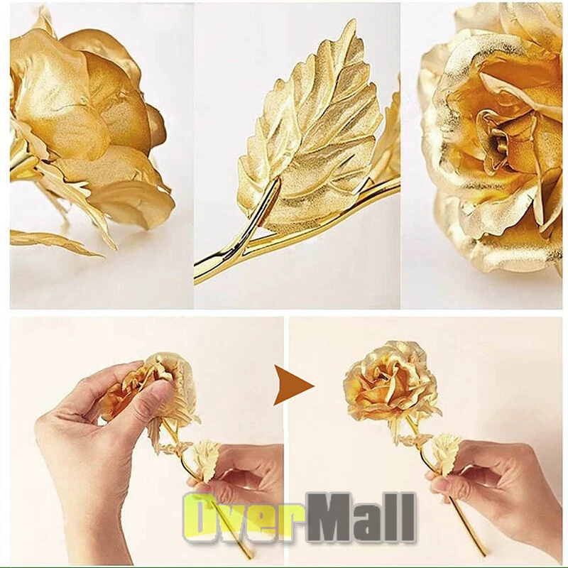 Lots Gold Plated Rose Flower Dipped In 24K For Valentine's Day LOVE Mom Gifts Lots Gold Plated Rose Flower Dipped In 24K For Valentine's Day LOVE Mom Gifts BEST CUSTOMER SERVICE ON OUR sale2015express EBAY STORE↓ ↓ ↓ 〓SHIP From US Local Stock 〓FAST & Free, 1-6 Days Arrival 〓FREE Return, Seller Pay!! 〓LIFETIME Money Back Guarantee 〓LIFETIME Free Replacement Guarantee 〓LIFETIME Warranty 〓QUICKLY Reply within 24 Working Hours 〓 MOST orders ship within 1 business day with Tracking Number 〓 ANY PROBLEM please email us before feedback, thanks! Add our listing to Watchlist Or Add to Cart , you will get more discount!!! Best Gift for Valentine's Day,Mother's day,Christmas,Birthday,Wedding occassion Suitable for wedding party,home table decoration etc Advantage ♥ Forever LOVE Symbol - The roses will last forever, Never die and wilt(made of high grade 24K 99.9% gold leaf/foil). ♥ Ideal for Valentines Day. Perfect gift to deliver" I love you forever" to your valentine on Valentines day. The ideal presents for Valentines Day, Mothers Day, Birthdays, Weddings, Christmas or any occasion that commemorate precious time with your loved ones! This exquisite artificial flower is vivid like always blooming and it is also good for table, desk or home decoration Features: * Petals, leaves on the surface are gold-plated. Rose rod is polyethylene gold-plated. The rose internal is polyethylene plastic. * Light weight, petal remains strong, not easy to fold, deformation, not faded. (note: the product internal skeleton is of polyethylene plastic material, which is very light, not metal) Specification: Total length: approx. 25cm Leaf length: approx. 5cm Flower diameter: approx. 8cm Flower bud diameter: approx. 6cm Package Includes: 1/2/5/6/10 x Dipped Foil Gold Plated Rose 1/2/5/6/10 x Gift Box Payment Shipping About Feedback About us Contact us Payment 1. Paypal Accept. 2. Payment should be sent within 4 (FOUR) days auction closing. Or unpaid dispute will be filed for closing auction. Shipping 1. Fast shipping from NJ, US. 2. Shipping available time: Mon. - Fri. exclude holidays 3. The orders will be handled in 24 hours after payment got. Ship to Paypal Address ONLY. About Feedback If you are dissatisfied for any reason, please do not be quick to leave negative/neutral feedback. We work hard to make sure EVERY CUSTOMER 100% SATISFIED and resolve any problem for you and always leave positive feedback to all our customers. About us 1. Welcome to OverMall, We pride ourselves on providing the outstanding service and high qualtiy products, make our customer feel confident buying online. 2. For the most US address, we offer free standard shipping . 3. By shopping with us, you can guarantee the latest technology for the best possible price. Contact us You are welcomed to contact me for any question. I will reply your email in about 24HRS in business days.
