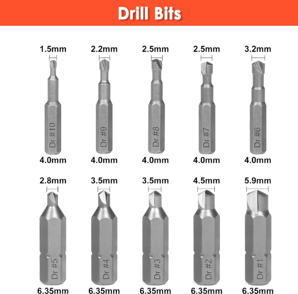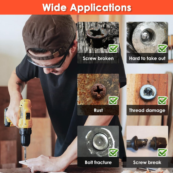 Stripped Bolt Extractor Impact Socket Set 24 PCS Damaged Bolt Remover Easy Out US Warehouse - FREE & FAST Shipping in US Product Description: Premium Quality: Each damaged small screw extractor is made of high hardness high-speed steel 6542 with 68 HRC max Rockwell hardness, and double times price higher than the HSS 4341, just for the superior durability Rich Accessories: Besides getting extractor & bit adapter * 1, bit holder * 1, Y type hook driver * 1, you can also get the M35 high hardness drill bit with 69 HRC max Rockwell hardness for greater versatility Easy to Use: A friendly user guide to let you get started quickly to extract the damaged bolts, nuts & small screws with ease Wide Applications: The stripped screw extractor set includes 20 pieces of stripped screw extractor in 10 different sizes to meet all your demands, such as Allen bolts, machine screws, lag bolts, wood screws, hex bolts, sheet metal screws, and other screws Portable Organized Storage: A compact, heavy-duty blow mold case keeps all the screw extractors organized and takes your set on the go Feedback: 1.Any question for your order, please contact us in time, we will reply to you within 24 hours and give you a satisfactory answer. 2.If you are satisfied with our products and services, hope to take up your a little precious time to leave feedback reviews for our products.Thanks! 3.Your satisfaction is our effort. Welcome to order again! Have a great day! Our Policy: 100% Satisfaction Guarantee 20% of restocking fee will be charged for return item