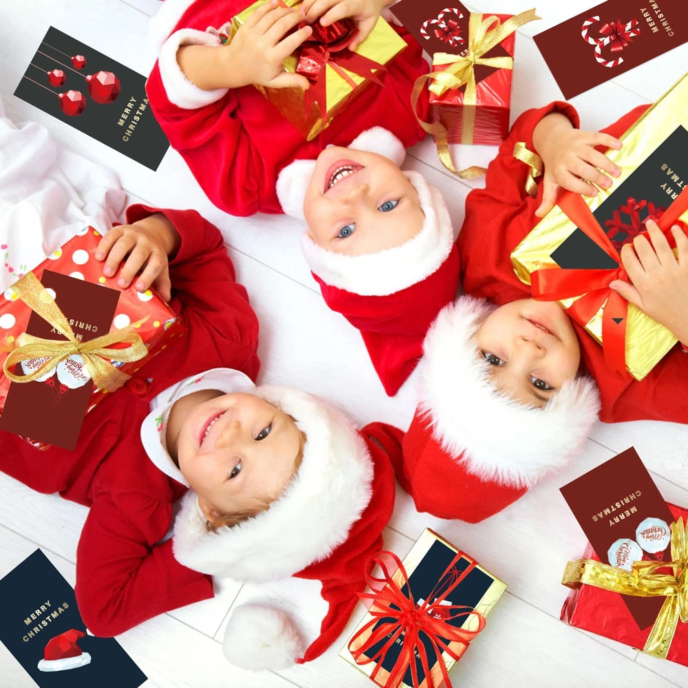 Descriptions: Sending an annual Christmas card may seem like a thing of the past, but there's no better way to get into the holiday spirit than reading a Christmas quote or inspirational Christmas poem written inside a card that was picked just for you. As someone said “There will never be a mode of communication as personal as a handwritten note. They're genuine, deliberate, and will therefore always strike a chord. As such, why not choose a gorgeous and beautiful holiday card to convey your Christmas greetings, in particular, make for the perfect short messages to write inside your DIY or store-bought card to show the receiver just how much you care. Features: Total 24pack of Christmas holidays cards Matched with 24white mailing envelopes and 80 seal stickers 6 assortments of Christmas holidays themes Each assortment in 4pcs Bright colours and cute designs Proper size in 3.5 x 6.8inches ( 8.9 x 17.3cm ) when folded Blank inside for narrative writing Glossy outside but matte and non-bleed inside Made of high-quality 300gsm card stock Use be Christmas cards & New Year Cards A pretty good wish for those who deserve heartfelt Seasonal Greetings, such as friends, family, coworkers, clients, teachers, and classmates. Specifications: Colour: Red, Blue and Black Unfold size of card: 19 x 26cm (7 x 10 inches) Fold size of card: 3.5 x 6.8inches ( 8.9 x 17.3cm ) Size of mail envelopes: 10 x 17cm (4 x 7inches) Diameter of seal stickers: 2.5cm (1inches) Material: 300gsm card stock Finish type: glossy Warranty: 90-day free return Package: 24 x Christmas Holiday Money holder cards 24 x Brown mailing envelopes 30 x Red Seal stickers Material: Christmas gift cards are made of high-quality paper which is lightweight and durable.Christmas money holder 24 sheets in total. Funny Christmas Cards: If you're unsure what Christmas gifts to buy, or you simply know they’d prefer the freedom of choosing their own gifts, gift cards or cash are the most simple and Ideal gifts. Christmas Cards Bulk: Holiday gift cards are individually inspected, then carefully packaged with envelopes, making this money and gift card holder stationary set a must-have for any holiday gift. Christmas Money Cards: Christmas holiday money and gift card holders SIZE is 3.5 inches x 6.8 inches folded and 10.5 inches x 6.8 inches open. The included envelopes measure 4 inches x 7 inches, which allows you to write heartfelt holiday wishes for your friends and family. UNIQUE DESIGN and EASY TO USE: Holiday cards bulk include 6 different designs of cute cartoon style christmas cards. Opening the exquisite Christmas greeting card, the inside is blank.You can express your care and love for your family and friends by writing holiday wishes, poetry, or even creative Christmas pattern.