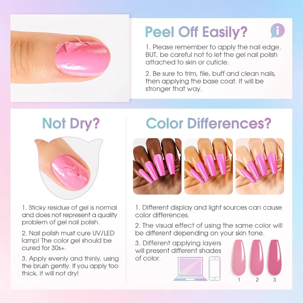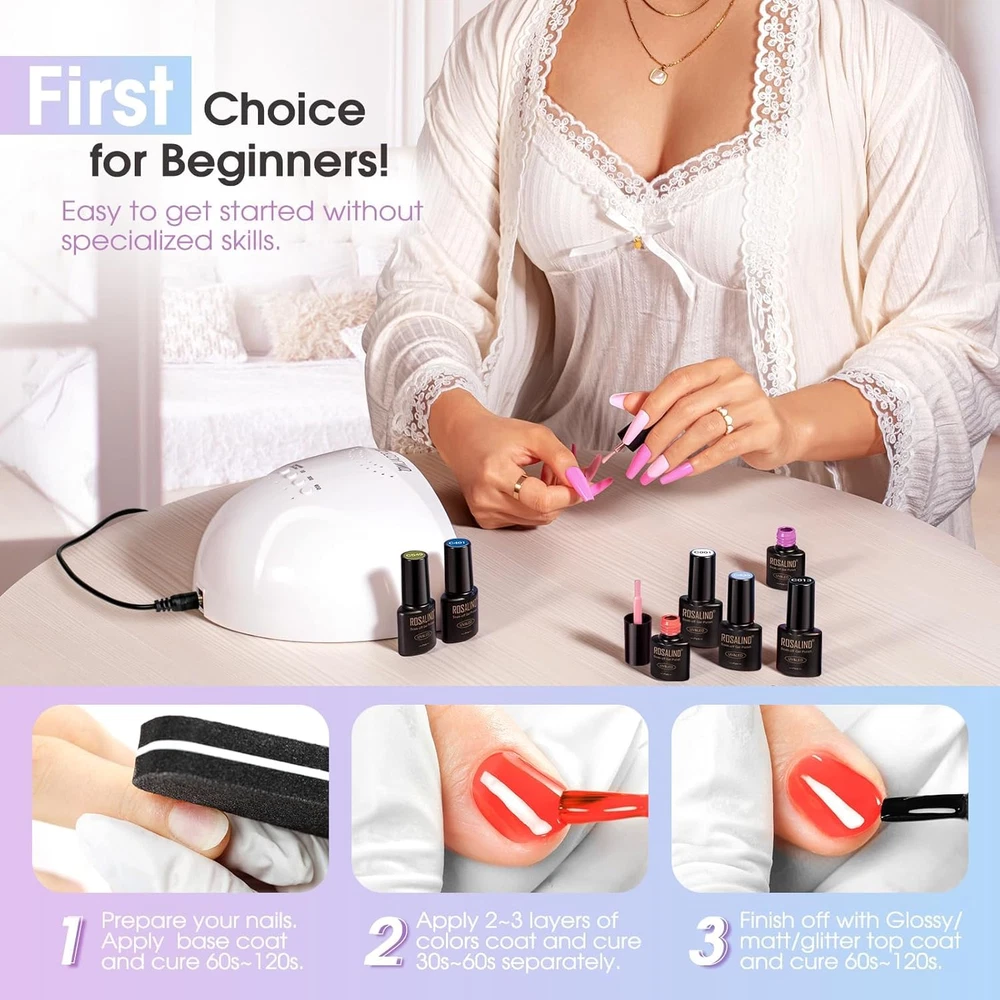 Store New Arrivals Add to Favorite View Feedback Contact Fast deliveries to the customer's home Quality customer service John Make the customers happy! 24PCS Gel Nail Polish Set, 20 Colors Gel Polish with Base Coat and Glitter&Glossy&Matte Gel Top Coat Fall Winter Colors Holiday Nail Gel Description What You Get: ROSALIND 20 colors gel polish (5ml/0.17fl.oz, mini bottles) + glitter top coat + glossy top coat + matte top coat + base coat. ROSALIND all seasons nail gel set contains 20 classic lively and cheerful colors for any season and any scene. Come together to experience the fun of nail art DIY 4 No-Wipe Base, Glossy, Matte and Glitter Top Coat: Compared to traditional gel polish set, with the addition of the glitter top coat gel nail polish, the glitter effect can be seen in every color in the kit, eliminating the need to purchase a special glitter color kit! It's easy to create the perfect manicure at home Easy Application and Good Tenacity: The nail gel polish colors kit is long-lasting for 28+ days with perfect shine under proper application - with base gel top coat throughout the full application process and needs to be cured under LED/U V light for 60-120 seconds Environmental & Healthy: ROSALIND gel nail polish set is made from 9 Toxin-Free Ingredients, making it low-odor. There are no harsh ingredients or adhesives that lead to damaged nails. Avoid contact with eyes, mouth, and skin Best Manicure Gift: ROSALIND gel nail polish set comes with a beautiful gift box. It is a perfect gift for family and friends on birthdays, anniversaries, Valentine's Day, Mother's Day or other holidays. This is a wonderful and unique manicure gift set that will be loved by anyone who receives it Product Description ROSALIND GEL NAIL POLISH SET Add to Cart Add to Cart Add to Cart Add to Cart Add to Cart Customer Reviews 4.3 out of 5 stars 310 4.2 out of 5 stars 22 3.6 out of 5 stars 36 3.6 out of 5 stars 144 4.1 out of 5 stars 57 1.0 out of 5 stars 1 4.1 out of 5 stars 57 Price $7.99 $ 7 . 99 $9.99 $ 9 . 99 — — $13.99 $ 13 . 99 — $14.99 $ 14 . 99 ROSALIND gel polish ✔ ✔ ✔ ✔ ✔ ✔ ✔ with top and base coat ✔ ✔ ✔ ✔ ✔ ✔ ✔ with glitter top coat ✔ ✘ ✔ ✔ ✔ ✔ ✔ with nail lamp ✘ ✔ ✔ ✘ ✘ ✘ ✘ long lasting gel polish ✔ ✔ ✔ ✔ ✔ ✔ ✔ Item model number 20color gel polish set 2C Item dimensions L x W x H 9.09 x 7.64 x 0.69 inches Liquid Volume 4.08 Fluid Ounces Special Feature 持久 Color 20color gel polish set 2C Finish Type Glossy Product Dimensions 9.09 x 7.64 x 0.69 inches; 11.36 ounces Type gel Material Type Free Toxin-Free Item Form Gel Included Components 20 colors of gel polish, glitter top coat, glossy top coat, matte top coat, and base coat ABOUT US We offer the best prices around on high quality products. Our E-store includes media such as books, movies, music and games while offering electronics, toys, sporting apparel, clothing, tools, general home, garden items and more. SHIPPING We are always working hard to ensure your package arrives as soon as possible. Please understand that some factors like weather, high postal traffic, and the performance of shipping companies are outside of our control. We offer free shipping to the lower 48 states and ship within 2 business days of payment, usually sooner. We do not accept P.O. Boxes. Please provide a physical address. For shipping outside of the continental USA, we only use eBay's Global Shipping Program. The item is shipped to KY and then sent to the rest of the world. International customers are responsible for all duties and taxes. Continue to 'check out' to calculate costs for shipping the item to your country. Messages regarding eBay's Global Shipping Program MUST be directed at eBay EXCLUSIVELY. RETURNS We offer a 30-Day Return Policy on items in which you are not completely satisfied with. You have the option of a full-refund or an exchange of the item. No returns are available on items shipped outside of the USA PAYMENT We accept PayPal. CONTACT US This page content is yet to come Please ad us to your favorite seller and visit again later Thank You CUSTOMER SATISFACTION We try our very best to make sure every customer is completely satisfied. If there's a problem, message us! We're happy to help. WE ACCEPT
