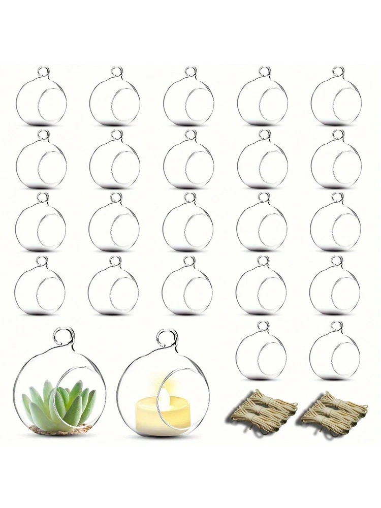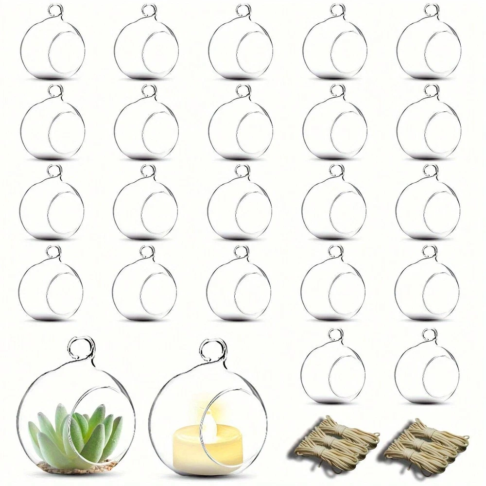 24pcs/100pcs Hanging Glass Globes, Hanging Tea Lights, 3.15in Candle Holder Glass Wedding Hanging Terrarium Globe, Air Plants Holders Hanging Glass Vase Planter Orbs Bulk For Wedding Party Decoration