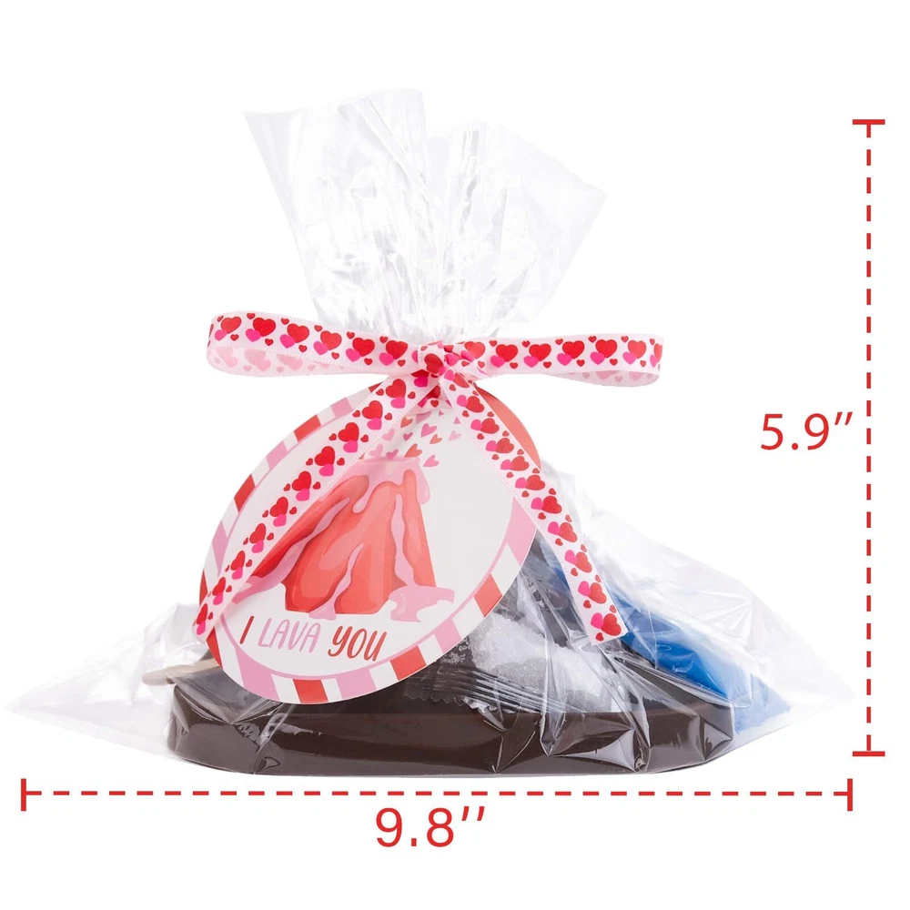 24 PACK VOLCANO SCIENCE KIT - 4 colors of volcanic lava. Each kit includes a volcano model, eruption powder and glitter pigment. EXQUISITE ACCESSORIES - Packaging bag and ribbon are the finishing touches to a Valentine's Day gift, adding an element of elegance and charm. CAUSE A REAL ERUPTION - Mix glitter pigment in with the lava ingredients to make a volcano that truly erupts with bubbling, fizzing lava! VOLCANO-THEMED GIFT TAGS - Come in 2 styles and measure 3.74" in diameter. Featuring volcano puns on the front and "To" and "From" labels on the back, they are the perfect addition to any gift! VALENTINES DAY GIFTS FOR KIDS - Great for teacher’s classrooms prizes, school exchange, birthday party gifts, and party favors supplies.