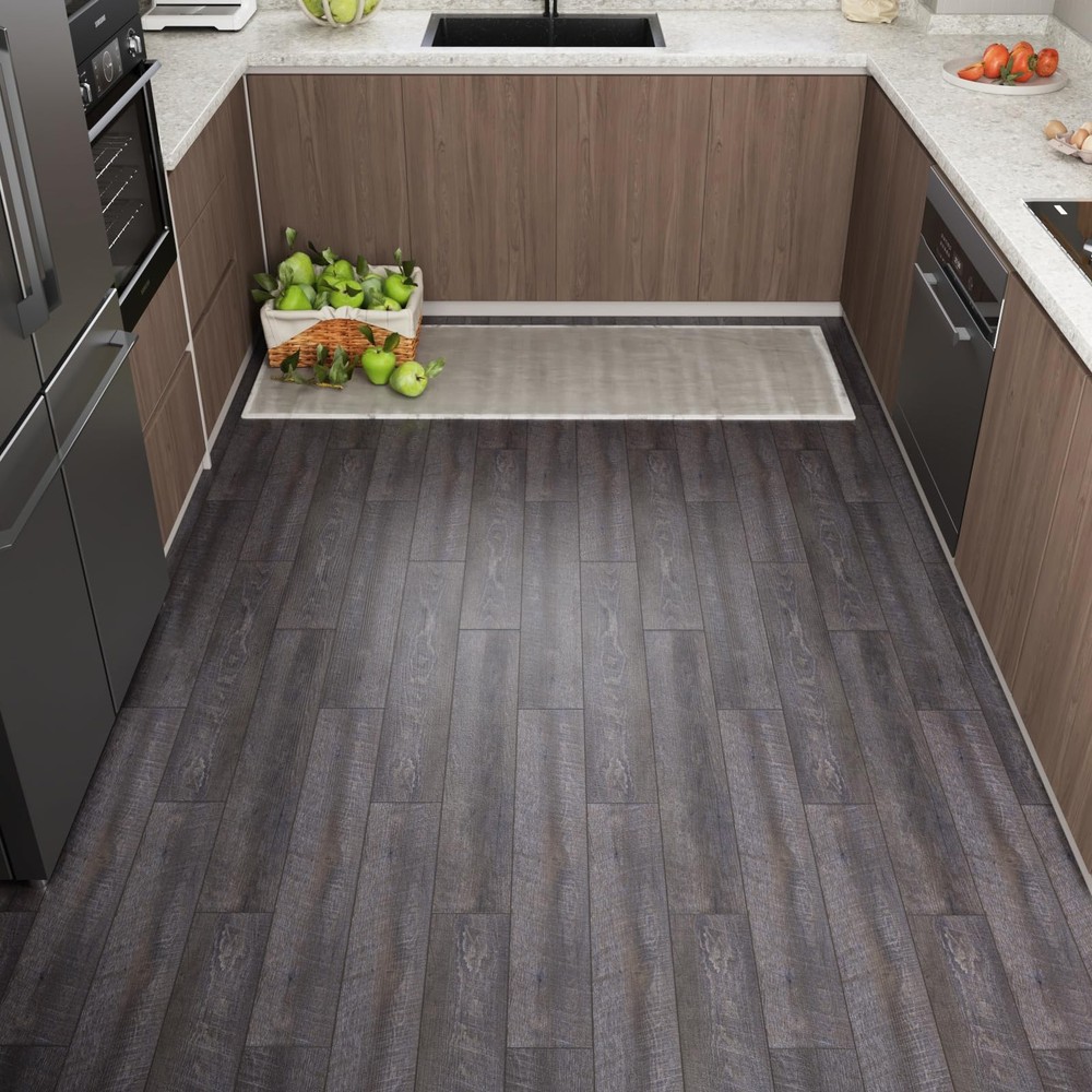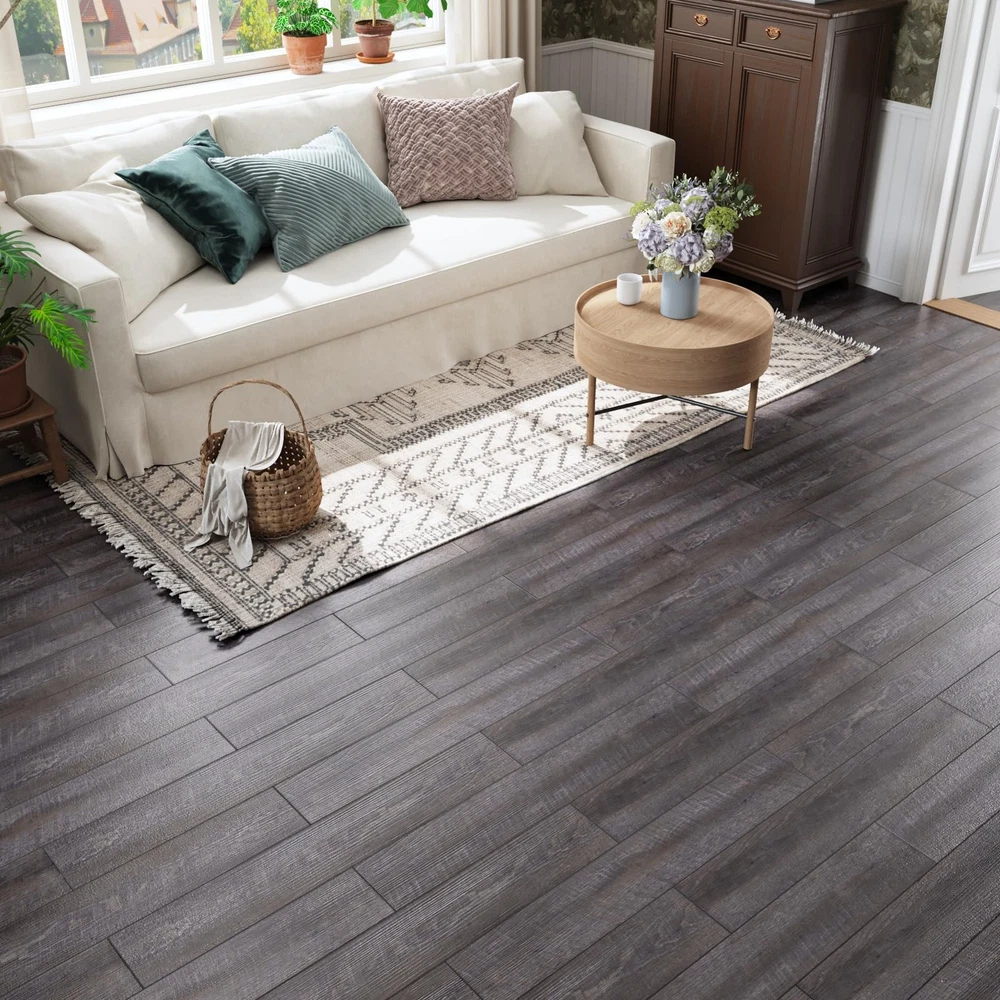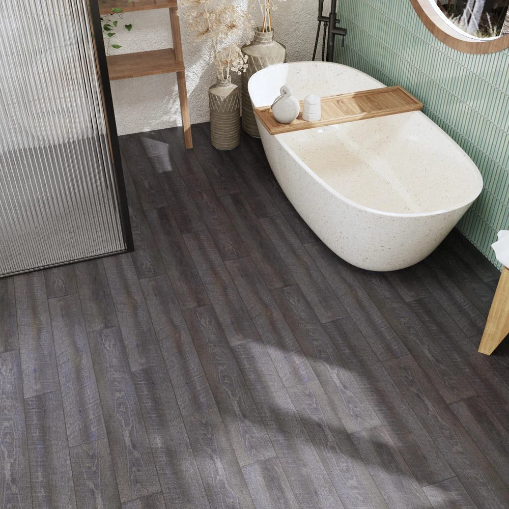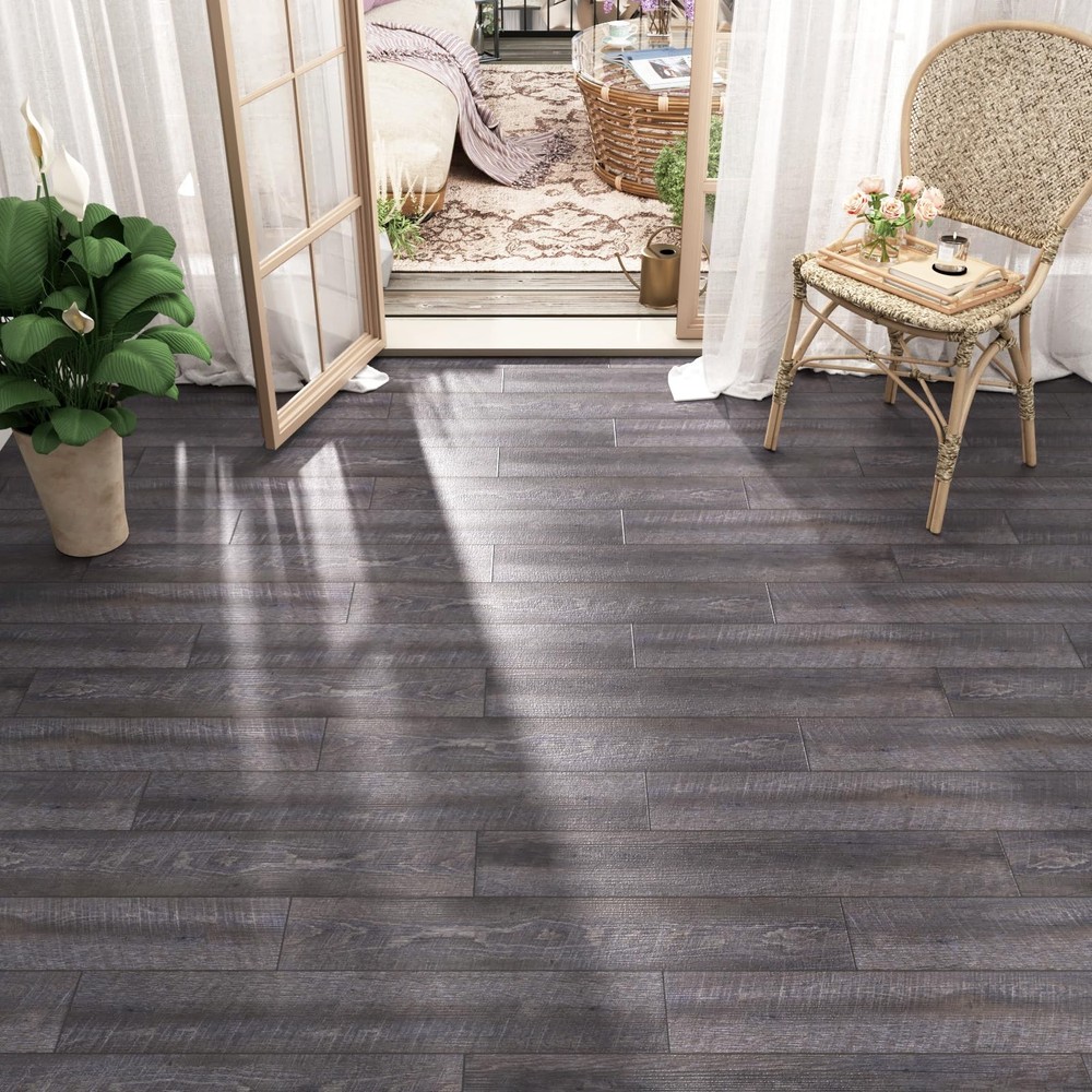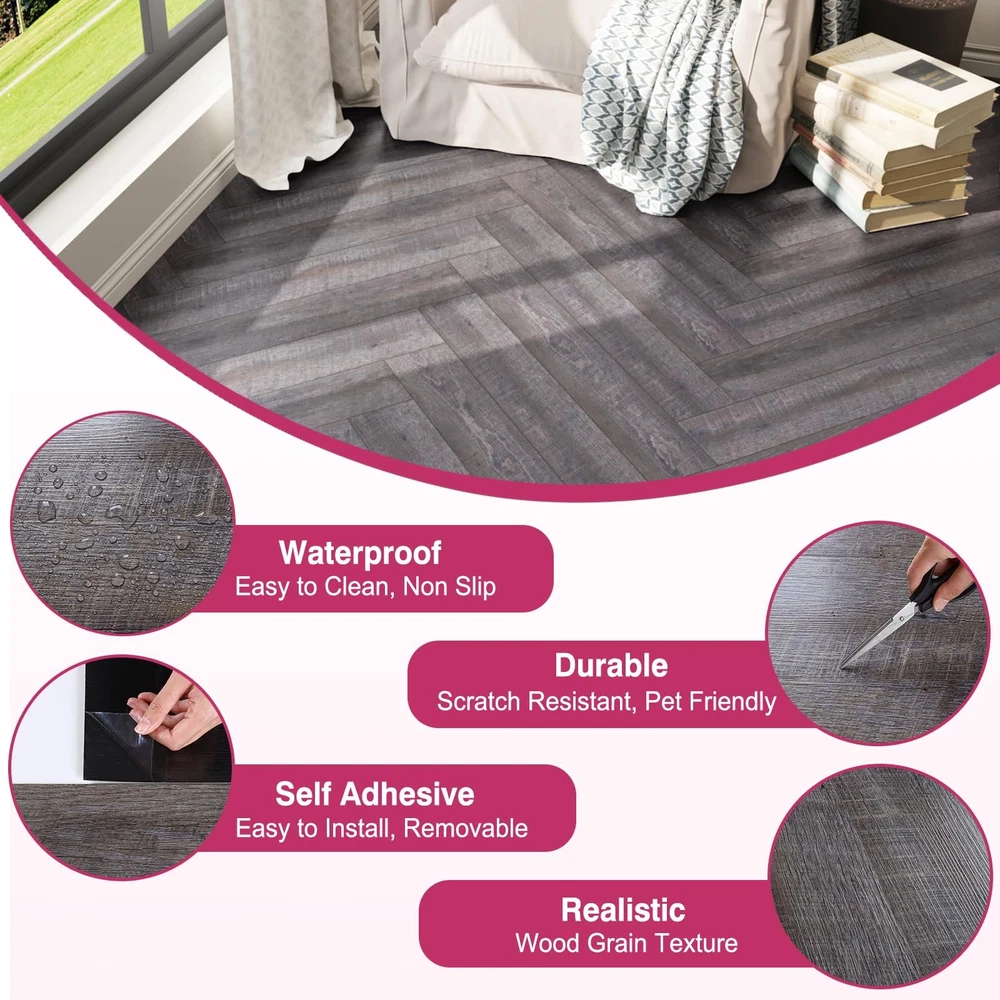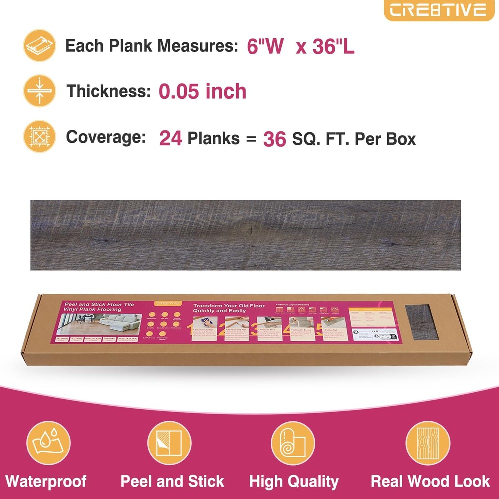 grey brown peel and stick floor tile waterproof vinyl plank flooring vinyl wood planks removable temporary flooring self adhesive laminate floor tile sticker ◀ Peel and Stick Floor Tile ▶ Product Details: Waterproof vinyl plank flooring, each plank is 6" wide by 36" long, 24 planks per box, covering a total of 36 square feet. Rustic grey brown wood look vinyl flooring, textured finish, low gloss, real wood grain and feel enough to replace old flooring ◀ Peel and Stick Floor Tile ▶ Features: Adhesive wood flooring plank is made of high quality vinyl, thick, durable, wear resistant for high traffic areas, scratch-resistant, abrasion-resistant, pet-friendly, anti-slip, long-lasting. Waterproof flooring tile, non-absorbent, oil-proof, moisture-proof and easy to clean ◀ Peel and Stick Floor Tile ▶ Easy Installation: Peel and stick flooring, self adhesive floor tiles, strong adhesion, just peel and stick, no glue or special tools required, easy to apply, easy to cut with normal scissors. Removable and without leaving sticky residue, temporary flooring is a simple and quick solution for renters ◀ Peel and Stick Floor Tile ▶ Application: Wood look peel and stick vinyl flooring tile wood planks for bathroom, kitchen, bedroom, living room, dining room, laundry room, kids room, hallway, entryway, basement, outdoor patio, garage, RV, apartment, farmhouse, classroom, office, flooring, stairs, furniture, home decor, various layout patterns, free DIY ◀ Peel and Stick Floor Tile ▶ Application: Key Tips: ❣For best adhesive result, please make sure the sub-floor is smooth, flat, clean, dust-free and dry. ❣Make sure to roll or flatten the planks after installation, applying pressure to make them stick more firmly. ❣Do not clean or wash the floor or place any heavy furniture on the floor within 24 hours of installation