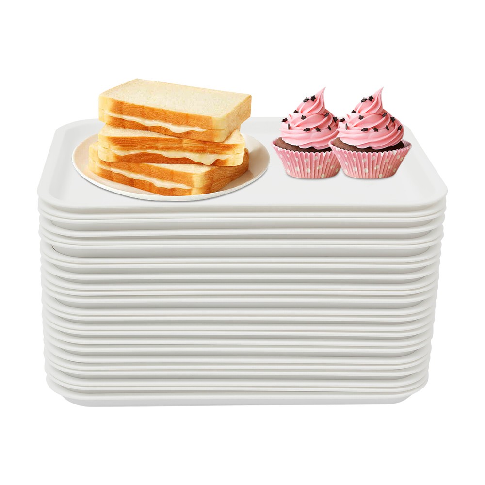 Modern 24 Pscks PP Fast-Food-Tabletts Trays Cafeteria-Tabletts Rectangle White Description Are you looking for a great tray for your restaurant? Our tray is both beautiful and practical to meet your daily needs. It is made of high-quality PP material, which is not only sturdy and durable but also safe to use. The non-slip surface will securely support your meal and give you peace of mind when using it. It will surely become your good helper! Key Features Durable Material: High-quality PP and the injection molding process make the product strong, durable, heat-resistant, impact-resistant, safe to use, and not easy to deform and break, which can maintain the aesthetic and practicality for a long time. Ample Quantity: This set contains 24 pieces, which is enough for your daily use and replacement needs, and you can also share it with your family, friends, or neighbors. User-friendly Design: The surface of the product adopts an anti-slip design, which can increase the friction between the food and the surface, effectively preventing the food from falling or spilling when walking and holding the tray. Suitable Size: Each tray measures 14.17*10.63*0.79 inches, which is the ideal size for holding a variety of fast food items daily, making it easy to get an entire meal from the register to the table in one trip. Space-saving: The product adopts a stackable design, which can be stacked up when not in use, effectively helping you save space. Easy Cleaning: Thanks to the smooth surface and simple structure, you can easily wipe off the dirt on it with water and a rag. In addition, the product is dishwasher safe, which frees your hands. Thoughtful Gift: The product is stylish and sturdy, making it an ideal gift for friends in the restaurant industry. Good Customer Service: We stand behind all our guests and look forward to assisting you with your purchase. It is our pleasure to answer your confusion and questions. The end of the story between us is not "we sell and you buy". Details Rounded Corners: The corners and smooth edges are designed to provide a comfortable and safer touch. Raised Bottom: The raised non-slip bottom makes the product place smoothly, prevents the bottom from rubbing against the desktop, and facilitates ventilation. Raised Edge: It is easy to grip and provides you with a better using experience. Application This product is widely used in fast food restaurants, cafeterias, kitchens, hotels, restaurants, snack bars, schools, hospitals, and cafeterias, and is ideal for serving steaming hot food, juices, snacks, desserts, or other delicacies. Specification Color: White Style: Modern Shape: Rectangle Material: PP Process: Injection Molding Assembly Required: No Max. Heat Resistance: 120℃/ 248℉ Cold Resistance: -20℃/ -4℉ Is Dishwasher Safe: Yes Is Microwave Safe: Yes Number of Pieces: 24 Each Internal Size: 34*24 cm/ 13.39*9.45 in Each Product Size: 36*27*2 cm/ 14.17*10.63*0.78 in Gross Weight: 5kg/ 11.02 lbs Net Weight: 4.5kg/ 9.92 lbs Package Size: 37.5*28*22.5 cm/ 14.76*11.02*8.86 in Package Included 24* Trays Notes 1.Please note that although the surface of this product is non-slip, it is still recommended that it should be held as flat as possible to avoid accidents. 2.Please note that the product should not touch the heat conduit when used in a microwave oven. 3.Please allow the slight color difference caused by the shooting light and the 1-3 cm error due to manual measurement, and make sure you do not mind before ordering. Payment Delivery details Terms of sales About us Contact us Payment We accept ebay payment 。 Fees such as import duties, taxes are not included in the item price or shipping costs. These charges are the buyer's responsibility. Delivery details Shipping: 2-9 working days to: USA Terms of sales We maintain high standards of excellence and strive for hundred percent customer satisfaction. Feedback is very important to us. We hope that you contact us immediately before you give neutral or negative feedback, so that we can address your concerns. It is impossible to address issues if we do not know about them! About us Your satis faction is our ultimate goal. We work hard to earn your trust and future business. Our certified technicians have tested each item before shipping. The unit comes with 1 year limited warranty on all manufacturing defects. a) If you receive a defective item, you may return it or ask for a discount. Please contact us within 14 days after you receive the package. b) What you returned must be intact and in its original packaging as re? u. Customer is responsible for shipping costs of the returned item. c) We will cover the cost of shipping back t with the shipping rate indicated in the registration page. We will send you a new unit or refund the full payment you paid. Thank you. Contact us Business Hour Business Hour: Monday To Friday: 8:30 AM to 5:00 PM (Beijing China time) Due to time zones, our reply to your questions may not be immediately. But within above working time, we will reply your email within 24 hours. If it's non-workdays, please kindly be patient and wait till Monday. Please contact us with ebay message. Please feel free to contact us if you have any questions. Monday To Friday: 8:30 AM to 5:00 PM (Beijing China time) Due to time zones, our reply to your questions may not be immediately. But within above working time, we will reply your email within 24 hours. If it's non-workdays, please kindly be patient and wait till Monday. Please contact us with ebay message. Please feel free to contact us if you have any questions. On May 29, 2025 at 23:24:58 PDT, seller added the following information: