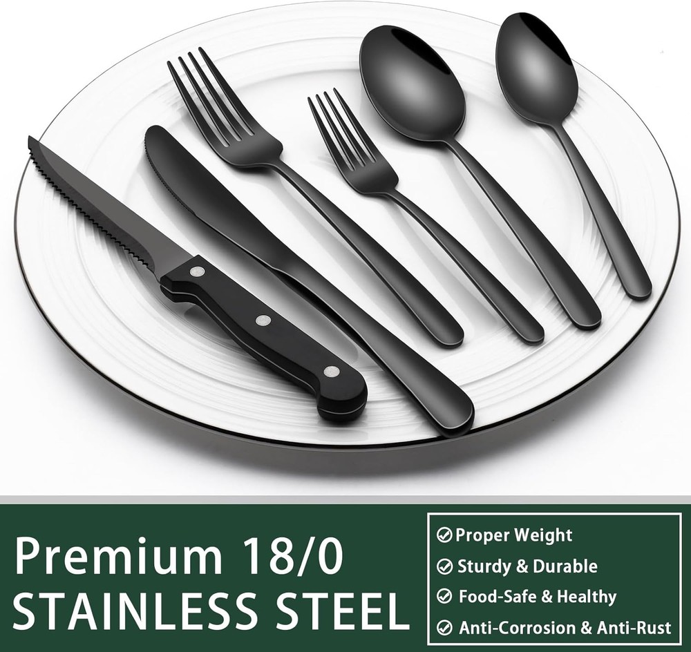 24-Piece Black Heavy Duty Stainless Steel Flatware Silverware Set