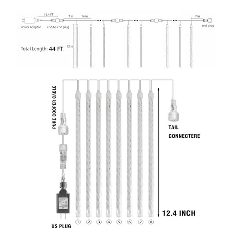 You may also like Durable Epoxy Acrylic Floor Paint Concrete Garage Basement High Traffic Surface 36.58 USD Free shipping AC Furnace Air Filter 16x25x4 MPR 1000 MERV 11 Allergen Defense 4-Pack New 80.2 USD Free shipping Multi Use Copy Paper 11x17 In Ledger 20 Lb 2500 Sheet Jam Free Performance White 69.17 USD Free shipping Stackable Bariatric Medical Chair Antimicrobial Vinyl 1000 Lb Capacity Reception 246.33 USD Free shipping Mini Broadcast Spreader Seed Fertilizer Salt Ice Melt EdgeGuard Technology New 55.54 USD Free shipping LED Computer Desk W/ Power Outlets 4 Drawers Monitor Stand Keyboard Tray New 123.48 USD Free shipping Extra Large Capacity Galvanized Steel Post Mount Mailbox W/ Outgoing Flag New 67.49 USD Free shipping 8 In Stainless Steel Round Chimney Cap Triple Wall Spark Arrestor Insulation New 148.19 USD Free shipping Fire Escape Ladder 2-Story 13 Ft Zinc-Plated Anti-Slip Rungs Durable Easy Use 45.95 USD Free shipping Ceramic Nonstick 12 In Frying Pan Skillet W/ Lid Oven Safe PFAS Free Cookware 50.95 USD Free shipping 10x20 Ft Outdoor Waterproof Canopy Tent Removable Sidewalls Heavy Duty Event New 116.07 USD Free shipping 4.8-Gallon Ash Vacuum 4-Amp Metal Tank Dust Cartridge Filter Suction Hose New 109.92 USD Free shipping About this item Dimensions: Each Dazzle Bright meteor shower rain light has 24 tubes, each tube is 30 cm / 12 inch long, each tube is independent from other tubes. The string wire between eath tube is 14 inch, each light has 16. 4 FT lead wire, allow you to connect the power conveniently. Permium Quality: Made of high quality clear PC plastic material, allow our falling rain light has high light transmittance. It is dustproof, corrosion resistant, aging resistant, made to last. Suitable for indoor outdoor Christmas decorations, creating a fairy dreamland for yourself. Waterproof & Safety: The Christmas lights has super high IP65 Waterproof leavel, suitable for outdoor using, no worry about the rain, snow or other bad weather. Note: Please keep the transformer away from submerged in water. The Christmas outdoor lights has UL cerfitied, equipped with the transformer, the string light will work on 7V low voltage which is lower than human body safe voltage. Connectable: Each string light has equipped with male and female plug, can connect up to 5 light string which can meet your application needs in various scenarios. Perfect Christmas Decorations: The Dazzle Bright meteor shower lights is a wonderful ornament to decorate your home, garden, patio, yard, window and courtyard well on Xmas, very suitable for Christmas party scenes, wedding, holidays, performances, hotels, parks, restaurants. › product details Color White Brand Dazzle Bright Indoor/Outdoor Usage Outdoor Special Feature Waterproof Light Source Type LED Power Source Corded Electric Light Color Multicolor See more You may also like Heavy Duty Folding Table Portable Indoor Outdoor Picnic Party 300 Lbs Capacity 70.38 USD Free shipping Lockable Clear Stackable Storage Bins Heavy Duty W/ Lid Mobile Containers New 148.93 USD Free shipping Mini Fridge Organizer Adjustable Shelving Rolling Caster Storage Solution New 96.55 USD Free shipping Outside Heavy-Duty Adjustable Hammock Stand 2-Person 550 Lbs W/ S-Hooks Portable 154.38 USD Free shipping Over Toilet Storage Cabinet Adjustable Shelves Space Saver Organizer Bathroom US 92.61 USD Free shipping Adjustable Wooden Pet Stairs 4 Levels Foldable Dog Steps Non-Slip Design White 140.78 USD Free shipping 10x20 Ft Outdoor Waterproof Canopy Tent Removable Sidewalls Heavy Duty Event New 116.07 USD Free shipping Stackable Storage Containers 30 Qt Clear Plastic Bins Latching Lid Shatterproof 122.24 USD Free shipping Computer Desk W/ LED Lights Power Outlets 3 Drawers Storage Home Writing Table 111.14 USD Free shipping Round Table Top Reversible Laminate Heat Moisture Resistant Indoor Dining New 74.5 USD Free shipping Durable Planter Square Pot W/ Drainage Modern Design Indoor Outdoor 2 Pack New 160.54 USD Free shipping Bathroom Mirror Cabinet W/ Storage Adjustable Shelves Open Compartment Modern 123.49 USD Free shipping