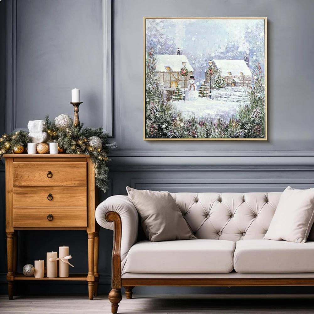 24X24 Inch Christmas Canvas Wall Art, Hand-Painted Framed Christmas Wall Art, Sn
