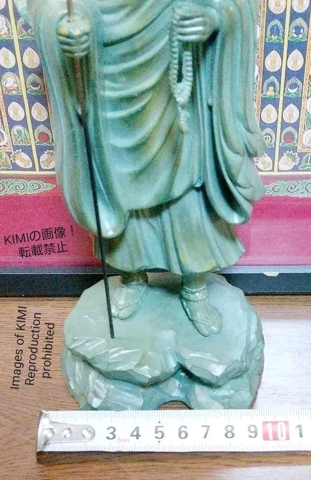 Kukai Kobo-Daishi Founder of the Shingon sect Monk Buddhist statue Made of copper alloy Bronze finish Buddhist art Description ■Size Height: approx. 24cm, approx. 9.4inch Width: approx. 10cm, approx. 3.9inch Depth: approx. 7.8cm, approx. 3.0inch Weight: approx. 1.5g Material: copper alloy Bronze finish Overall condition is good, but there are some scuffs, scratches, and stains from age. Please check the pictures for condition. Please do not buy this book if you are looking for a brand-new quality or if you are extremely concerned about it. -- Kukai (774 [Hōkoku 5] - April 22, 835 [March 21, Jōwa 2]) was a monk of the early Heian period. Known posthumously as Kobo-Daishi, he was the founder of the Shingon sect of Buddhism. Together with Saicho, the founder of the Tendai sect of Buddhism in Japan, he was at the beginning of the shift in the mainstream of Japanese Buddhism from Nara Buddhism, as it is known today, to Heian Buddhism, and brought Shingon esoteric Buddhism from China. He is also known as a Noh calligrapher, and together with Emperor Saga and Tachibana Isei, is considered one of the three great calligraphers of the period. Esoteric Buddhism was born and developed in the Mahayana school of Buddhism, which was a major trend of Buddhism in the northern part of Japan, and incorporated the influences of Hinduism and Zoroastrianism. Kukai Kobo-Daishi, an erudite master who studied at a university in Kyoto and wrote a treatise on the comparative superiority of the three religions of Confucianism, Buddhism, and Taoism in his teens. After being ordained at the age of 20, he traveled to Tang China and practiced Shingon Esoteric Buddhism, which is based on the teachings of Dainichi Nyorai, the principal deity of the Vajrayana and Tathagata realms as represented in the mandala. After returning to Tang, he vigorously taught and established temples and universities to propagate the teachings, thus laying the foundation of the Shingon sect. Kobodaishi 24cm Alloy [Buddha Statue] (Bronze) Shuun Kukai Buddhist Art Buddhism Art Kobodaishi Shuun Kukai Buddhist Art Buddhism Shipping FedEx or DHL or Japan Post International Buyers - Please Note Import duties, taxes, and charges are not included in the item price or shipping cost. These charges are the buyer's responsibility. Please check with your country's customs office to determine what these additional costs will be prior to bidding or buying. Thank you for your understanding.