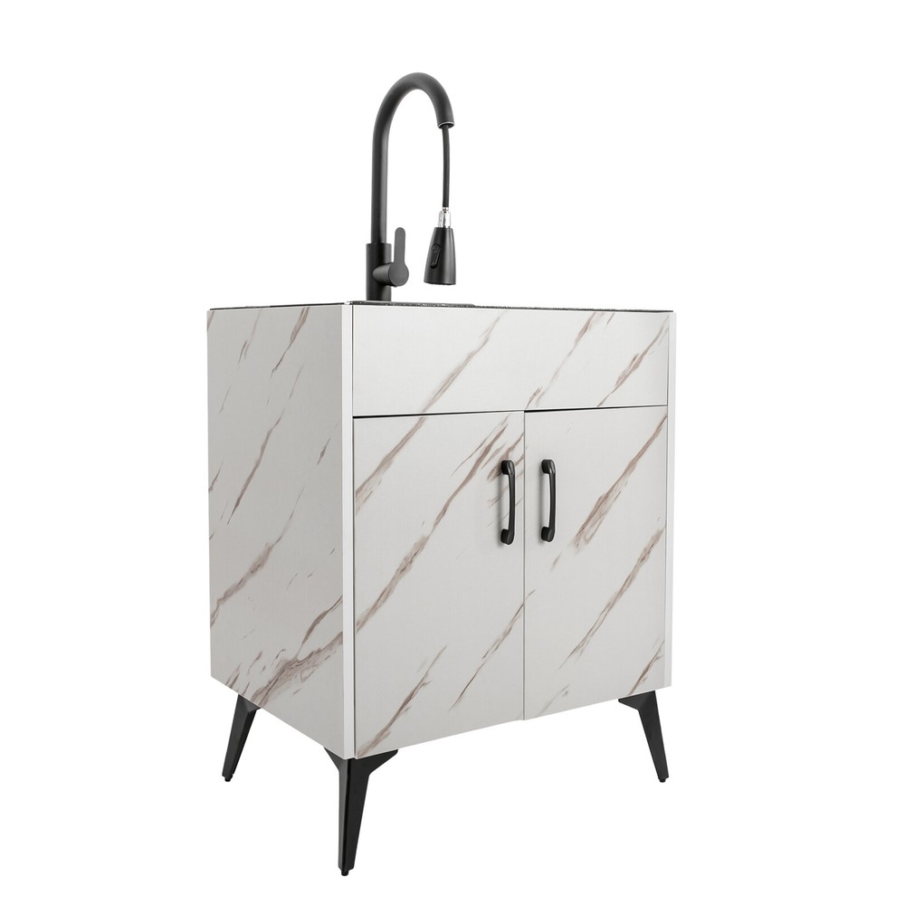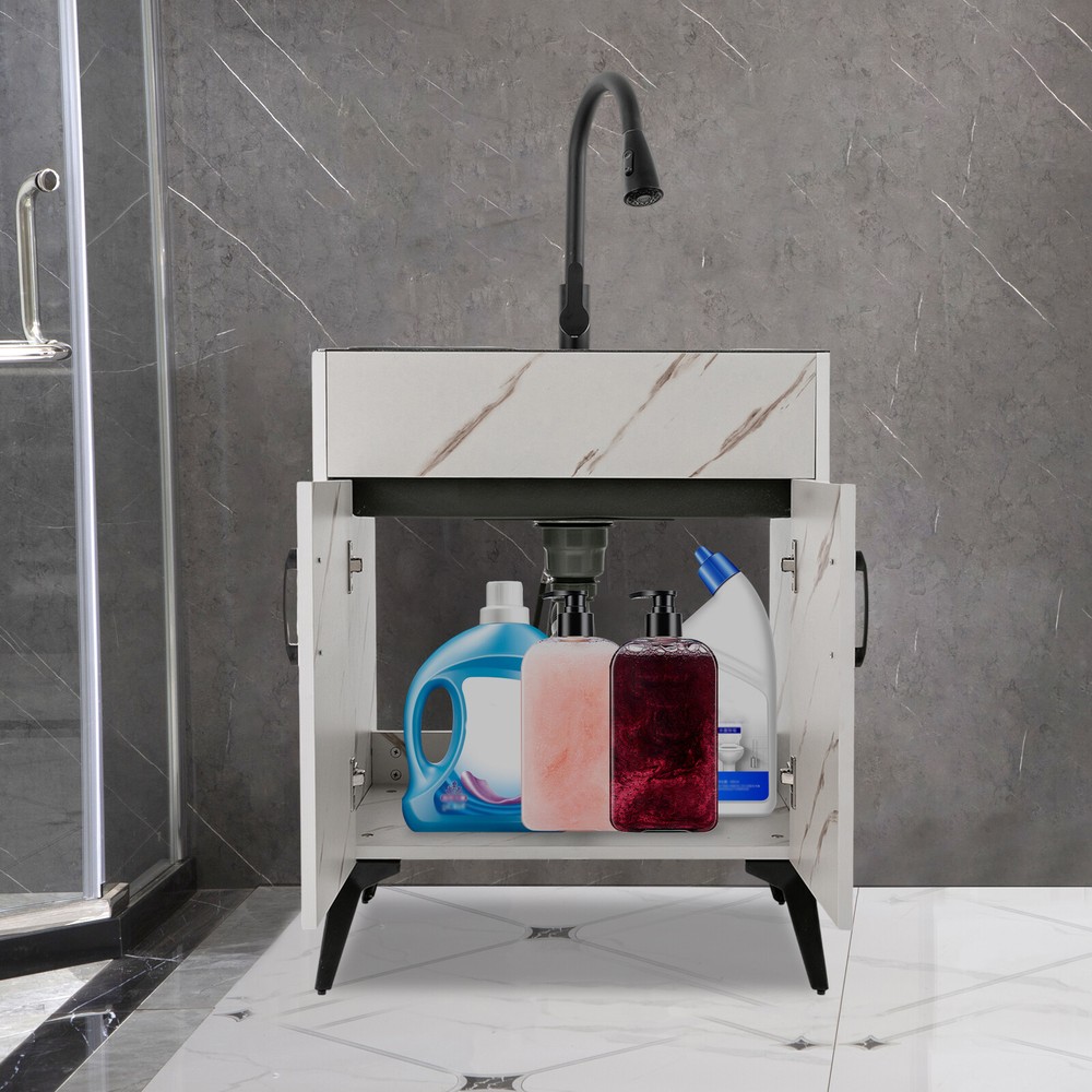 24in White Laundry Utility Cabinet with Stainless Steel Sink and Faucet