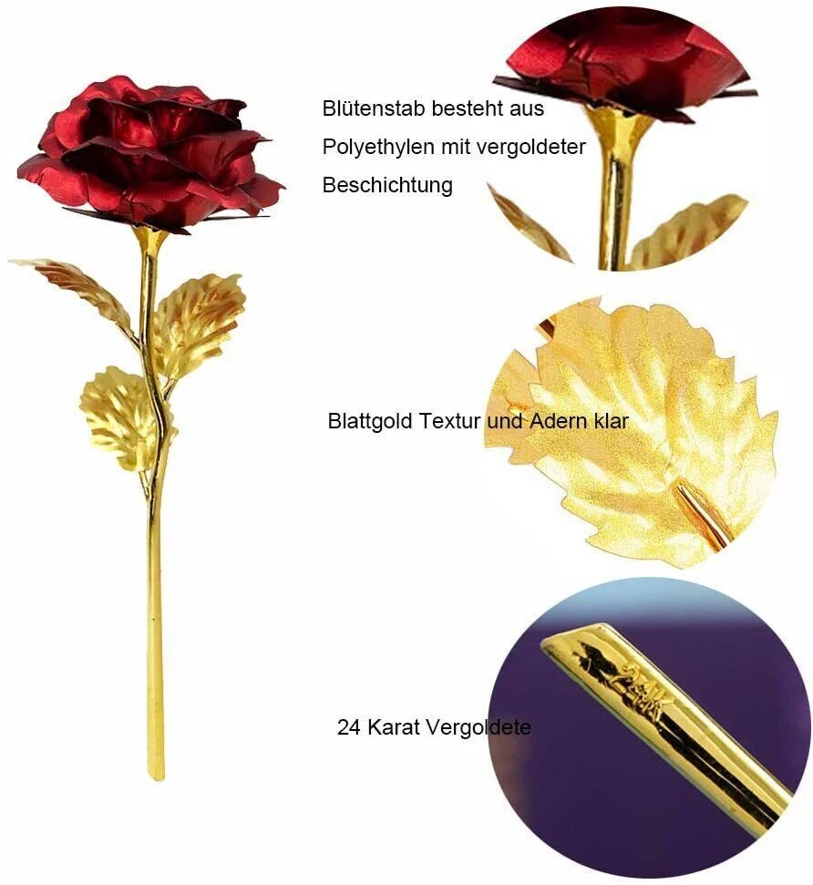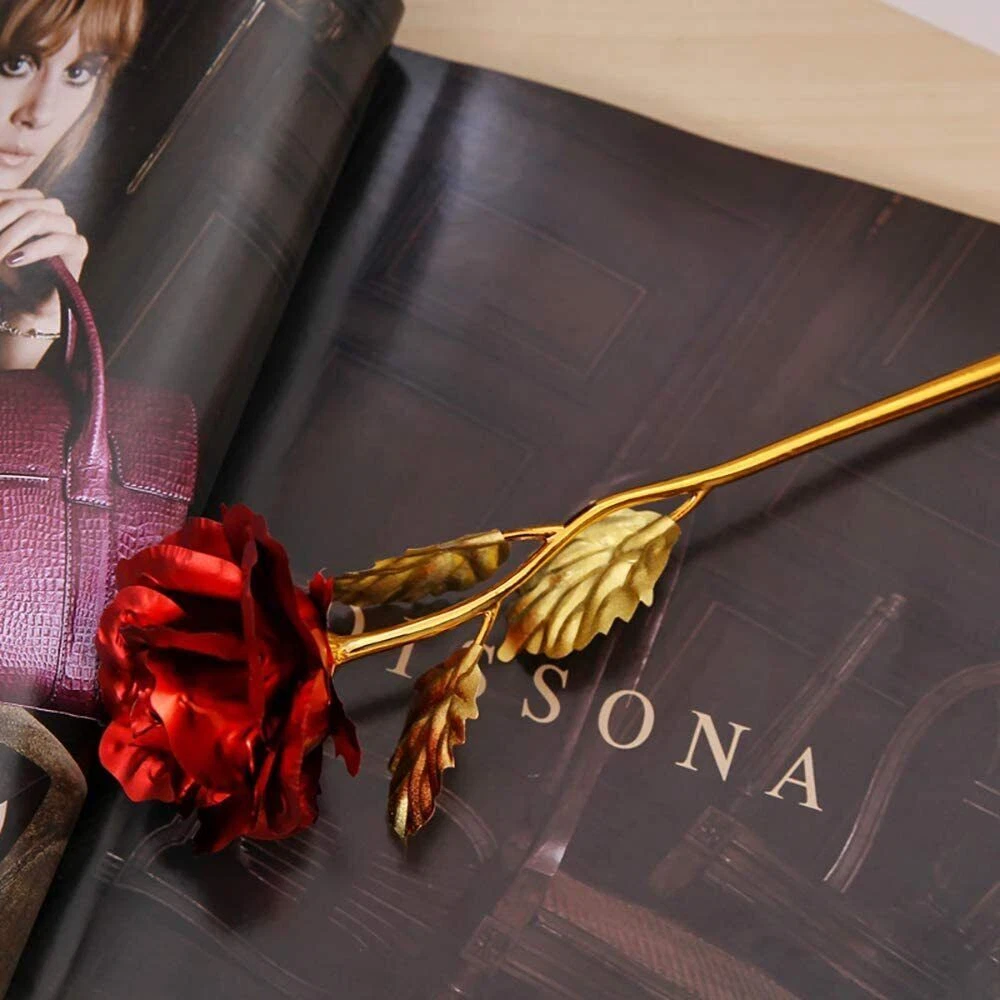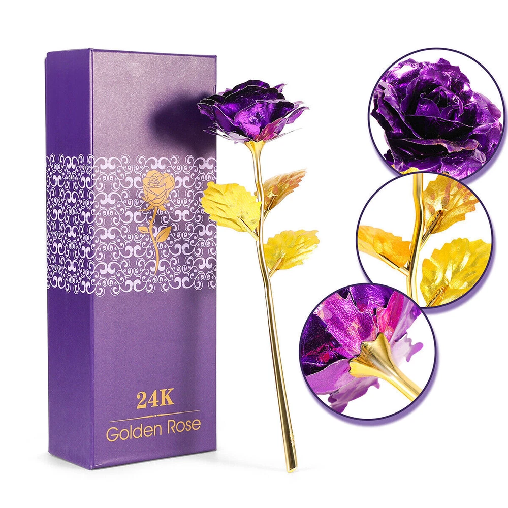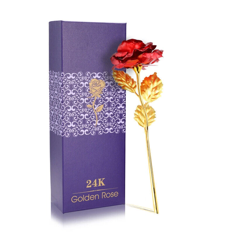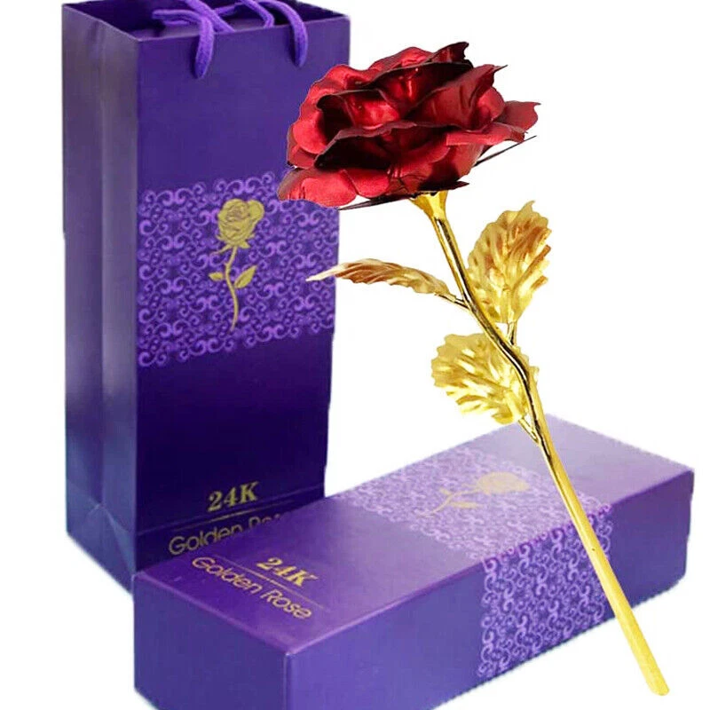 24k Dipped Plated Foil Rose Gold Long Term Flower Valentines Romantic Gift+Box