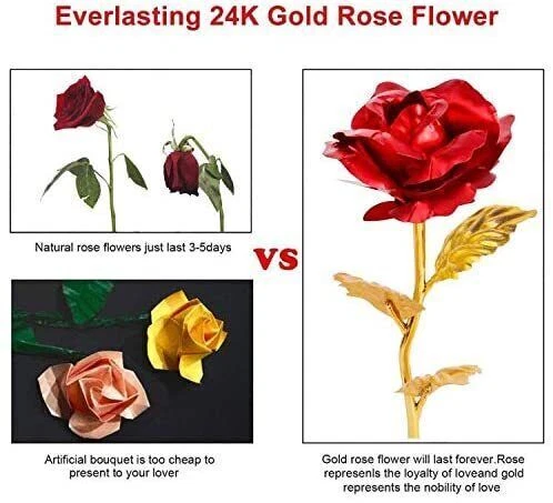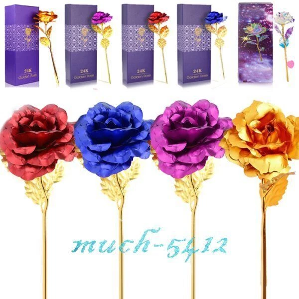 Foil Dipped Rose 24k Gold Rose Portable Gold Dipped Rose Artificial Rose Flower The item is a simple and elegant romantic long stem rose flower, which is mainly made of durable gold foil, never wither and never fade, and it is perfect to represent a longing for a pure and enduring love. Therefore, it is really a wonderful Valentine's gift or wedding favor to express the sincerest love to your lover 🌹Red Rose Whisper🌹 -- Love, Passion, Beautiful love. 🌹Golden Rose Whisper🌹-- Noble, Beautiful, Apologetic. 🌹Red and Golden Rose Whisper🌹-- Happiness. 🌹Blue Rose Whisper🌹-- Miracles, Pure, impossible. 🌹Purple Rose Whisper🌹-- Deep Love, Mysterious and Noble. #8902-8903-8904-3938 24K GOLD FOIL ROSE: 🌹24K Gold Dipped Rose Flower-- Petal and leaf are made of plastic with thin 24K gold foil plated, the flower rod is made of Polyethylene with gold plated. Come with a gift box and packaging, ideal present for any festival and someone you care about. 🌹Gold Dipped Rose In Full Bloom-- Outlast a bouquet of fresh blooms, never faded flower means everlasting love and friendship and family affection. 🌹Rose Whisper-- Roses are the universal language of love. The rose is a combination of love and beauty, the embodiment of the god of beauty and the blood of the god of love. 🌹Perfect Gift-- Come with a gift box, best gift for Valentine's Day, Mother's Day, Thanksgiving' Day, Birthday, Christmas, for lover and friends. Specification: Color: Gold/Red/Blue/Purple Material: Durable gold foil. Total length: approx. 25cm Leaf length: approx. 5cm Flower diameter: approx. 8cm Flower bud diameter: approx. 6cm Elegant romantic long stem rose flower, never wither and never fade. Perfect to represent a longing for a pure and enduring love. Especially suitable for you to express the sincerest love to your lover on Valentine's Day, Tanabata festival or wedding party. (note: the product internal skeleton is of polyethylene plastic material, which is very light, not metal) Package Includes: 1 x Dipped Foil Gold Plated Rose 1 x Gift Box #8901 ROSE WITH LED AND STAND: 1.100% brand new and high quality! 2. Valentine's Day, Mother's Day, the best gift for Christmas. 3. Rose has always been a symbol of beauty, love and appreciation. 4. 99% gold foil leaves, peduncle with polyethylene 24K gold plating. 5. Gift package, well and safe. 6. A perfect gift for your spouse wife girlfriend to show your sincere love. A best gift for your mom to say" Thank you" and "You're loved always." Great gifts for anniversary, birthday, Christmas, Valentine's Day, Mother's Day, wedding. 9. Weight:8.94g Note: Due to different lighting and shooting conditions, the color of the image may differ from the actual product. Please refer to the actual product. Package include: 1*rose 1*box 1*love base Payment Delivery details Terms of sales About us Contact us Payment Payments: Paypal, Google Pay, Visa, Master Card, Amerian Express, Discover. Delivery details All items are shipped from US warehouse located at NJ . We ship to your eBay or Paypal address. Please make sure your eBay or Paypal address is correct before you pay. Terms of sales Free return About us Pls contact our customer service firstly if have any problems , we will help to solve the issue, and could offer free return service for full refund or free replacement after confirming. You can buy from us with confidence Contact us If have any problems, please feel free to contact us.