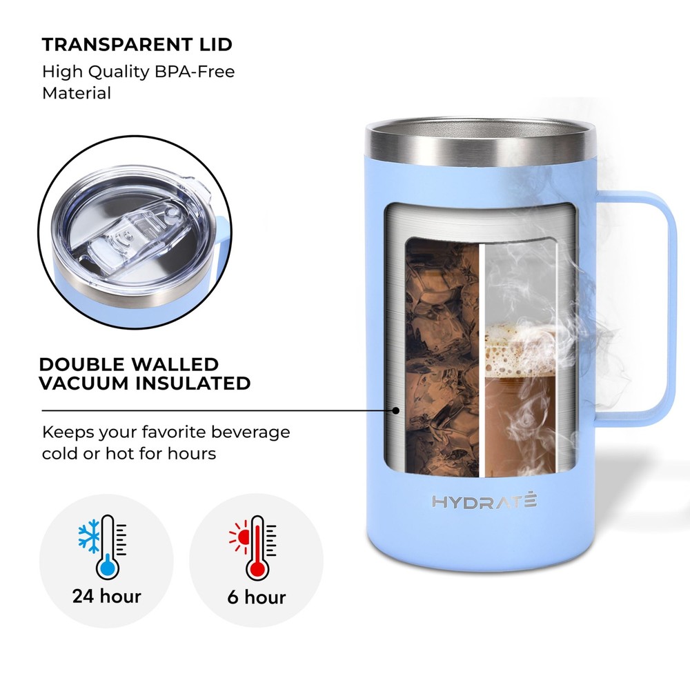 coffee travel mug cup 24oz small coffee mug travel travel mug with handle and lid christmas 24 oz camp mug insulated coffee mug in light blue aqua stainless travel coffee mug 24 oz yeti tumbler with handle insulated coffee mug with lid and handle 20 oz stanley cup 30 oz with handle green speck colorful mug and travel muf 14 ounce travel coffee mug 24 oz rambler coffee cup 24oz coffee mug travel pastel tumbler cute coffee mug travel light blue travel mug light blue 24 ounce coffee cup with handle light blue mug insulated coffee mug with lid fits car holder travel coffee mugs with handle pink insulated coffee mug pastel travel mug ello travel coffee mug 14 oz travel mug 16 oz travel coffee mug with handle yeti tumbler 24 oz 24oz yeti mug blue bottle mug 24 oz mug with handle slim tumbler with handle blue travel coffee mug thermal mugs with handles and lids light blue tumbler travel coffee mug with handle 16 oz contigo insulated coffee mug 20oz coffee travel mug 24 oz yeti mug 32 oz mug mug 24oz swell coffee mug 32oz coffee tumbler 24 oz travel coffee mug 14oz travel coffee mug yeti rambler 24 oz blue tumbler with handle coffee mug travel with handle coffee travel mug 24 oz 24oz mug 24oz coffee mug yeti rambler with handle yeti 24 oz mug 24oz coffee travel mug 24 oz yeti insulated mug with handle yeti mug 24 oz 20 oz tumbler handle yeti rambler 24 oz mug green tumbler with handle 24 oz mug yeti coffee cup with handle coffee mug 20 oz stainless steel mug with handle aloufea 16 oz travel coffee mug insulated mug with handle and lid 12 oz travel coffee mug stainless steel tumbler with handle coffee mug with handle 24 oz tumbler with handle yeti 24 oz insulated mugs with handle coffee travel mug with handle yeti 24 oz mug with handle 20oz tumbler with handle 24oz tumbler insulated coffee mug with handle yeti coffee mug with handle dishwasher safe coffee travel mug 24 oz coffee mug insulated cup with handle coffee mug with lid and handle thermal mug hydraflow 0 PREMIUM STAINLESS STEEL CONSTRUCTION: Our portable travel mug ensures a pure taste and zero flavor transfer, making it perfect for your favorite beverages like tea and coffee. TEMPERATURE RETENTION: Featuring double-wall vacuum insulation, this stainless steel travel mug keeps your drinks at the perfect temperature for hours, whether it's piping hot or refreshingly cold. LEAK-PROOF DESIGN: The closeable press-in lid is engineered to prevent leaks and spills, taming splashes and ensuring a no mess experience even on the go. COMFORTABLE AND STYLISH: With a soft touch exterior, our travel mug is not only functional but also comfortable to hold. Its sleek stainless steel finish adds a touch of elegance to your tumbler. REUSABLE AND SUSTAINABLE: Say goodbye to disposable bottles and cups. Our secure stainless steel travel mug is an eco-conscious choice for school, work, or any adventure.