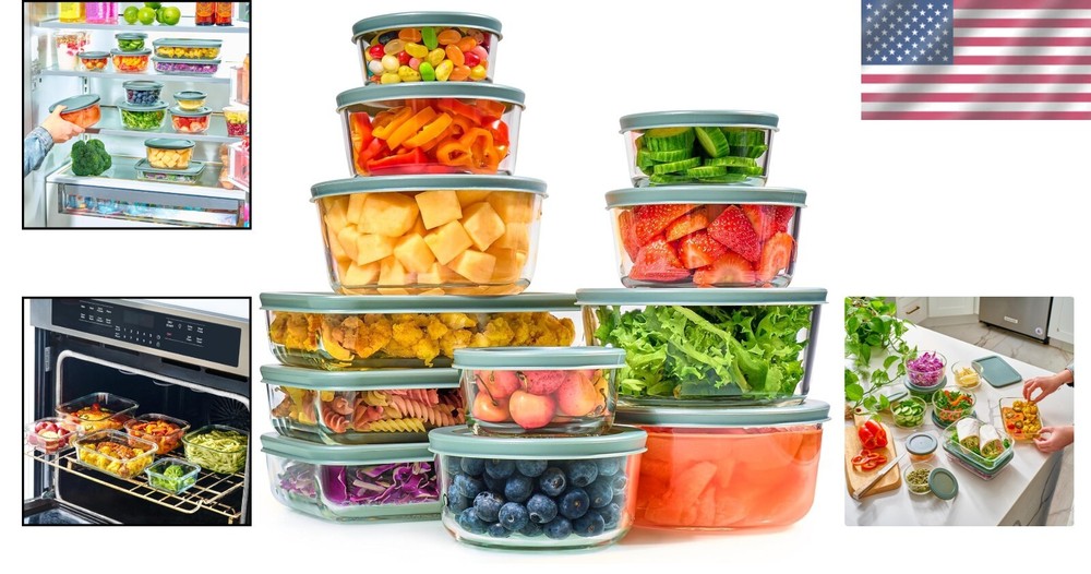 24pc Airtight BPA-Free Glass Meal Prep Containers – Versatile Storage Set
