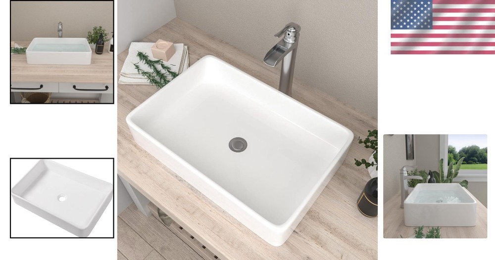24"x16" Polished Ceramic Vessel Sink - Stylish Addition to Any Bathroom ‹ › ‹ › ‹ › ‹ › ‹ › ‹ › ‹ › ‹ › 24" x 16" Polished Ceramic Vessel Sink The Stylish Addition to Any Bathroom Modern and Stylish This elegant 24-inch rectangular vessel sink elevates your bathroom with its contemporary silhouette. Seamlessly transitioning between form and function, it adds a touch of sophistication while enhancing your overall design aesthetic. Easy-to-Clean Crafted from thick glazed porcelain, this vessel sink resists scratches and stains, significantly lowering water absorption for a long-lasting pristine appearance. Its smooth, polished surface allows for effortless cleaning and maintenance, ensuring it remains as beautiful as the day you installed it. Long-lasting Durability Engineered for resilience, this sink is molded and fired at high temperatures, constructed from clay and minerals. Installation is a breeze; simply place it on your countertop and secure it with caulking. Specification Dimensions: 23.9" W x 15.8" D x 4.6" H Drain opening: Standard 1.75" Perfect for small bathrooms, powder rooms, or bars For a flawless fit, we recommend receiving the sink first before making your cutout. Promise Your satisfaction is our utmost priority. Should you encounter any quality issues, our dedicated team is here to support you every step of the way, ensuring a seamless experience. Why Choose Our Vessel Sink? Embrace effortless luxury with our Polished Ceramic Vessel Sink. This is not just a sink; it’s a statement piece designed for those who appreciate superior craftsmanship and a stylish aesthetic. Let your bathroom reflect your exquisite taste and transform your daily routines into moments of indulgence. Choose wisely, choose elegance, and elevate your home with our Vessel Sink today! Shipping Free & Fast Shipping - We offer free shipping to most of the USA with a normal delivery time of 3-7 days. However, due to the current situation, additional delivery time (up to 3 weeks) may be required for some items. Alternative Carriers - We may use alternative carriers (e.g. USPS, FedEx, UPS, etc.) to ensure your package arrives safely and on time. Due to the use of multiple carriers, we are unable to provide a tracking number automatically. Handling Time - Orders are processed and shipped within 1-2 business days of receiving cleared payment. Shipping Restrictions - Shipping to Alaska, Hawaii, Puerto Rico, Guam, and other US territories may incur shipping charges or delivery restrictions. Please contact us before ordering, or your order can be refunded/cancelled. State Restrictions - There may be restrictions based on your state of purchase. For example, certain items may not be shipped to California due to state regulations. Contact for Tracking Updates - If you require tracking updates or have any concerns about the delivery of your order, please feel free to contact us, and we will be happy to assist you. Return 30-Day Hassle-Free Returns - We want you to be completely satisfied with your purchase. If you are not, you can return the item within 30 days of receiving it for a full refund or exchange. Easy Return Process - To start a return, simply contact us and we will provide you with a prepaid return shipping label and detailed instructions. Restocking Fee - There are no restocking fees for returns. However, the buyer is responsible for return shipping costs if the return is not due to a seller's error. Refund Processing Time - Refunds will be processed within 5 business days of receiving the returned item in its condition. Payment We accept all major credit cards, PayPal, and Apple Pay for your convenience. Your payment information is secure and encrypted to ensure a safe and seamless transaction. Please complete your payment within 3 days of purchase to avoid any delays in shipping. Feedback Your feedback is extremely important to us. We strive to provide the best products and customer service possible. If you are satisfied with your purchase, please take a moment to leave us a positive review. If you have any concerns or issues with your order, please contact us before leaving negative feedback. We are committed to resolving any problems and ensuring your satisfaction. Contact Us If you have any questions or concerns, please feel free to out to our customer support team. You can contact us through the eBay messaging system. We are available Monday to Friday, 9:00 am to 5:00 pm EST, and we will do our best to respond to your inquiry within 24 hours. Buy it now and enjoy a pleasant shopping experience! Unit Quantity: 33 Room: Any Room,Bathroom Mounting: Surface Mounted Material: Ceramic,Porcelain Items Included: Basin Waste Features: Easy-to-clean,Long-lasting durability Type: Vessel Item Width: Bathroom Sink Item Height: Bathroom Sink Item Length: Bathroom Sink Color: White Shape: Rectangular Bowl Shape: Standard Style: Modern Number of Faucet Holes: No Hole Finish: Polished Faucet Hole Spacing: No specified spacing Bowl Depth: Less than 10 cm