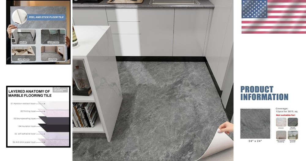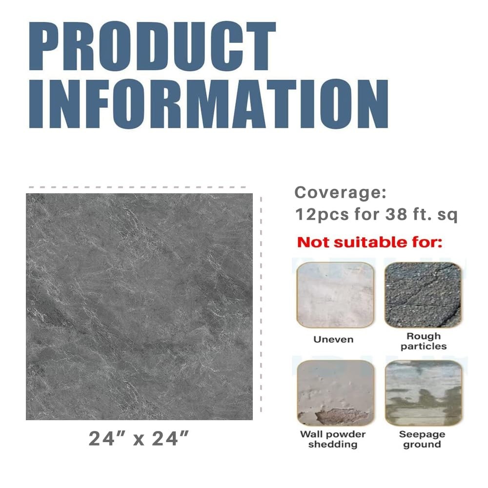 Easy Install Marble Pattern Floor Tiles - 12 Large 24"x24" Tiles Covers 46 Sq Ft ‹ › ‹ › ‹ › ‹ › ‹ › ‹ › ‹ › ‹ › ‹ › Easy Install Marble Pattern Floor Tiles Size: 12 Large 24"x24" Tiles Covering 46 Sq Ft Features: Easy Installation & Modern Aesthetics: Larger 24"x24" peel and stick tiles simplify alignment and reduce installation time, perfect for spacious living rooms or open areas. The seamless marble design adds timeless elegance to your floor. Premium Durability & Protection: Ultra-thick 1.2mm (0.05") vinyl resists bending, tearing, and edge damage during shipping. Waterproof, fire-resistant, and slip-proof for worry-free use in kitchens, bathrooms, or high-traffic zones. No Messy Glue, Hassle-Free Application: Self-adhesive backing guarantees quick stick-and-press installation. Removable without residue, ideal for rentals or temporary upgrades. Stylish Color Options & Versatile Use: Available in elegant Light Beige or chic Gray to match any decor. Perfect for floors, walls, countertops, or creative DIY projects. Cost-Effective Coverage: Each pack includes 12 large tiles covering a total of 46 sq ft (4.32 m²), saving both time and material. Durable packaging protects corners for flawless delivery. Benefits: Effortless, mess-free installation for immediate transformation of your space. Timeless aesthetics elevate any living space with a luxurious touch. Enhancements that last, with premium materials offering durability and protection. Perfect for high-traffic areas without sacrificing style or safety. Removable nature allows for easy updates to your interior without damage. Why Choose Our Easy Install Marble Pattern Floor Tiles? Create a stunning new look in your home with our Easy Install Marble Pattern Floor Tiles that merge elegance and practicality. Experience the perfect blend of modern design and premium durability, making it the ideal choice for any room. Whether you're enhancing your kitchen, bathroom, or living room, these tiles deliver a sophisticated aesthetic while ensuring long-lasting performance in even the busiest areas. Transform your space effortlessly and stylishly – order your Easy Install Marble Pattern Floor Tiles today! Shipping Free & Fast Shipping - We offer free shipping to most of the USA with a normal delivery time of 3-10 businessdays. However, due to various situations, additional delivery time (up to 3 weeks) may be required for some items. Alternative Carriers - We may use alternative carriers (e.g. USPS, FedEx, UPS, etc.) to ensure your package arrives safely and on time. Due to the use of multiple carriers, we are unable to provide a tracking number automatically. Handling Time - Orders are processed and shipped within 1-5 business days of receiving cleared payment. Shipping Restrictions - Shipping to Alaska, Hawaii, Puerto Rico, Guam, and other US territories may incur shipping charges or delivery restrictions. Please contact us before ordering, or your order can be refunded/cancelled. State Restrictions - There may be restrictions based on your state of purchase. For example, certain items may not be shipped to California due to state regulations. Contact for Tracking Updates - If you require tracking updates or have any concerns about the delivery of your order, please feel free to contact us, and we will be happy to assist you. Return Please see our ebay return policy. We do not accept return on most products. This is to avoid customers mis-using ebay returns. All sales are final. Please be sure to check the return policy listed at the top of the listing. In rare cases, we may accept returns, if the buyer pays both ways shipping and 20% restocking fee. If you are un-sure of return policy of a particular item, please ask before buying. Payment We accept all major credit cards, PayPal, and Apple Pay for your convenience. Your payment information is secure and encrypted to ensure a safe and seamless transaction. Please complete your payment within 3 days of purchase to avoid any delays in shipping. Feedback Your feedback is extremely important to us. We strive to provide the best products and customer service possible. If you are satisfied with your purchase, please take a moment to leave us a positive review. If you have any concerns or issues with your order, please contact us before leaving negative feedback. We are committed to resolving any problems and ensuring your satisfaction. Contact Us If you have any questions or concerns, please feel free to reach out to our customer support team. You can contact us through the eBay messaging system. We are available Monday to Friday, 9:00 am to 5:00 pm EST, and we will do our best to respond to your inquiry within 24 hours. Buy it now and enjoy a pleasant shopping experience! UPC: Not Set Series: Marble Pattern Unit Quantity: 12 Material: Rubber,Vinyl,PVC Room: Bathroom,Kitchen,Living Room,Open Areas Features: Waterproof,Water Resistant,Scratch-Resistant,Slip-Proof,Fire-Resistant Installation: Peel-and-Stick Suitable For: Floor,Indoor,Wall,Countertop Brand: Unbranded Color: Gray Type: Floor Tile Style: Modern Finish: Glossy Item Width: Not Set Item Length: Not Set Item Weight: 17.35 lb Tile Size: 24 x 24 in Item Thickness: 1.2 mm MPN: Not Set Number in Pack: 12 Pattern: Not Set Tile Shape: Rectangle Tile Look: Not Set Tile Surface Texture: Smooth Coverage per Case: 46 ft² Edge Design: Straight Edge Manufacturer Warranty: Not Set Grade: Grade 1 PEI Rating: 0 - No Foot Traffic Break Strength: 90 kg DCOF Rating: 0.42-0.44 Model: Not Set