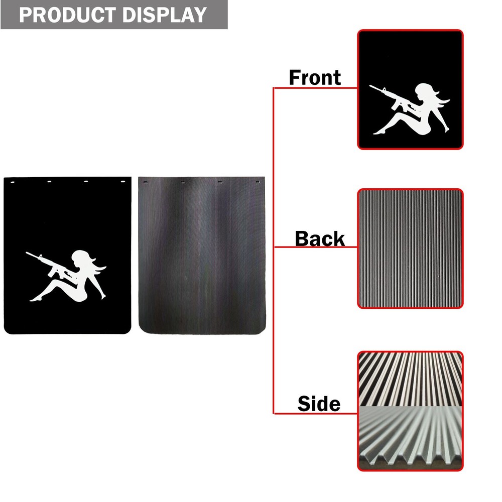 Upgrade your trailer truck's protection with these robust 24"x30" Semi Trucks Mud Flaps. Made from durable plastic and featuring a sleek black painted finish, they're designed to withstand the rigors of the road while adding a touch of style to your vehicle. Each mud flap comes with a bolt-on attachment type for secure and easy installation on the rear of your truck, ensuring a universal fitment for a wide range of models. These heavy-duty mudguards are not only car wash safe but also washable, making maintenance a breeze. Their flat design measures a mere 0.2 inches in height, providing under-clearance for most trucks without compromising on protection. Performance parts like these mud flaps enhance your vehicle's functionality, keeping it pristine and pristine. Package Included: 1 PAIR Mud Flaps. Size: 24''x30"