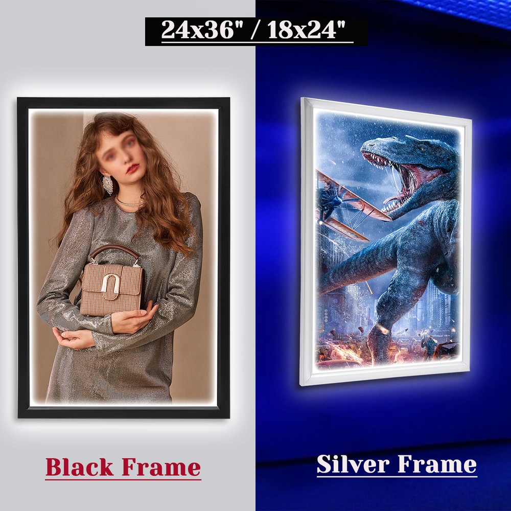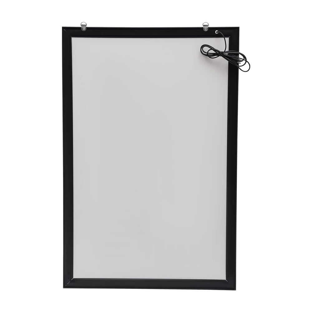 Welcome LED Poster Movie Frame Backlit Light Box Advertising Sign Display Multiple Size 24" x 36" Description: Our photo light box is made of a premium aluminum alloy and acrylic. It’s sturdy and durable. With two sturdy hooks on the back, you can easily hang this product on the wall.LED light source can illuminate your posters and advertisements. This product doesn't need assembly and you can use it directly after plugging it in. The LED light box is suitable for home decoration and commercial areas, such as chain stores, supermarkets, stations, large-scale exhibition projects, etc. Package Included 1* LED Poster Frame Specification Color: Black/Silver Material: Acrylic, Aluminium Alloy Shape: Rectangular Style: Modern Plug Voltage: 110V Power: 20W Power Type: Plug-in Mounting Type: Wall Mount Lumen: 2000lux CRI: >85 Color Temperatur: 9000-10000K Service Time: About 80000h Efficiency: E Plug: American Standard Light Source: LED (Included) Net Weight: 3.5kg/7.7lbs Gross Weight: 4kg/8.8lbs Surface Treatment: Sandblasting Process, Baking Paint Process, Oxidation Process, Cutting Process Product Size: 60.96*3*91.4cm/24*1.2*36inch Package Size: 98*63*4cm/38*24*1inch Key Features Soft Light: This product uses a uniform nano light guide plate and side light guide technology, making the light soft and not harsh to protect your eyes. The LED light has high brightness, fast heat dissipation, which can provide stable performance, extend the service life of the product, and save electricity. Narrow Edge Design: The frame is spliced at 45° and has a width of 1.5 inch, which can maximize the visibility of the visual area (24*36 inches) and play a promotional and display role. Thoughtful Design: The built-in stainless steel shrapnel and the front-opening frame design allow you to gently flip out to open the panel, making it easy to replace the poster Multiple Uses: It can display posters for cinemas, shopping malls, restaurants, etc. to attract customers' attention or be used as a signs board to guide the way for passersby. You can also put it at home for decoration or use it as a display board for art galleries and museums. Details Study Hooks: With two sturdy hooks on the back, you can easily hang this product on the wall. Strong and Durable: The high-quality acrylic panel is dustproof, moisture-proof, and can resist impact and deformation. Meanwhile, the aluminum alloy frame adopts a sandblasting process, baking paint process, and an oxidation process, so it can resist wear, corrosion, rust, and heat. Protective Packaging: The four corners of the product are wrapped with sponges to resist compression and falls, which can prevent product damage in transit. Ready to Use: This product doesn't need assembly and you can use it directly after plugging it in. Application It is suitable for exhibitions, advertisements, signs, and decorations in cinemas, event promotions, retail stores, restaurants, art displays, trade shows, banks, hospitals, libraries, counters, offices, companies, menu boards, jewelry stores, hotels, studios, etc. Installation 1.Place the poster frame on the wall, and mark the location of the nail hole with a pen. 2.Drill 2/4 holes at the marked position and punch nails(not included). 3.Remove the rear protective film and hang the frame on the corresponding nail. 4.Remove the front protective film. Notes 1.The product has protective films on both sides, please tear them off before use. 2.Please allow the slight color difference caused by the shooting light and 1-3cm error due to manual measurement, and make sure you do not mind before ordering. Payment Delivery details Terms of sales About us Contact us Payment We accept ebay payment 。 Fees such as import duties, taxes are not included in the item price or shipping costs. These charges are the buyer's responsibility. Delivery details Shipping: 2-9 working days to: USA Terms of sales We maintain high standards of excellence and strive for hundred percent customer satisfaction. Feedback is very important to us. We hope that you contact us immediately before you give neutral or negative feedback, so that we can address your concerns. It is impossible to address issues if we do not know about them! About us Your satis faction is our ultimate goal. We work hard to earn your trust and future business. Our certified technicians have tested each item before shipping. The unit comes with 1 year limited warranty on all manufacturing defects. a) If you receive a defective item, you may return it or ask for a discount. Please contact us within 14 days after you receive the package. b) What you returned must be intact and in its original packaging as re? u. Customer is responsible for shipping costs of the returned item. c) We will cover the cost of shipping back t with the shipping rate indicated in the registration page. We will send you a new unit or refund the full payment you paid. Thank you. Contact us Business Hour Business Hour: Monday To Friday: 8:30 AM to 5:00 PM (Beijing China time) Due to time zones, our reply to your questions may not be immediately. But within above working time, we will reply your email within 24 hours. If it's non-workdays, please kindly be patient and wait till Monday. Please contact us with ebay message. Please feel free to contact us if you have any questions. Monday To Friday: 8:30 AM to 5:00 PM (Beijing China time) Due to time zones, our reply to your questions may not be immediately. But within above working time, we will reply your email within 24 hours. If it's non-workdays, please kindly be patient and wait till Monday. Please contact us with ebay message. Please feel free to contact us if you have any questions.