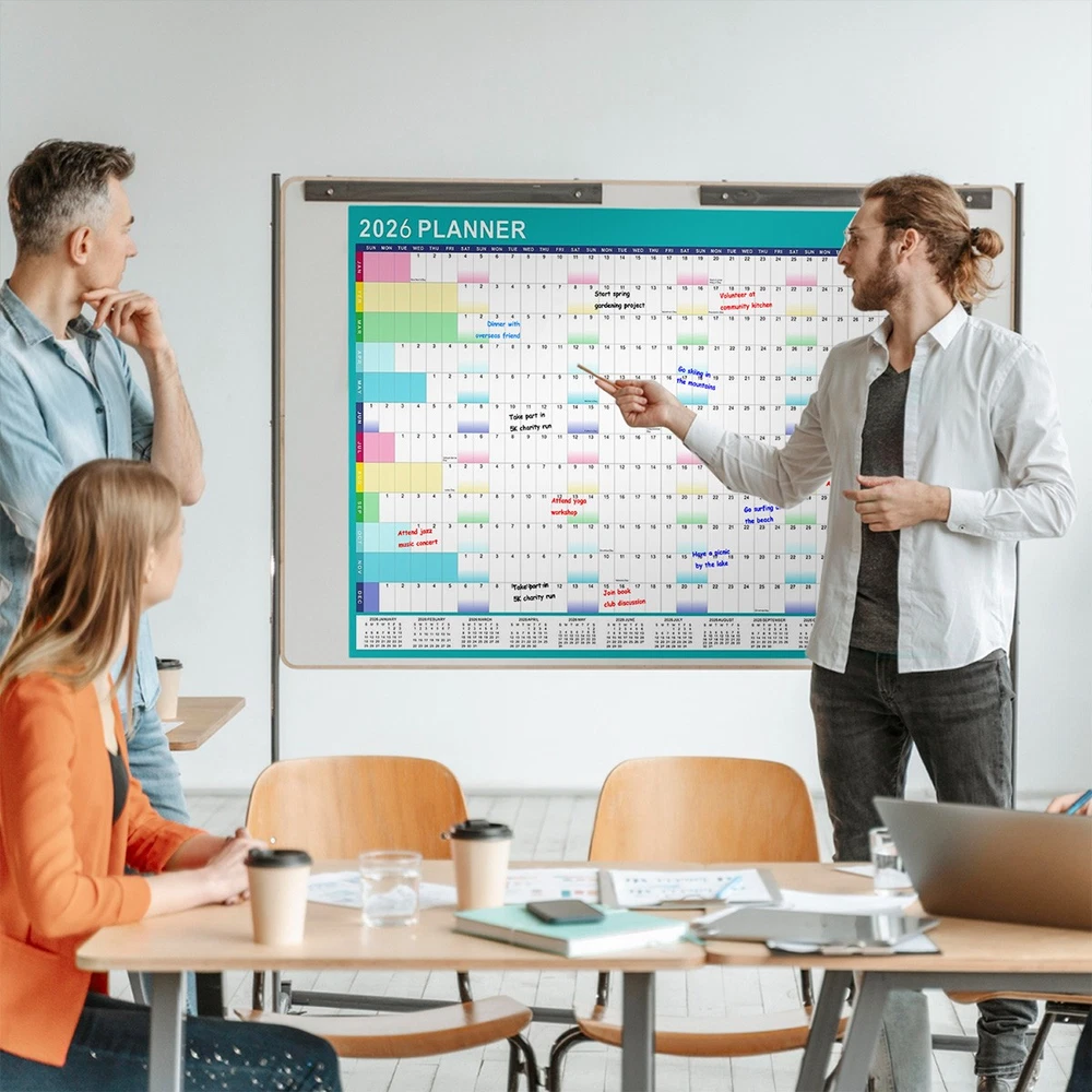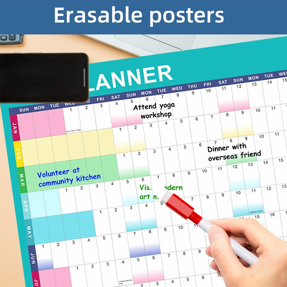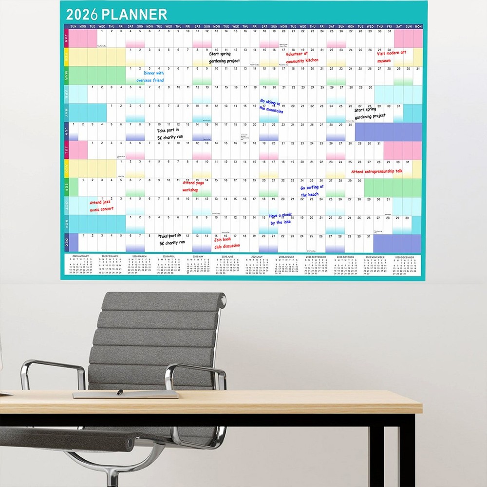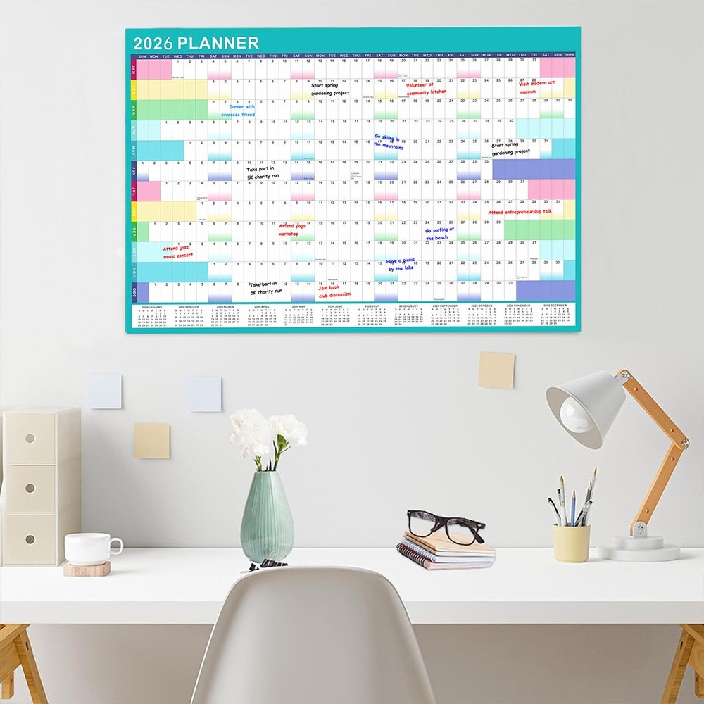 About this item 2026 Yearly Wall Calendar - This yearly wall calendar 2026 covers 12 months from Jan 2026 - Dec 2026. You can list your plans clearly, and manage your life efficiently. The size of this 2026 yearly wall calendar is 23.6" x 35.4", which is available for all your plans. EASY TO USE - you can ch eck your schedule clearly and effic iently on this large wall calendar 2026 without turning pages. Every daily block which is ample enough for you to write down your daily plans, and suitable for you to arrange your goals, appointments, study, work, schedule, and special days. MULTIPLE USES - This yearly wall calendar which can be folded and opened flexibly that can save your space and carry easily. The thick paper of this yearly wall calendar 2026 is used to protect the wall calendar from ink leakage. COLORFUL DESIGN - each month have marked out at frame in different colors. Different colors make it easy to find out the day of searching. GOOD AFTER-SALE SERVICE - we are responsible for our products. And we are committed to improve your product experience. If you are not satisfied in our products or our products have any defects, we will solve your problem immediately and we will provide you satisfactory after-sale service. Specification: Material: thick paper Size : 23.6" x 35.4" Packing List: 1Pcs 2026 Wall Yearly Calenda 4 Pcs Erasable Marker 2Pcs double-sided polka dot Sticker Note: Due to different lighting and screen settings, the item color may be slightly different from the picture. Due to different manual measurements, please allow a 1-2cm difference in size.