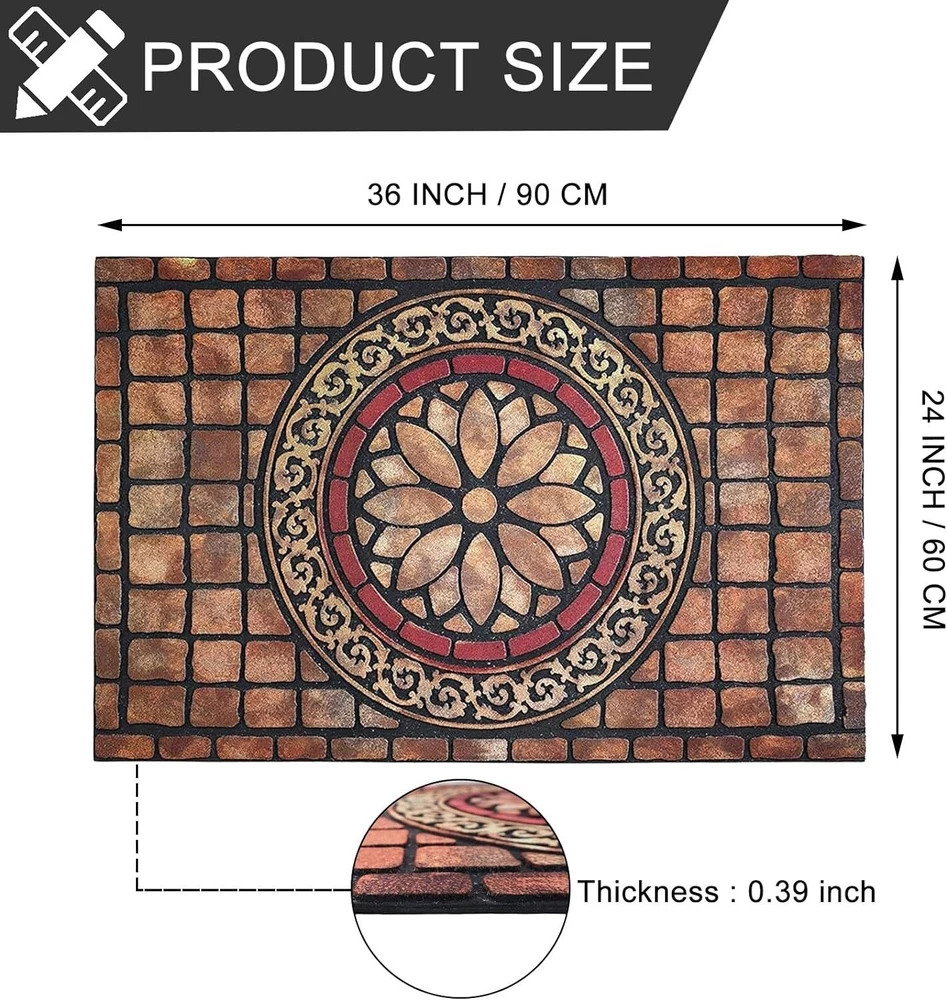 Product Dimensions: 36"l X 24"w Min. Required Door Width: 30 Inches Color: Brick-Red Style: Outdoor & Indoor Personalized: No Material: Rubber, Flocked Fiber Department: Adults Is Autographed: No Indoor/outdoor Usage: Outdoor gtin13: Does not apply Construction Type: Handmade Features: Non-Slip, Easy to Clean, Stain Resistant, Water Resistant Pile Type: Low Size: 24 x 36 in Back Material Type: Rubber Item Weight: 3 Kilograms Number Of Pieces: 1 Room: Any Room, Garage, Entryway, Hallway, Mudroom, Patio, Office Item Thickness: 0.39 Inches Weave: Handmade Type: Doormat Rug Form Type: Doormat Pattern: Letter Print Personalize: No Shape: Rectangle Theme: Winter UPC: Does not apply Brand: Unbranded Pile Height: Low Room Type: Hallway Age Range (description): Adult Era: 21st Century (2000-Now) Is Stain Resistant: Yes Special Feature: Non Slip