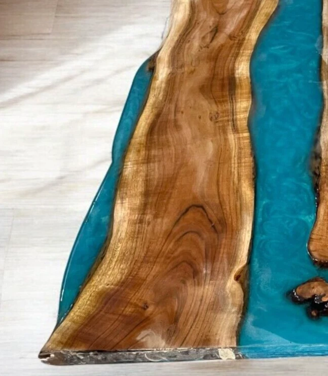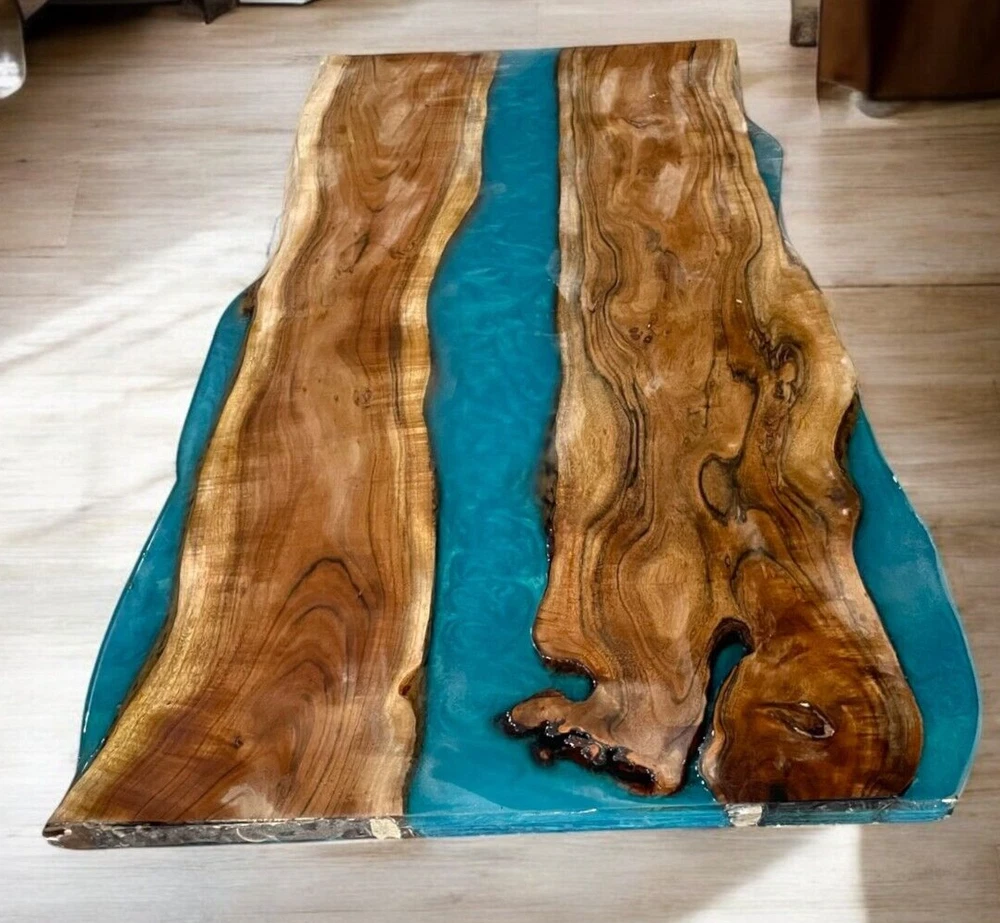 Table Top Size: 48"x24" Inches Our epoxy tables are custom-made, and we strive to use the same type of wood as depicted in our advertising pictures. However, it is not always possible to find an exact match, which may result in slight variations in the epoxy color and wood grain pattern. It's important to keep in mind that the table you receive may not be an exact replica of the advertising picture. We ensure that our clients are informed of every step of the process, from the selection of the wood to the final finish of the table. We keep our clients up-to-date throughout the process to ensure transparency and avoid any misunderstandings. Additionally, our price includes air delivery right to your doorstep via DHL/Fedex / UPS and insurance protection. Please note that you may be responsible for paying any applicable tax and duty on delivery. If you have any concerns or doubts, we highly recommend addressing them before making a purchase. Clearing any doubts beforehand will help avoid any issues and ensure a smooth buying process. It's important to note that any accessories depicted in the advertising images, such as knives, chairs, or lighting, are not included with the product and are only used for photography purposes. Additionally, please keep in mind that the price of the product does not include any type of legs. If you would like legs included, we can provide them for an additional cost. We recommend addressing any questions or concerns before making a purchase to avoid any misunderstandings.