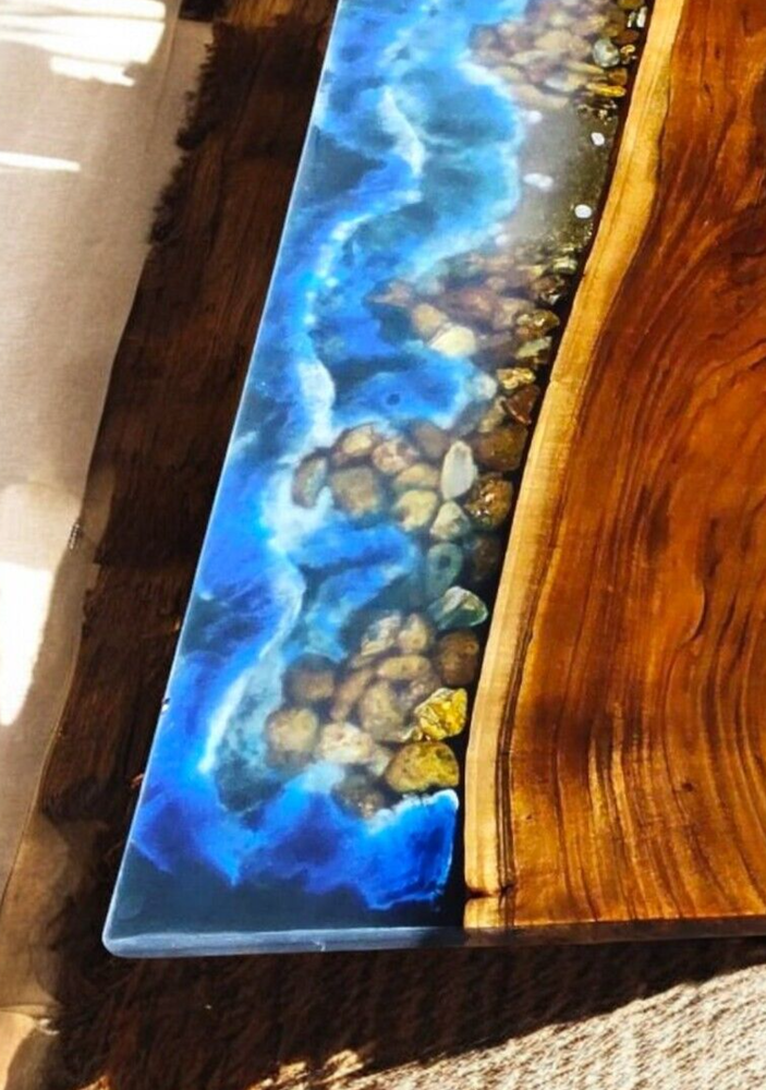 Table Top Size: 48"x24" Inches Our epoxy tables are custom-made, and we strive to use the same type of wood as depicted in our advertising pictures. However, it is not always possible to find an exact match, which may result in slight variations in the epoxy color and wood grain pattern. It's important to keep in mind that the table you receive may not be an exact replica of the advertising picture. We ensure that our clients are informed of every step of the process, from the selection of the wood to the final finish of the table. We keep our clients up-to-date throughout the process to ensure transparency and avoid any misunderstandings. Additionally, our price includes air delivery right to your doorstep via DHL/Fedex/UPS and insurance protection. Please note that you may be responsible for paying any applicable tax and duty on delivery. If you have any concerns or doubts, we highly recommend addressing them before making a purchase. Clearing any doubts beforehand will help avoid any issues and ensure a smooth buying process. It's important to note that any accessories depicted in the advertising images, such as knives, chairs, or lighting, are not included with the product and are only used for photography purposes. Additionally, please keep in mind that the price of the product does not include any type of legs. If you would like legs included, we can provide them for an additional cost. We recommend addressing any questions or concerns before making a purchase to avoid any misunderstandings.