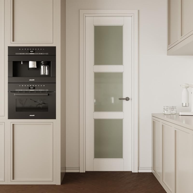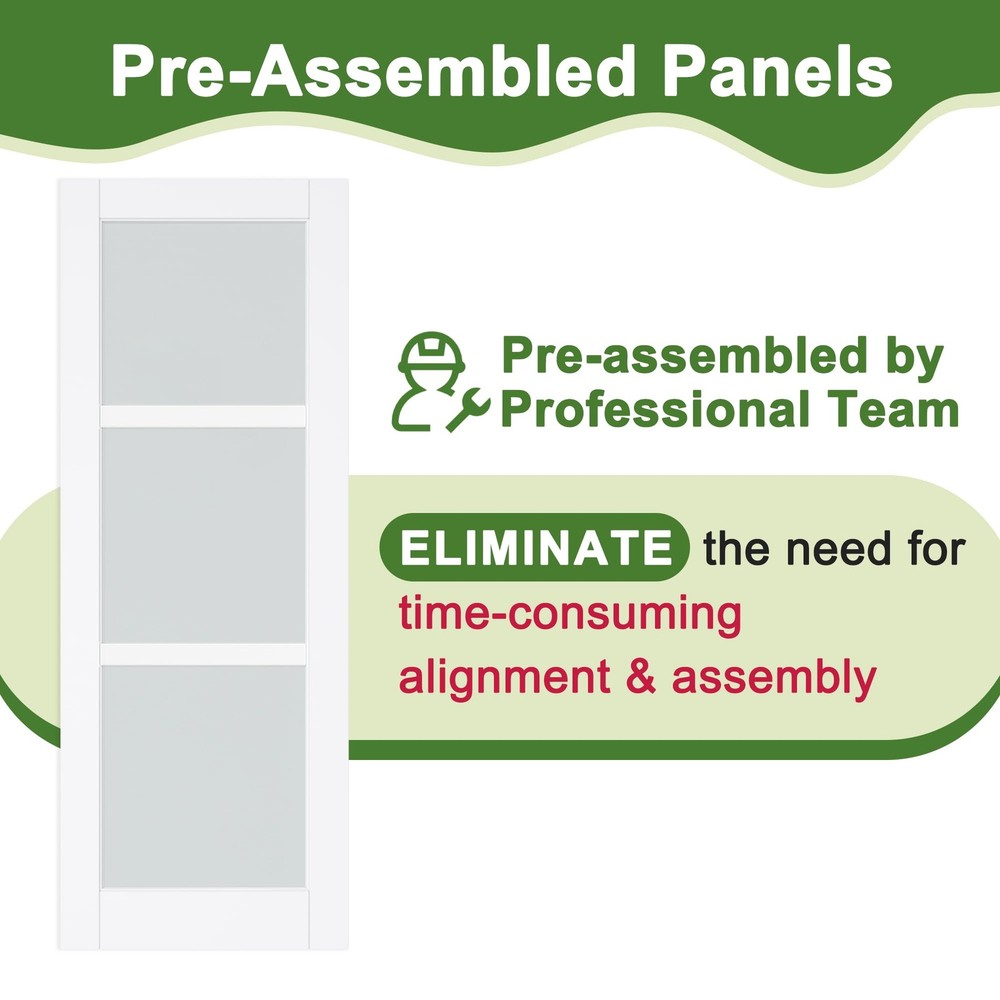 24x80 Frosted Glass 3-Panel Shaker Interior Door Slab Pre-Built Panel Design
