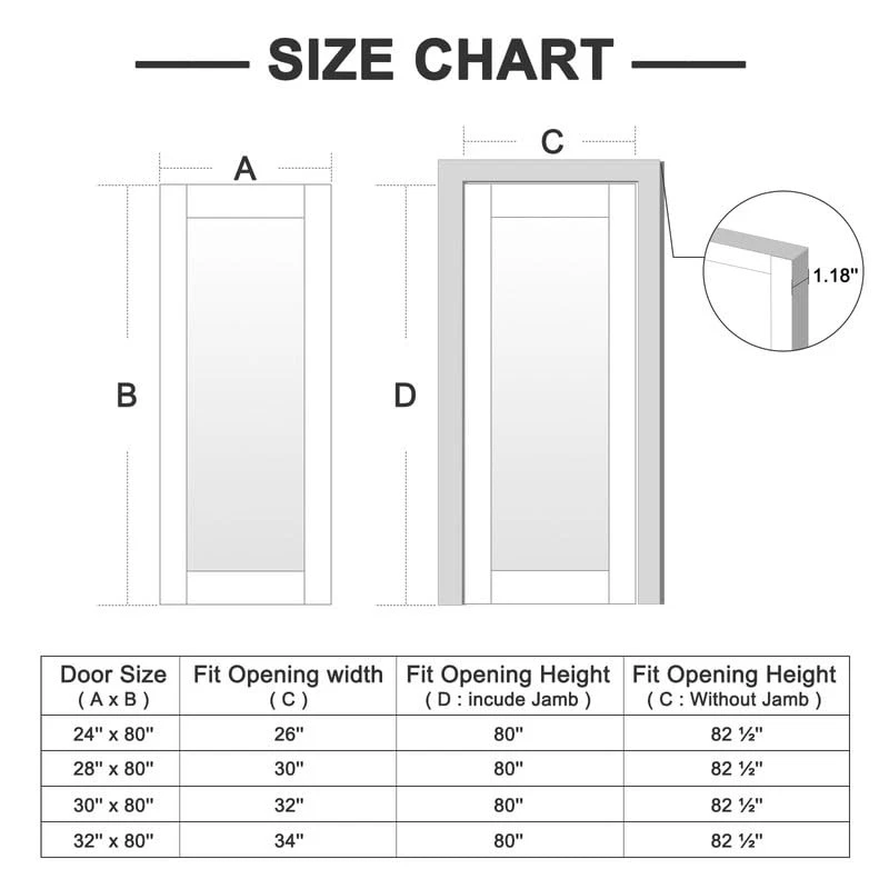 Item Package Quantity: 1 Package Dimensions LxWxH: 82.0x34.0x2.0 Inches Brand: Does not apply Pattern: Glass Color: 80In High gtin13: Does not apply UPC: Does not apply Material: Solid Core Carb P2 Certified Safety Mdf Wood Type: Does not apply Size: 24" X 80" Style: Modern Weight: 45.0 Pounds
