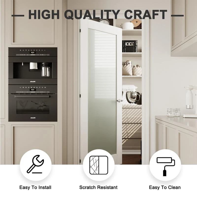 1. This frosted glass door is a fantastic upgrade! The solid MDF core feels sturdy, and the tempered glass adds a modern touch while providing privacy. It blocks noise surprisingly well and stays resistant to moisture and warping. The smooth finish looks sleek, and though it doesnโ€™t come pre-drilled, installation was straightforward. Great value for a premium, energy-efficient door!