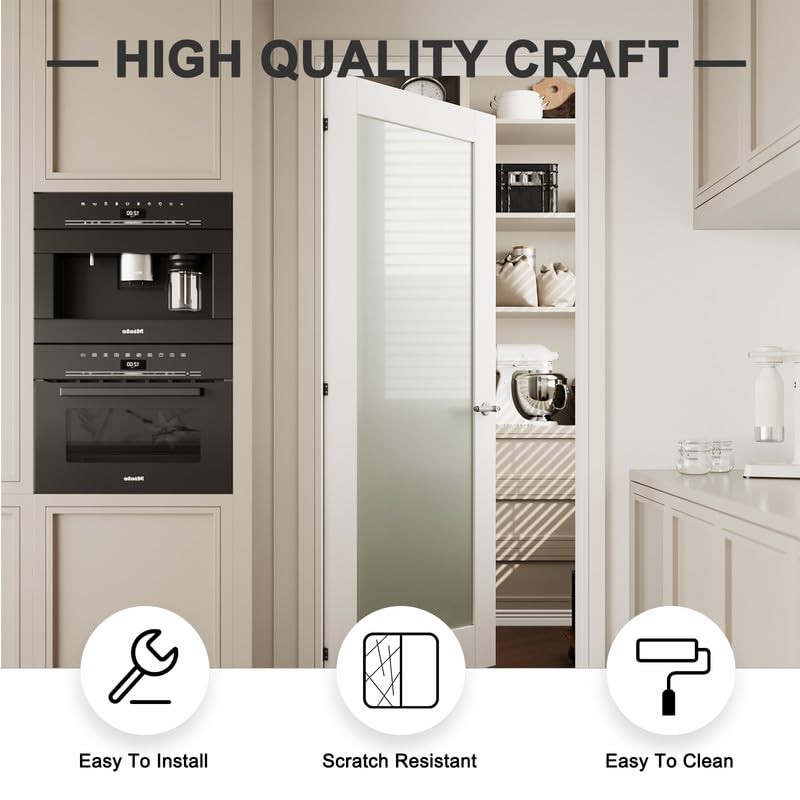 ใ๐๐ซ๐๐ฆ๐ข๐ฎ๐ฆ ๐๐๐ญ๐๐ซ๐ข๐๐ฅ๐ฌ & ๐๐จ๐ฅ๐ข๐ ๐๐จ๐ซ๐ ๐๐จ๐ง๐ฌ๐ญ๐ซ๐ฎ๐๐ญ๐ข๐จ๐งใCrafted from solid CARB P2 certified Pine Wood, 4mm thicken tempered frosted glass, this eco-friendly door panel is durable and resistant to splitting and warping. Its sleek surface enhances moisture resistance, while the solid core construction offers 70% more sound insulation than hollow core options. This sturdy design also improves energy efficiency, reducing heating and cooling expenses. ใ๐๐ฆ๐ฉ๐จ๐ซ๐ญ๐๐ง๐ญ ๐๐ง๐๐จ: ๐๐ข๐ณ๐ & ๐๐จ ๐๐ซ๐-๐๐ซ๐ข๐ฅ๐ฅ๐๐ ๐๐จ๐ฅ๐๐ฌ ๐๐๐ฌ๐ข๐ ๐งใDimensions: Width - 24", Height - 80", Thickness - 1-3/8". Fits door openings of 24-1/4" x 80-1/2". The door can be trimmed by 0.5" on all sides. It comes without pre-drilled holes, allowing flexible handle placement for left or right opening, or use as a pocket, closet, bathroom, sliding, or barn door. Note: The door opening should be slightly larger than the door size. ใ๐๐ซ๐-๐๐ฌ๐ฌ๐๐ฆ๐๐ฅ๐๐ ๐๐๐ง๐๐ฅ๏ผ๐๐จ ๐๐จ๐ซ๐ซ๐ข๐๐ฌ ๐๐๐จ๐ฎ๐ญ ๐๐ซ๐จ๐๐ฎ๐๐ญ๐ข๐จ๐ง ๐จ๐ซ ๐๐ฌ๐ฌ๐๐ฆ๐๐ฅ๐ฒ ๐๐ซ๐ซ๐จ๐ซ๐ฌใPlease note that this product includes only a complete, high-quality water-resistant solid MDF door panel. Pre-drill Holes, Hardware kit, door frame, hinges, handles etc. are not included. The door panel is fully assembled, no need to assemble it again. ใ๐๐๐ซ๐ฌ๐๐ญ๐ข๐ฅ๐ ๐๐๐ข๐ง๐ญ๐ข๐ง๐ ๐๐ฉ๐ญ๐ข๐จ๐ง๐ฌ & ๐๐ข๐ฆ๐ฉ๐ฅ๐ ๐๐๐ข๐ง๐ญ๐๐ง๐๐ง๐๐ ๐๐ง๐ ๐๐ง๐ฌ๐ญ๐๐ฅ๐ฅ๐๐ญ๐ข๐จ๐งใThe paint-ready surface is prepared for immediate use, eliminating the need for additional painting or staining. It can also be painted or stained, featuring a surface that is tougher than standard primed finishes, making it scratch-resistantlessly to your design preferences. ใ๐๐๐๐๐๐ ๐๐จ๐ฉ ๐๐๐ซ๐ฏ๐ข๐๐ใWe are committed to providing you with quality products and services. If the product has any quality problems or missing parts, or you have any installation problems, please feel free to contact us, we will try our best to solve it for you.