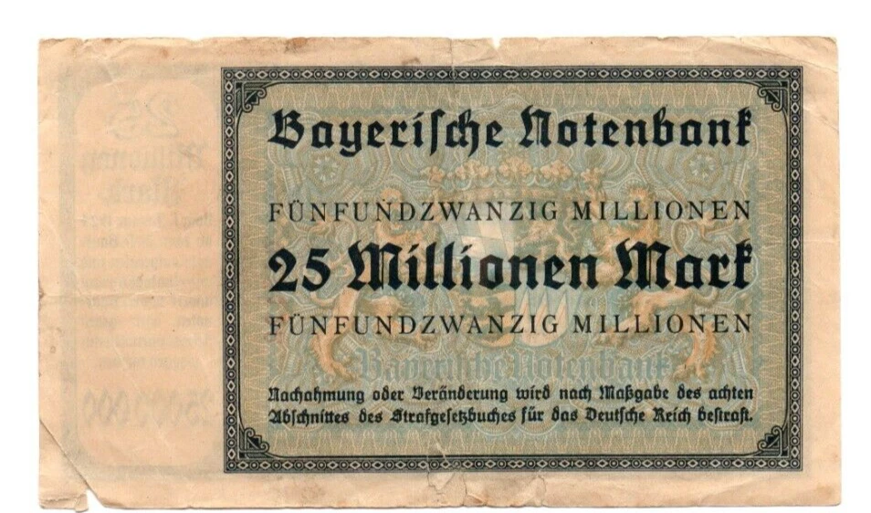 25 000 000 MARK VG EMERGENCY ISSUED BANKNOTE FROM GERMANY/MÜNCHEN 1923