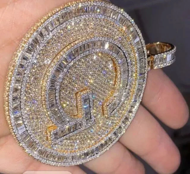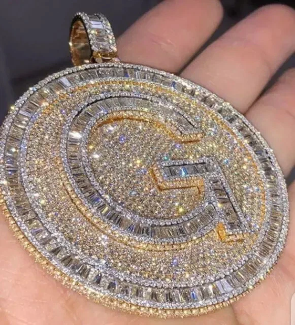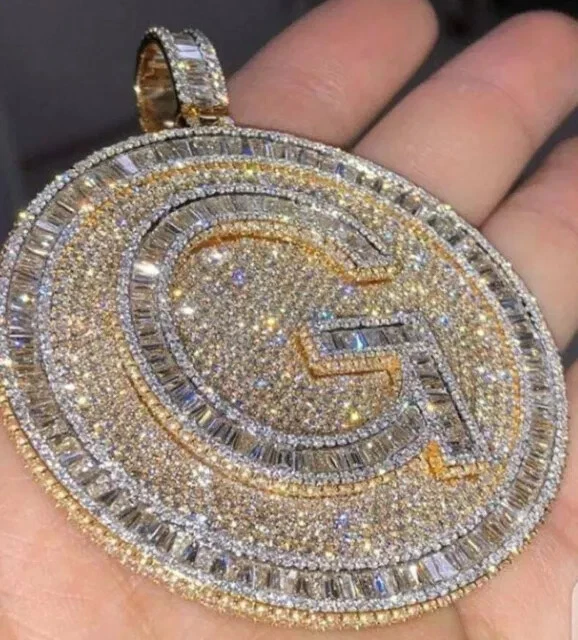 2.5" Baguette Cut Simulated Diamond Custom Letter Pendant 14KYellow Gold Plated