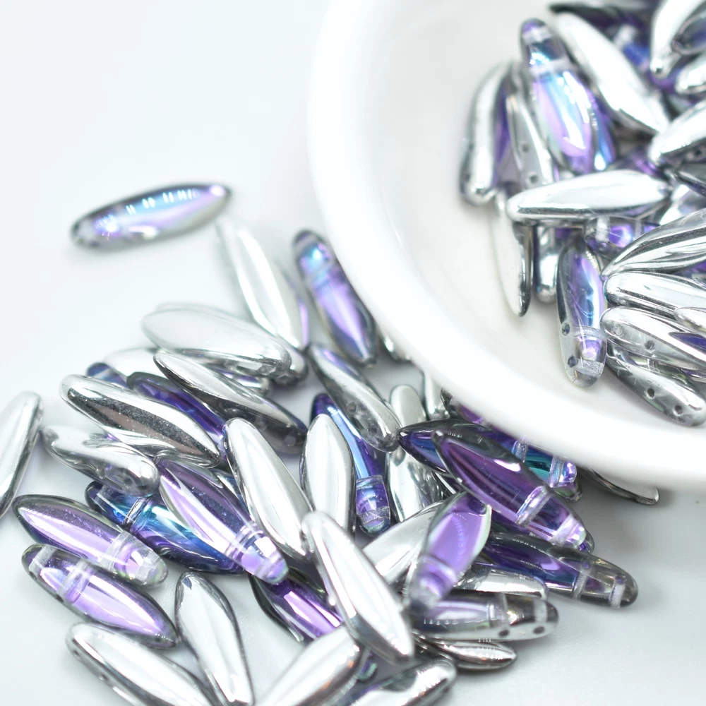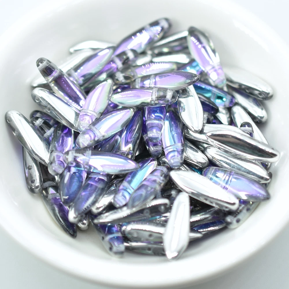 5x16mm Dagger, 2-Hole Beads CzechMates, Czech Glass Pressed Beads Quantity: 25 Beads Color: 00030-26536