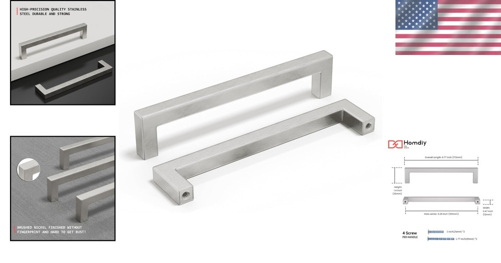 25 Count Stainless Steel Drawer Pulls - 6-1/4 Inch Brushed Nickel, Modern Style ‹ › ‹ › ‹ › ‹ › ‹ › ‹ › ‹ › ‹ › ‹ › ‹ › 25 Count Stainless Steel Drawer Pulls -6-1/4 Inch Brushed Nickel, Modern Style Features: Elegant brushed brass finish for an upscale look. Modern square design perfect for kitchen, bathroom, and bedroom cabinets. Smooth surface ensures a beautiful appearance and avoids fingerprints. Made of high-quality stainless steel - lightweight yet sturdy. Color: Brushed brass (not shiny gold). Measurements: Hole Centers: 6-1/4 inch (160mm) Overall Length: 6-3/4 inch (172mm) Square Bar Dimensions: 1/2 inch (12mm) x 1/2 inch (14mm) What You Get: 25 Pack of kitchen cabinet pulls for a significant upgrade. Each pull comes with M4 screws for simple installation. If different lengths of screws are needed, our team is here to assist you. Each pull is individually wrapped to prevent scratches during transit. Perfect Service: Your satisfaction is our top priority. As a dedicated professional seller, we encourage you to reach out with any questions or concerns. Our service team is committed to resolving any issues until you are completely satisfied, offering refunds or replacements as needed. No risk, just peace of mind! Why Choose Our Stainless Steel Drawer Pulls? If you desire a stunning and modern update for your cabinets, our 25 Count Stainless Steel Drawer Pulls are the perfect choice. Crafted with care and durability, they bring an elegant touch to any space, while our commitment to customer satisfaction ensures your complete confidence in your purchase. Upgrade your cabinets with our stylish drawer pulls today and experience the effortless elegance they bring to your home! Shipping Free & Fast Shipping - We offer free shipping to most of the USA with a normal delivery time of 3-7 days. However, due to the current situation, additional delivery time (up to 3 weeks) may be required for some items. Alternative Carriers - We may use alternative carriers (e.g. USPS, FedEx, UPS, etc.) to ensure your package arrives safely and on time. Due to the use of multiple carriers, we are unable to provide a tracking number automatically. Handling Time - Orders are processed and shipped within 1-2 business days of receiving cleared payment. Shipping Restrictions - Shipping to Alaska, Hawaii, Puerto Rico, Guam, and other US territories may incur shipping charges or delivery restrictions. Please contact us before ordering, or your order can be refunded/cancelled. State Restrictions - There may be restrictions based on your state of purchase. For example, certain items may not be shipped to California due to state regulations. Contact for Tracking Updates - If you require tracking updates or have any concerns about the delivery of your order, please feel free to contact us, and we will be happy to assist you. Return 30-Day Hassle-Free Returns - We want you to be completely satisfied with your purchase. If you are not, you can return the item within 30 days of receiving it for a full refund or exchange. Easy Return Process - To start a return, simply contact us and we will provide you with a prepaid return shipping label and detailed instructions. Restocking Fee - There are no restocking fees for returns. However, the buyer is responsible for return shipping costs if the return is not due to a seller's error. Refund Processing Time - Refunds will be processed within 5 business days of receiving the returned item in its original condition. Payment We accept all major credit cards, PayPal, and Apple Pay for your convenience. Your payment information is secure and encrypted to ensure a safe and seamless transaction. Please complete your payment within 3 days of purchase to avoid any delays in shipping. Feedback Your feedback is extremely important to us. We strive to provide the best products and customer service possible. If you are satisfied with your purchase, please take a moment to leave us a positive review. If you have any concerns or issues with your order, please contact us before leaving negative feedback. We are committed to resolving any problems and ensuring your satisfaction. Contact Us If you have any questions or concerns, please feel free to reach out to our customer support team. You can contact us through the eBay messaging system. We are available Monday to Friday, 9:00 am to 5:00 pm EST, and we will do our best to respond to your inquiry within 24 hours. Buy it now and enjoy a pleasant shopping experience! UPC: Not Set Unit Quantity: 25 Material: Brass,Stainless Steel Suitable For: Cupboard,Cabinets,Drawer Brand: Unbranded Type: Handle Pull Color: Brushed Nickel Item Length: Not Set Finish: Brushed Item Diameter: 0.5 in MPN: Not Set Number in Pack: 25 Style: Modern Center-to-Center Measurement: 6.25 in Country/Region of Manufacture: Not Set Extension Length: Not Set Door Handing: Not Set Manufacturer Warranty: Not Set Unit Type: oz Fixings Supplied: Not Set