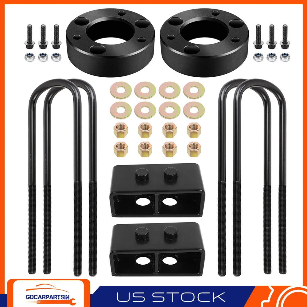 Front Spacers: After removing the wheel, remove any brake line and ABS line brackets, so you have enough slack in the lines. Use a wrench to remove the upper strut mount nuts and the upper ball joint nut. Strike the side of knuckle with a hammer to get the ball joint to separate. Using a wrench, remove the steering linkage nut. Remove the sway bar nut and bushing. Remove the two lower strut mount bolts and remove the strut from the vehicle. 2.5" Front & 2" Rear Leveling Lift Kit For Ford F150 2WD 4WD 2021 2022 2023 2024 Front Spacers: After removing the wheel, remove any brake line and ABS line brackets, so you have enough slack in the lines. Use a wrench to remove the upper strut mount nuts and the upper ball joint nut. Strike the side of knuckle with a hammer to get the ball joint to separate. Using a wrench, remove the steering linkage nut. Remove the sway bar nut and bushing. Remove the two lower strut mount bolts and remove the strut from the vehicle. Install the supplied bolts into the leveling kit spacer. These will act as the new studs when reinstalled. Bolt the spacer to the top of the strut using the supplied nuts. Rotate the strut 180 degrees and install it back into the truck. Re-insert the lower strut bolts. The lower mount bushing will rotate to correct the angle. Raise the lower control arm to raise the spindle while lowering the upper control arm to re-install the upper ball joint and Re-install the steering linkage. Complete the installation on the other side of the truck before reinstalling the sway bar nut and bushings. Rear Blocks: Support the rear axle with a jack and jack stands. Remove the brake and parking brake cables so there is slack in the lines. Remove the lower rear shock mount nut and bolt. Remove the factory rear U-bolts and discard them. Lower the axle to remove the factory block, or you can put new blocks on the factory block, get a new lift. Install the new rear block making sure the smaller side of the spacer is facing the front of the truck. Install the new supplied U-bolts and torque to factory spec. Complete the installation on the other side of the truck before reinstalling any brake or ABS lines. After 100 miles recheck torque to factory spec. Item Specifics Brand gdcarpartsin Manufacturer Part Number GD84702801car Lift Height 2.5" Front & 2" Rear Actual Spacer Thickness appr. 1.65"/ 42mm Note Lifting height is not exactly equal to spacer thickness Blocks Specs 5.12" Long x 2.48" Wide Included Hardware All Parts in pictures included Part Type Suspension Lift Kit Fitment Type Performance/Custom Placement on Vehicle Left Right Front Rear Warranty 1 Year Material Aluminum Steel Kit or Single Part Kit Kit Parts Included Strut Spacers Lift Blocks U-Bolts Instruction No Included Fitment For Ford F150 Drive Type 4x4 4WD / 4x2 2WD Color Black Interchange Part Number for 2021-2024 Ford F-150 2WD 4WD U Bolt Specs Square 12.8" Long / 3.15" Wide / 5.9" Threads / 9/16"-18 Quantity 2X Strut Spacers 2X Rear Blocks 4X U-bolts Shipping 1. Orders processed within 24 hours of payment verification.(if you want cancel orders or change address pls contact us within 6 hours after payment,or we are not responsible for shipping a replacement.) 2. We only ship to confirmed PAYPAL addresses. Your PAYPAL address must match your Shipping address. 3. Fast shipping:All our packages use USPS First Class/UPS/Fedex... Package Service 4. If you have not received your shipment within 15 days from payment , please contact! Return 1. You have 30 days to contact us and 10 days to return it from the date it was received. If this item is in your possession more than 7 days, it is considered used and we will not issue you a refund or replacement. There are NO EXCEPTIONS! 2. All returned items must be in the original packaging and you must provide us with the shipping tracking number, specific reason for the return, and item custom lable. 3. We will refund your full winning bid amount, upon receipt of the item in its original condition and packaging with all components and accessories included, AFTER both Buyer and Seller cancel the transaction from eBay. OR, you may choose to have a replacement. 4. Return shipping is to be paid by the Buyer Feedback We strive for 100% customer satisfaction! FEEDBACK IS VERY IMPORTANT TO US. We request that you contact us immediately BEFORE you give us neutral or negative feedback, so that we can satisfactorily address your concerns. Payment 1.We only accept PayPal. 2.Please do not use the PayPal note field to indicate us to ship to other address. The note there will NOT be read. If you want to change the shipping address, please contact us by eBay messages. 3.(if you want cancel orders or change address pls contact us within 6 hours after payment,or we are not responsible for shipping a replacement.) 4.Payment must be received within 10 days as auction ended or order might be delayed. Warranty 1,We stand behind every product we sell. 2,All of our brand new items come with a 60-Days money-back guarantee. 3,We define the item as defective only if it doesn't function as described. 4,It is the buyer's responsibility to understand the item description before bidding. 5,We will replace the defective items, provided that they are in stock within the warranty period posted with the listing and the buyer return the original item and pay for the S&H cost for the replacement. 6,We will refund the purchase price if the replacement is not available or buyer prefers a refund and send the original item back at his/her own cost. 7,Shipping & handling cost are not refundable. 8,Man-made damage by abuse or wrong operation is not covered by this warranty. 9,No product liability insurance is assumed. Shop Category Store Home Mirror Parts ◈ Vehicle Mirrors ◈ Truck Mirrors ◈ Mirror Glasses & Other Parts Brake Parts ◈ Brake Rotors ◈ Brake Pads ◈ Brake Rotors + Pads Mass Air Flow Sensors Oxygen Sensors Cooling Parts ◈ Radiators ◈ Radiator Hoses ◈ Cooling Fans 