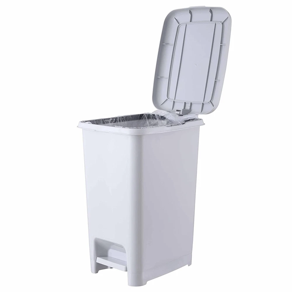 Superio Plastic slim step trash can has a space-efficient shape that fits perfectly in tight spots, like between cabinets. The step-on feature allows for hands-free operation so your hands stay clear of the can and waste inside.Features: DESIGNED TO SAVE SPACE - Introducing this slim and compact step-on trash can that is perfect for kitchens and bathrooms, but can also be used in offices. With a slim and sleek shape, it will squeeze into just about any space, and the modern finish makes it a subtle addition to the room. With the simple step-on mechanism, the lid opens automatically. Once you have disposed of your waste, the lid closes by itself.INCLUDES INTERIOR BUCKET HANDLE - Superio Slim Garbage Can also comes with an easily removable inner bucket that will allow you to empty the trash Free Shipping Over $49.99* Details 2.5 Gal Slim Pedal Step On Trash Can Product Description: Superio Plastic slim step trash can has a space-efficient shape that fits perfectly in tight spots, like between cabinets. The step-on feature allows for hands-free operation so your hands stay clear of the can and waste inside. Features DESIGNED TO SAVE SPACE - Introducing this slim and compact step-on trash can that is perfect for kitchens and bathrooms, but can also be used in offices. With a slim and sleek shape, it will squeeze into just about any space, and the modern finish makes it a subtle addition to the room. With the simple step-on mechanism, the lid opens automatically. Once you have disposed of your waste, the lid closes by itself. INCLUDES INTERIOR BUCKET HANDLE - Superio Slim Garbage Can also comes with an easily removable inner bucket that will allow you to empty the trash quickly and efficiently! The interior bucket handle prevents the garbage bag from slipping so you never have to reach inside to pull out the bag. This feature allows for easy removal when it is time to change or empty the bag. ZERO CHANCE OF RUST AND EASY TO CLEAN - Unlike stainless steel trash cans, our trash can is made of plastic that is easy to rinse and will not rust. Also, a nice choice for office settings because it has no exposed metal parts that might scratch or dent. With a slim design and a durable plastic construction, this trash can will keep your area clean, tidy, and sanitary. NO MORE SMELLY TRASH CAN - This step-on trash can has a lid that effectively seals in odor and secures your bag to the can making removing your garbage easy and sanitary. This prevents you from cross-contaminating yourself or others which is especially important in your home or office as it keep bad odors locked away. With this said, it is perfect for dog waste trash can, bathroom trash can, and kitchen trash cans. COMES IN DIFFERENT COLORS - We have a color to suit every preference! No matter the decor style of your home, one of these trash can colors will be a great fit in your space. Shop our large catalogue of home and living essentials that will benefit you in designing your home aesthetics or spicing up your interiors. Made in Turkey. Dimensions 13 inches high x 8 inches wide x 11 inches deep Product is shipped in one (1) boxes.